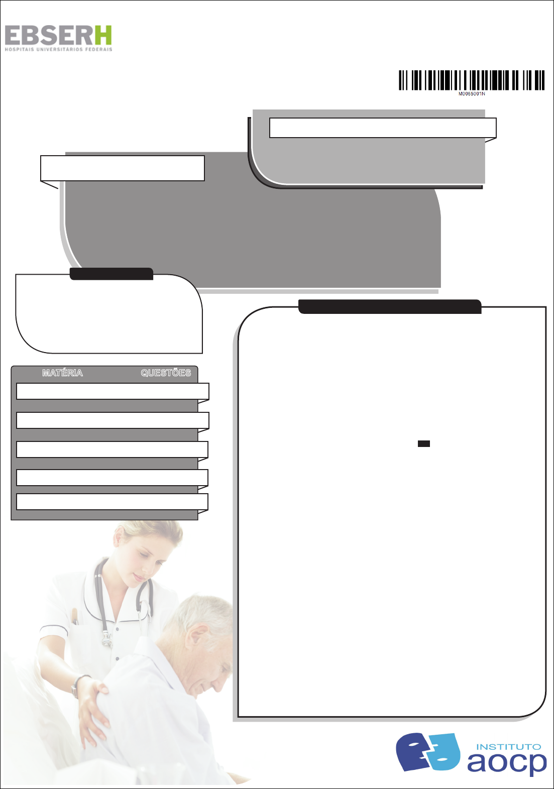 Informações Adicionais 0(xx)44 3344-4242 / www.institutoaocp.org.br / candidato@institutoaocp.org.br QUESTÕESMATÉRIA Raciocínio Lógico e Matemático 11 a 15 Língua Portuguesa 01 a 10 Legislação Aplicada à EBSERH 16 a 20 Legislação Aplicada ao SUS 21 a 25 O Caderno de questões possui 50 (cinquenta) questões objetivas, numeradas sequencialmente, de acordo com o exposto no quadro a seguir: ATENÇÃO Cargo CIRURGIÃO DENTISTA - CIRURGIA E TRAUMATOLOGIA BUCO-MAXILO-FACIAIS INSTRUÇÕES 1. Na sua Folha de Respostas, confira seu nome, o número do seu documento e o número de sua inscrição. Além disso, não se esqueça de conferir seu Caderno de Questões quanto a falhas de impressão e de numeração, e se o cargo corresponde àquele para o qual você se inscreveu. Qualquer divergência comunique ao fiscal. 2. O único documento válido para avaliação da prova é a Folha de Respostas. Só é permitido o uso de caneta esferográfica transparente de cor azul ou preta para o preenchimento da Folha de Respostas, que deve ser realizado da seguinte maneira: 3. O prazo de realização da prova é de 4 (quatro) horas, incluindo a marcação da Folha de Respostas. Após 60 (minutos) do início da prova, o candidato estará liberado para utilizar o sanitário ou deixar definitivamente o local de aplicação. A retirada da sala de prova dos 3 (três) últimos candidatos só ocorrerá conjuntamente. 4. Ao término de sua prova, comunique ao fiscal, devolvendo-lhe a Folha de Respostas devidamente preenchida e assinada. O candidato poderá levar consigo o Caderno de Questões, desde que aguarde em sala o término da aplicação. 5. As provas e os gabaritos preliminares estarão disponíveis no site do Instituto AOCP - www.institutoaocp.org.br - no dia posterior à aplicação da prova. 6. Implicará na eliminação do candidato, caso, durante a realização das provas, qualquer equipamento eletrônico venha emitir ruidos, mesmo que devidamente acondicionado no envelope de guarda de pertences. O NÃO cumprimento a qualquer uma das determinações constantes em Edital, no presente Caderno ou na Folha de Respostas, incorrerá na eliminação do candidato. Concurso Público REF. EDITAL N° 03/2014 NÍVEL SUPERIOR - MANHÃ Conhecimentos Específicos 26 a 50 HUB - HOSPITAL UNIVERSITÁRIO DE BRASÍLIA CONCURSO PÚBLICO 7/2014 - EBSERH/HUB EDITAL N° 03 - EBSERH - ÁREA MÉDICA E ÁREA ASSISTENCIAL CIRURGIÃO DENTISTA - CIRURGIA E TRAUMATOLOGIA BUCO-MAXILO-FACIAIS www.pciconcursos.com.br