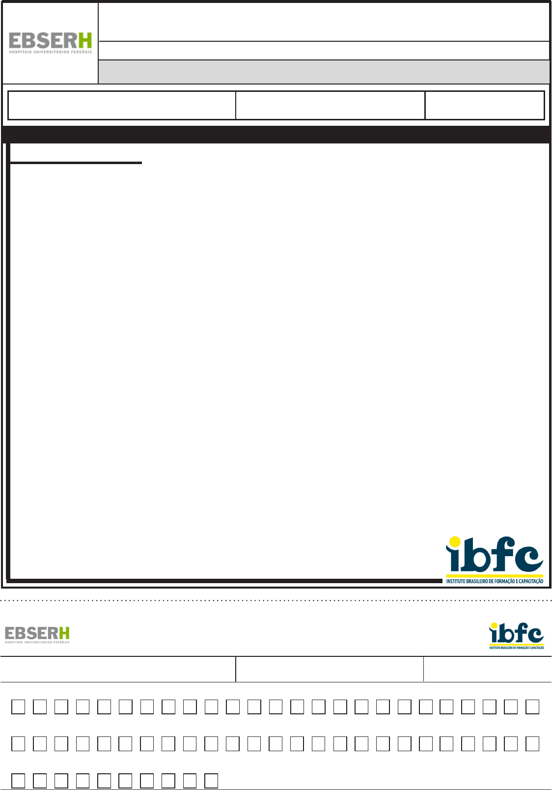 Aplicada ao SUS 5 (cinco) questões, Legislação Aplicada à EBSERH 5 (cinco) questões e Conhecimentos