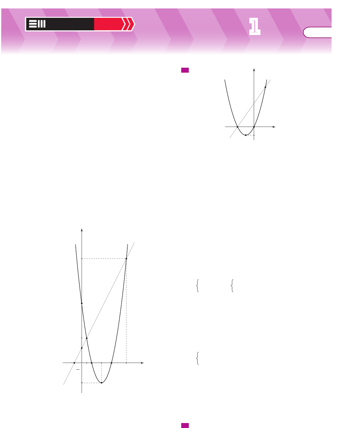 Moderna PLUS MATEMÁTICA 15 Parte I Capítulo 5 Função quadrática Resolução dos exercícios PAIVA w w w .m o d e rn a p lu s .c o m .b r 1 MANOEL PAIVA I. Em f (x): Fazendo f (x) 5 0, obtemos: 2x 1 3 5 0 ] x 5 2 3 __ 2 Logo, a reta intercepta o eixo Ox no ponto @ 2 3 __ 2 , 0 # . • Fazendo x 5 0, obtemos y 5 3 Logo, a reta intercepta o eixo Oy no ponto (0, 3). II. Em g(x): • Fazendo g (x) 5 0, obtemos: x2 2 8x 1 12 5 0 ] x 5 6 ou x 5 2 Logo, a parábola intercepta o eixo Ox nos pontos (6, 0) e (2, 0). • Fazendo x 5 0, obtemos y 5 12. Logo, a parábola intercepta o eixo Oy no ponto (0, 12). • Calculando as coordenadas do vértice V, obtemos: V @ 8 __ 2 , 2 16 ___ 4 # 5 (4, 24) Esboçando f e g no mesmo plano carte- siano, concluímos: b) Determinando todos os pontos em que os gráficos das funções dadas se interceptam, temos: g(x) 5 f (x) ] x2 2 8x 1 12 5 2x 1 3 } x2 2 10x 1 9 5 0 ] x 5 9 ou x 5 1 Substituindo x 5 9 e x 5 1 em f (x) 5 2x 1 3, temos: para x 5 9 ] y 5 21 para x 5 1 ] y 5 5 Logo, os pontos em que os gráficos das fun- ções dadas se interceptam são (9, 21) e (1, 5). 1 2 4 �4 6 9 21 3 5 12 x g f y � 3 2 a) Como o ponto P pertence ao eixo das abscis- sas e é também um dos dois pontos comuns aos dois gráficos, podemos fazer g(x) 5 0 para obter o ponto P. Assim, temos: 2x 1 2 5 0 ] x 5 21 Logo, P(21, 0). Calculando S da função f (x) 5 ax2 1 bx, temos: S 5 b2 Agora, observando o gráfico temos que P 9 f e o valor da ordenada do vértice (yV) de f é 21, temos: (21, 0) 9 f ] 0 5 a 2 b 2 S ___ 4a 5 21 Como calculado anteriormente, S 5 b2; então: 2 b 2 ___ 4a 5 21 Logo, b2 5 4a. Para determinar os valores de a e b, basta re- solver o sistema: a 2 b 5 0 b2 5 4a ] a 5 b (I) b2 5 4a (II) Substituindo (I) em (II), temos: b2 5 4b b2 2 4b 5 0 ] b 5 0 ou b 5 4 A igualdade b 5 0 não convém, pois o valor de a também seria nulo e por consequência f (x) 5 0, o que é absurdo. Logo, b 5 4 e a 5 4, pois a 5 b. b) Para determinar os pontos P e Q, basta resol- ver o sistema: y 5 4x2 1 4x (I) y 5 2x 1 2 (II) ] ] 4x2 1 4x 5 2x 1 2 } 4x2 1 2x 2 2 5 0 ] x 5 1 __ 2 ou x 5 21 Fazendo x 5 1 __ 2 em (II), obtemos y 5 3. Logo, Q @ 1 __ 2 , 3 # . Fazendo x 5 21 em (II), obtemos y 5 0. Logo, P(21, 0). 8 A função quadrática f tem raízes 2 e 22; logo, pode ser representada por f(x) 5 a(x 2 2)(x 1 2), em que a é uma constante real não nula. Como o ponto (24, 212) pertence ao gráfico de f, temos: 212 5 a(24 2 2)(24 1 2) ] a 5 21 Assim, obtemos: f(x) 5 21(x 2 2)(x 1 2) ] ] f(x) 5 2x2 1 4 �1 xP g Q f y7 Moderna PLUS MATEMÁTICA 16 Parte I Capítulo 5 Função quadrática Resolução dos exercícios PAIVA w w w .m o d e rn a p lu s .c o m .b r 1 MANOEL PAIVA Resolvendo esse sistema, obtemos as soluções (24, 212) e (1, 3). Logo, o ponto Q é Q(1, 3). Alternativa b. 9 Para a construção dos gráficos de y 5 2x2 1 x 2 1 e y 5 x2 2 5x 1 6, vamos encontrar os pontos de intersecção com os eixos Ox e Oy e o vértice des- sas parábolas: I. Na função y 5 2x2 1 x 2 1, temos: • Fazendo y 5 0, obtemos: 2x2 1 x 2 1 5 0 ] x 5 1 __ 2 ou x 5 21 Logo, a parábola intercepta o eixo Ox nos pontos (21, 0) e @ 1 __ 2 , 0 # . • Fazendo x 5 0, obtemos y 5 21. Logo, a parábola intercepta o eixo Oy no ponto (0, 21). • Calculando as coordenadas do vértice V1, obtemos: V1 @ 2 1 __ 4 , 2 9 __ 8 # II. Na função y 5 x2 2 5x 1 6, temos: • Fazendo y 5 0, obtemos: x2 2 5x 1 6 5 0 ] x 5 2 ou x 5 3 Logo, a parábola intercepta o eixo Ox nos pontos (2, 0) e (3, 0). • Fazendo x 5 0, obtemos: y 5 6 Logo, a parábola intercepta o eixo Oy no ponto (0, 6). • Calculando as coordenadas do vértice V2, obtemos: V2 @ 5 __ 2 , 2 1 __ 4 # Assim, construindo as duas parábolas no mesmo plano cartesiano, temos: x y �1 1 �1 2 2 6 3 � 1 4 � 1 4 1 2 5 2 � 9 8 Determinando as coordenadas dos pontos comuns às duas parábolas, temos: 2x2 1 x 2 1 5 x2 2 5x 1 6 ] x2 1 6x 2 7 5 0 S 5 62 2 4 3 1 3 (27) 5 64 ] ] x 5 26 ± dlll 64 _________ 2 3 1 } x 5 26 ± 8 _______ 2 ] x 5 1 ou x 5 27 Substituindo x 5 1 e x 5 27 em y 5 2x2 1 x 1 1, temos: para x 5 1 ] y 5 2 para x 5 27 ] y 5 90 Logo, os pontos comuns às duas parábolas são (1, 2) e (27, 90). 10 a) As coordenadas do vértice da parábola são da- das por: xv 5 2b ___ 2a 5 2 m __ 2 yv 5 2 S ___ 4a ] yv 5 2 m 2 2 8 _______ 4 } xv 5 2 m __ 2 e yv 5 8 2 m2 _______ 4 b) Como o coeficiente de x2 é positivo, a parábola representada pela função f tem a concavidade voltada para cima. Logo, o conjunto imagem da função é formado por todos os números reais y tais que y > 8 2 m2 _______ 4 . Assim, para que a imagem de f contenha o conjunto { y 9 Voy > 1} devemos ter: 8 2 m2 _______ 4 0 } m 2 c) Para que a imagem de f seja igual ao conjunto { y 9 Voy > 1} devemos ter: 8 2 m2 _______ 4 5 1 ] m2 2 4 5 0 } m 5 22 ou m 5 2 Além disso, exige-se que a função seja cres- cente no conjunto {x 9 Vox > 0}. Analisemos o gráfico de f para cada um dos casos: m 5 2 (figura 1) e m 5 22 (figura 2), abaixo: Temos, portanto, que a imagem de f é igual ao conjunto { y 9 Voy > 1} e f é crescente no conjunto {x 9 Vox > 0} para m 5 2. A função linear g, além de passar pela origem O, passa pelo ponto (24, 212); logo, g(x) 5 3x. Os pontos de intersecção dos gráficos de f e g são as soluções do sistema: y 5 2x2 1 4 y 5 3x 0 y x 1 �1 2 0 y x 1 1 2 Figura 1(m 5 2) Figura 2(m 5 22) Moderna PLUS MATEMÁTICA 17 Parte I Capítulo 5 Função quadrática Resolução dos exercícios PAIVA w w w .m o d e rn a p lu s .c o m .b r 1 MANOEL PAIVA d) A equação y 5 x2 1 2x 1 2 é equivalente a x2 1 2x 1 2 2 y 5 0. Resolvendo-a na variável x, obtemos: x 5 22 ± dllllll 4y 2 4 _____________ 2 5 22 ± 2 dlllll y 2 1 _____________ 2 ] ] x 5 21 ± dlllll y 2 1 Como devemos ter x > 0 para y > 2, concluí- mos que: x 5 21 1 dlllll y 2 1 11 a) h(x) 5 x2 2 2x, se xy b) t(x) 5 x2 2 1, se x