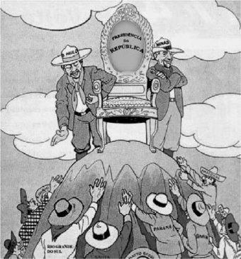 (Storni, Careta, ano 18, n. 897, 29 de agosto de 1905) A charge acima apresenta uma das práticas políticas que caracterizaram o governo republicano no Brasil, entre 1889 e 1930. Assinale a opção que a identifica corretamente. a) política dos governadores b) política de valorização do café c) coronelismo d) política do café-com-leite e) voto de cabresto 16 - (UNIMONTES MG) Comparando-se as estruturas político-administrativa e de poder, vigentes durante o Império e a República Velha, analise as afirmativas abaixo. I. O principal grupo social de sustentação do poder no Império era representado por pequenos e médios proprietários rurais, enquanto, na República Velha, o governo se apoiou na classe média urbana. II. As eleições no Império eram indiretas e censitárias, enquanto, na República Velha, eram diretas, com voto a descoberto para maiores de 21 anos. III. No Império, a religião católica era a religião do Estado e, em função disso, o clero secular atuava de modo semelhante aos funcionários do governo, enquanto, na República, o Estado se tornou laico. IV. No Império, predominou a descentralização política das províncias, enquanto, na República Velha, o sistema federativo impôs uma ampla centralização. Estão CORRETAS as afirmativas a) II e III, apenas. b) III e IV, apenas. c) I e II, apenas. d) II, III e IV, apenas. 17 - (FFFCMPA RS) “A rarefação do poder público em nosso país contribuiu muito para preservar a ascendência dos ‘coronéis’, já que, por esse motivo, estão em condições de exercer, extraoficialmente, grande número de funções do Estado em relação aos seus dependentes”. (Victor Nunes Leal. Coronelismo, enxada e voto. São Paulo: AlfaÔmega, 1975, p.42). Sobre o voto e a participação política na Primeira República, assinale a alternativa correta. a) Com a proclamação da República em 1889, o voto deixou de ser visto como uma moeda de troca pela população, a qual passou a participar mais ativamente da vida política do país exercendo a cidadania. b) A Constituição de 1891 garantia o amplo direito de voto a todos os brasileiros maiores de 21 anos, inclusive aos analfabetos. c) Com a federalização do Brasil, os latifundiários perderam seu espaço político para a classe média urbana, a qual era composta majoritariamente por profissionais liberais. d) O coronelismo pode ser definido como um conjunto de práticas políticas caracterizadas pela base familiar e rural, pelo voto de cabresto e pelo fisiologismo. e) A continuidade do sistema oligárquico na primeira república engendrou um processo político marcado pela democratização, na medida em que diferentes grupos e partidos políticos se revezavam no poder. 18 - (Mackenzie SP) (...) A pergunta “Quem é você?” recebia invariavelmente a resposta: “Sou gente do coronel Fulano”. Essa maneira de redargüir dava imediatamente a quem ouvia as coordenadas necessárias para conhecer o lugar socioeconômico do interlocutor, além de sua posição política. Maria I. P. de Queiroz – História Geral da Civilização Brasileira O fenômeno sociopolítico, a que se alude no fragmento acima e que alcançou seu maior vigor nas primeiras décadas do Brasil republicano, pode ser entendido como a) a expressão do poder político dos empresários industriais, que, embora formassem uma classe numericamente pequena, experimentavam desde o Império um significativo crescimento de sua importância econômica. b) o resultado da militarização das instituições políticas brasileiras em virtude de a liderança do movimento republicano ter sido exercida por militares, como Deodoro da Fonseca e Floriano Peixoto. c) uma reação dos líderes políticos nos Estados à instituição do voto secreto pela Constituição de 1891, inovação que reduziu drasticamente o poder dos grandes proprietários rurais. d) uma forma de clientelismo em que chefes políticos locais (geralmente proprietários rurais), dominando grupos de eleitores e lançando mão sistematicamente da fraude eleitoral, sustentavam o poder das oligarquias no plano estadual e, indiretamente, no federal. e) a conseqüência da ascensão social – por meio das escolas militares – de membros das classes médias urbanas, formando uma oficialidade coesa de tenentes, capitães, majores e coronéis. 19 - (UECE) “Havia no Brasil pelo menos três correntes que disputavam a definição da natureza do novo regime: o liberalismo à americana, o jacobinismo à francesa e o positivismo de Augusto Conte, defendido por Benjamin Constant. As três correntes combateram-se intensamente nos anos iniciais da República até a vitória de uma delas”. Fonte: CARVALHO, José Murilo. A Formação das Almas – O imaginário da República no Brasil. São Paulo, Companhia das Letras, 1990, pp. 9-11. A corrente vencedora foi: a) A corrente Positivista de Benjamin Constant. b) A corrente Liberal Americana. c) A corrente Jacobina Francesa. d) Um misto das correntes Positivista e Jacobina. 20 - (UFSM RS) Com a desestruturação da ordem escravista em 1888, deixou de existir a instituição que definia o lugar de cada um na sociedade brasileira. A 1ª República, a partir de 1889, adota pra´ticas políticas que provocam reações dos setores sociais populares, que passam a defender seus direitos, utilizando as estratégias a seguir, EXCETO a) movimentos operário, que se mobilizava em greves e outras ações, contra as longas jornadas de trabalho, habitações precárias e ausência de políticas sociais. b) atuação das camadas sociais populares, como na cidade do Rio de Janeiro, que desenvolviam atividades culturais como o futebol e o samba. c) oposição de parcela significativa da população carioca à vacinação obrigatória, à nomeação de um interventor estadual e à nacionalização do petróleo. d) resistência de populares às reformas urbanas do governo municipal carioca que pretendia expulsar do centro da cidade 