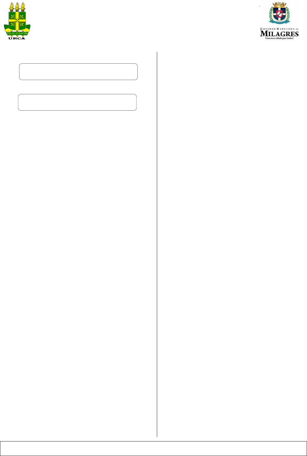 GOVERNO DO ESTADO DO CEARÁ SECRETARIA DE CIENCIAS, TECNOLOGIA E EDUCAÇÃO SUPERIOR – SECITECE FUNDAÇÃO UNIVERSIDADE REGIONAL DO CARIRI – URCA COMISSÃO EXECUTIVA DO VESTIBULAR – CEV PREFEITURA MUNICIPAL DE MILAGRES – PMM ____________________________________________________________________________ Concurso para provimento de cargos da Prefeitura de Milagres – Data: 19/08/2018 1 PORTUGUÊS NÍVEL SUPERIOR TEXTO I Trem - Bala Ana Carolina Vilela Não é sobre ter todas as pessoas do mundo pra si É sobre saber que em algum lugar alguém zela por ti É sobre cantar e poder escutar mais do que a própria voz É sobre dançar na chuva de vida que cai sobre nós É saber se sentir infinito Num universo tão vasto e bonito é saber sonhar Então, fazer valer a pena cada verso Daquele poema sobre acreditar Não é sobre chegar no topo do mundo e saber que venceu É sobre escalar e sentir que o caminho te fortaleceu É sobre ser abrigo e também ter morada em outros corações E assim ter amigos contigo em todas as situações A gente não pode ter tudo Qual seria a graça do mundo se fosse assim? Por isso, eu prefiro sorrisos E os presentes que a vida trouxe pra perto de mim Não é sobre tudo que o seu dinheiro é capaz de comprar E sim sobre cada momento sorriso a se compartilhar Também não é sobre correr contra o tempo pra ter sempre mais Porque quando menos se espera a vida já ficou pra trás Segura teu filho no colo Sorria e abrace teus pais enquanto estão aqui Que a vida é trem-bala, parceiro E a gente é só passageiro prestes a partir Laiá, laiá, laiá, laiá, laiá Laiá, laiá, laiá, laiá, laiá Segura teu filho no colo Sorria e abrace teus pais enquanto estão aqui Que a vida é trem-bala, parceiro E a gente é só passageiro prestes a partir 01. (Concurso Milagres/2018) Em uma leitura geral do texto, podemos inferir que: I - Trata-se de uma temática universal e atemporal inerente ao ser – o existencialismo humano frente à fugacidade da vida. II – Contraditório a tudo que representa o homem contemporâneo, o texto traça o caminho percorrido no mundo capitalista e realça o verdadeiro sentido da vida. III – Reflete a cosmovisão individual de sua compositora e transformou-se em um grande sucesso devido, entre outras coisas, à melodia intimista e simples. A) I e II estão corretas. B) I e III estão corretas. C) II e III estão corretas. D) Apenas III está correta. E) Todas estão corretas. 02. (Concurso Milagres/2018) A estrofe que melhor justifica o título é: A) A primeira. B) A sexta C) A terceira. D) A quinta E) A segunda. GOVERNO DO ESTADO DO CEARÁ SECRETARIA DE CIENCIAS, TECNOLOGIA E EDUCAÇÃO SUPERIOR – SECITECE FUNDAÇÃO UNIVERSIDADE REGIONAL DO CARIRI – URCA COMISSÃO EXECUTIVA DO VESTIBULAR – CEV PREFEITURA MUNICIPAL DE MILAGRES – PMM ____________________________________________________________________________ Concurso para provimento de cargos da Prefeitura de Milagres – Data: 19/08/2018 2 03. (Concurso Milagres/2018) No verso: É sobre saber que em algum lugar alguém zela por ti., a oração em destaque é classificada como: A) Subordinada adjetiva restritiva. B) Subordinada adverbial causal. C) Subordinada substantiva subjetiva. D) Subordinada adverbial concessiva. E) Subordinada substantiva objetiva direta. TEXTO II 04. (Concurso Milagres/2018) Estabelecendo uma relação entre o texto Trem Bala e a Tirinha do Texto II, podemos inferir que: A) Manolito é o retrato do "servo" moderno que a revolução industrial criou, representa o que é negado pela compositora. B) Mafalda fica perplexa e lamenta a personalidade de Manolito, da mesma forma a compositora se depara com os valores morais. C) A letra da música e a mensagem da charge refletem o mundo do capital, aquele que criou nas pessoas uma necessidade imensa de garantir seu sustento. D) A vida não tem espaço no mundo onde os jornais trazem a cotação dos valores econômicos; essa é a principal mensagem - implícita, simples, objetiva e dolorosamente verdadeira apresentada nos textos em questão. E) Outra característica a que os textos apontam é a desvalorização das coisas imateriais. 05. (Concurso Milagres/2018) Marque a opção em que a passagem bíblica estabelece o diálogo com os textos I e II: A) Não estejais inquietos por coisa alguma; antes as vossas petições sejam em tudo conhecidas diante de Deus pela oração e súplica, com ação de graças. (9 – Filipenses 4:6) B) Porque eu bem sei os pensamentos que tenho a vosso respeito, diz o SENHOR; pensamentos de paz, e não de mal, para vos dar o fim que esperais. (2 – Jeremias 29:11) C) Não atentando nós nas coisas que se vêem, mas nas que se não vêem; porque as que se vêem são temporais, e as que se não vêem são eternas.(2 Coríntios 4:18) D) Ainda que eu fale as línguas dos homens e dos anjos, se não tiver amor, serei como o bronze que soa ou como o címbalo que retine. (I Coríntios 13:1) E) Se o sábio lhes der ouvidos, aumentará seu conhecimento, e quem tem discernimento obterá orientação (Provérbios 1:5). GOVERNO DO ESTADO DO CEARÁ SECRETARIA DE CIENCIAS, TECNOLOGIA E EDUCAÇÃO SUPERIOR – SECITECE FUNDAÇÃO UNIVERSIDADE REGIONAL DO CARIRI – URCA COMISSÃO EXECUTIVA DO VESTIBULAR – CEV PREFEITURA MUNICIPAL DE MILAGRES – PMM ____________________________________________________________________________ Concurso para provimento de cargos da Prefeitura de Milagres – Data: 19/08/2018 3 CONHECIMENTOS GERAIS 06. (Concurso Milagres/2018) “A violência doméstica geralmente possui motivação fútil. Alcoolismo, drogadição e questões financeiras são fatores exacerbadores, mas é o machismo revelado no sentimento cotidiano de posse que determina a maioria absoluta de casos do tipo.“Ela estava de saía curta, chegou em casa fora do horário combinado ou não havia feito a comida na hora certa. Estas são principais afirmações dos agressores que vêem as mulheres como ob