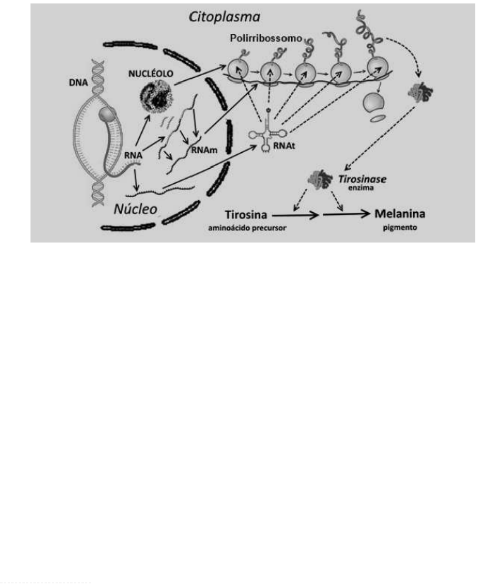 Com base no esquema, é INCORRETO a�rmar: a) Os Nucléolos são regiões eletrondensas presentes no interior do núcleo e ricas em RNAr que são necessários, juntamente com proteínas, para a gênese dos ribossomos. b) A formação de RNAm envolve o processamento de transcritos primários pela remoção de sequências de RNA denominadas íntrons e reunião de éxons. c) Em células eucariontes como as humanas, apenas o DNA na forma de eucromatina está disponível para ser transcrito. d) Em indivíduos cujos melanócitos não são capazes de produzir uma tirosinase funcional, são incapazes de produzir a proteína melanina. e) Nas células eucariontes, a sequência completa de DNA transcrito é integralmente traduzida no citoplasma celular. 18) Q483146 Na metade do século XX, com a descoberta da estrutura e função do DNA, a Biologia entrou na fase do “determinismo genético”. Isso signi�ca que todas as características dos indivíduos estariam determinadas no DNA. Os trabalhos publicados, nesse início de século, na área da Biologia do Desenvolvimento (DEVO) mudaram alguns paradigmas da própria teoria evolutiva. A Biologia do Desenvolvimento vem con�rmando a maior participação do ambiente na criação da variabilidade genética. Com relação à citação acima, analise as seguintes a�rmativas. 1.O sexo em tartarugas e crocodilos é determinado pela temperatura de incubação dos ovos. 2.Pessoas que se transferem de regiões de baixa altitude para regiões altas passam a apresentar maior número de hemácias, sem que tenham ocorrido alterações genéticas. 3.Além da informação genética, o ambiente e as alterações epigenéticas são importantes na criação de variabilidade nas espécies de seres vivos, tanto morfológicas quanto comportamentais. A citação inicial é corroborada a) pela afirmativa 1, apenas. https://www.aprovaconcursos.com.br/questoes-de-concurso/questao/483146-fgv-2016-sme-sp-professor-biologia