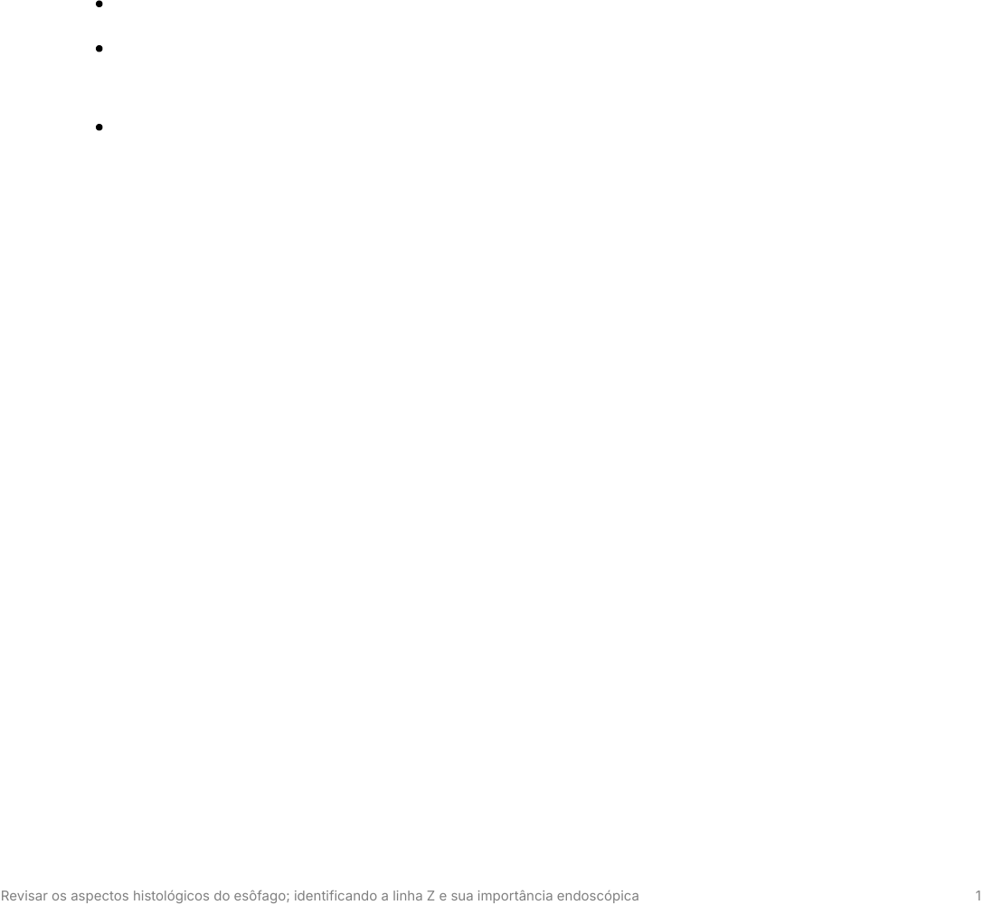 Revisar os aspectos histológicos do esôfago; identificando a linha Z e sua importância endoscópica 1 Revisar os aspectos histológicos do esôfago; identificando a linha Z e sua importância endoscópica O esôfago possui 4 túnicas concêntricas, sendo elas: uma mucosa, uma submucosa, uma túnica muscular externa e uma adventícia. O terço superior do esôfago possui tecido muscular estriado esquelético. O terço médio é composto por uma mistura de tecido muscular estriado esquelético e musculo liso. O terço inferior é composto apenas por tecido muscular liso. Revisar os aspectos histológicos do esôfago; identificando a linha Z e sua importância endoscópica 2 Mucosa A mucosa do esôfago consistem em um epitélio estratificado pavimentoso não queratinizado EEPNQ, uma lamina própria e uma camadas muscular da mucosa Revisar os aspectos histológicos do esôfago; identificando a linha Z e sua importância endoscópica 3 A camada de células roxas corresponde ao epitélio estratificado pavimentoso não queratinizado EEPNQ, que forma a superfície da mucosa do esôfago. A camada logo abaixo, em tom avermelhado, representa a lâmina própria, que contém tecido conjuntivo e vasos sanguíneos. A camada rosa claro mais profunda corresponde à camada muscular da mucosa. Estas três camadas juntas formam a mucosa do esôfago, que é a camada mais interna deste órgão. Submucosa A submucosa do esôfago é composta por tecido conjuntivo irregular denso. Revisar os aspectos histológicos do esôfago; identificando a linha Z e sua importância endoscópica 4 A submucosa do esôfago é definida como uma camada composta por tecido conjuntivo irregular denso. Esta camada está localizada abaixo da mucosa e acima da camada muscular externa do esôfago. A submucosa desempenha um papel importante na estrutura e função do esôfago, fornecendo suporte e flexibilidade ao órgão. Camada muscular externa essa camada é variável de acordo com o terço do esôfago estudado, podendo ser apenas musculo estriado esquelético, apenas musculo liso ou uma mistura dos 2 Revisar os aspectos histológicos do esôfago; identificando a linha Z e sua importância endoscópica 5 Músculo estriado esquelético: Apresenta fibras longas e cilíndricas com núcleos periféricos. Tem um padrão de estriações transversais visíveis, devido à organização regular das proteínas contráteis. Músculo liso: Tem fibras fusiformes com núcleos centrais. Não apresenta estriações visíveis e tem uma aparência mais homogênea. Camada adventícia A camada adventícia é composta por tecido conjuntivo frouxo que sustenta e protege o esôfago externamente, além disso ancora o esôfago em estruturas adjacentes no mediastino Revisar os aspectos histológicos do esôfago; identificando a linha Z e sua importância endoscópica 6 Linha Z e importância endoscópica Também conhecida como junção esofagogástrica, na linha Z o epitélio estratificado pavimentoso não queratinizado é substituído pelo epitélio simples cilíndrico do revestimento estomacal, a linha Z é local mais propenso ao desenvolvimento de um carcinoma esofágico Revisar os aspectos histológicos do esôfago; identificando a linha Z e sua importância endoscópica 7 A linha Z é facilmente identificável durante uma endoscopia, pois marca a transição visível entre o epitélio do esôfago e do estômago.