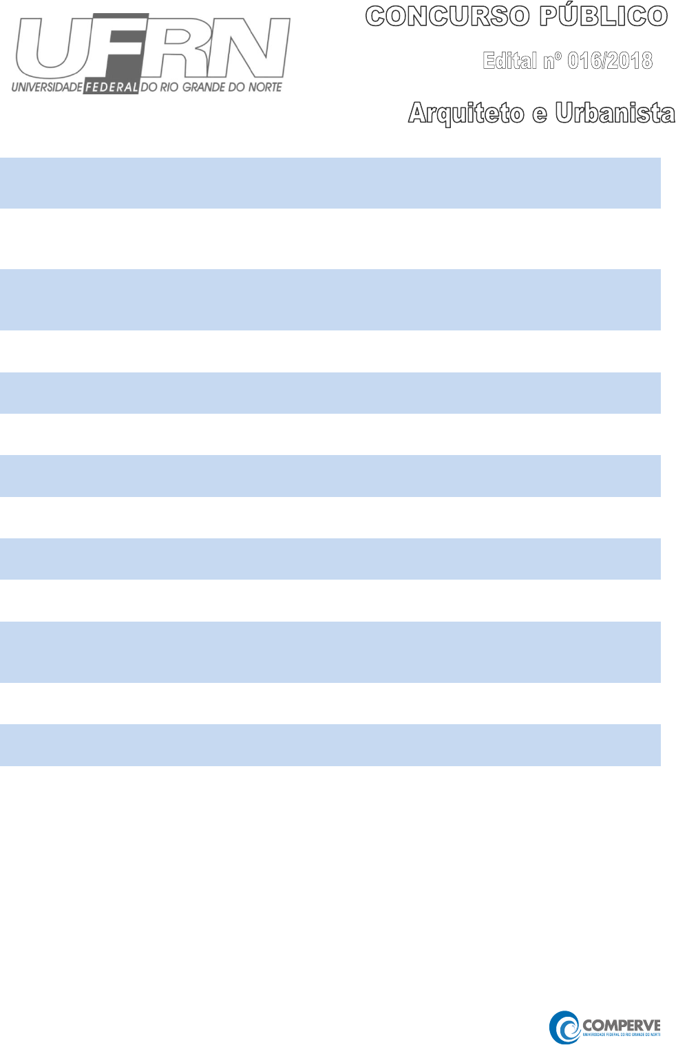Concurso Público UFRN A vida é um sonho. Realize-o (Madre Teresa) Leia estas instruções: 1 Confira se os dados contidos na parte inferior desta capa estão corretos e, em seguida, assine no espaço reservado. 2 Este Caderno contém, respectivamente, uma proposta de Redação e 50 questões de múltipla escolha, assim distribuídas: 01 a 10 Língua Portuguesa; 11 a 20 Legislação; 21 a 50 Conhecimentos Específicos. 3 Quando o Fiscal autorizar, verifique se o Caderno está completo e sem imperfeições gráficas que impeçam a leitura. Detectado algum problema, comunique-o, imediatamente, ao Fiscal. 4 A Redação será avaliada considerando-se apenas o que estiver escrito no espaço reservado para o texto definitivo na Folha de Redação fornecida pela Comperve. 5 Escreva de modo legível, pois dúvida gerada por grafia ou rasura implicará redução de pontos. 6 Cada questão de múltipla escolha apresenta quatro opções de resposta, das quais apenas uma é correta. 7 Interpretar as questões faz parte da avaliação, portanto não peça esclarecimentos aos fiscais. 8 A Comperve recomenda o uso de caneta esferográfica de tinta preta, fabricada em material transparente. 9 Utilize qualquer espaço em branco deste Caderno para rascunhos e não destaque nenhuma folha. 10 Os rascunhos e as marcações que você fizer neste Caderno não serão considerados para efeito de avaliação. 11 Você dispõe de, no máximo, quatro horas e trinta minutos para redigir o texto definitivo na Folha de Redação, responder às questões e preencher a Folha de Respostas. 12 O preenchimento da Folha de Respostas e da Folha de Redação é de sua inteira responsabilidade. 13 Antes de se retirar definitivamente da sala, devolva ao Fiscal este Caderno, a Folha de Respostas e a Folha de Redação. _________________________________________________________________________________ Assinatura do Candidato: ____________________________________________________________________ Concurso Público UFRN Edital 16/2018 Arquiteto e Urbanista A vida é um sonho. Realize-o. 1 Prova de Redação Volta e meia, a temática da descriminalização do aborto ganha evidência na sociedade brasileira. De um lado, os defensores da descriminalização alegam os direitos sexuais e reprodutivos das mulheres. De outro lado, os opositores evocam o direito do feto à vida. Diante da inércia do Congresso Nacional, o Supremo Tribunal Federal foi chamado a se posicionar sobre o tema, o que acabou provocando outra celeuma, sobre quem teria competência para decidir a questão: o Poder Judiciário ou o Poder Legislativo. PROPOSTA DE REDAÇÃO Considerando essa problemática e seus conhecimentos a respeito do tema, produza um artigo de opinião em que se posicione sobre a seguinte questão: O Supremo Tribunal Federal é a instância adequada para decidir sobre a descriminalização do aborto? INSTRUÇÕES Seu artigo deverá atender às seguintes normas: ser redigido no espaço destinado à versão definitiva na Folha de Redação; apresentar explicitamente um ponto de vista, fundamentado em, no mínimo, dois argumentos; ser redigido na variedade padrão da língua portuguesa; ser redigido em prosa (e não em verso); conter, no máximo, 40 linhas; e não ser assinado (nem mesmo com pseudônimo). ATENÇÃO Será atribuída NOTA ZERO à redação em qualquer um dos seguintes casos: texto com até 14 linhas; fuga ao tema ou à proposta; letra ilegível; identificação do candidato (nome, assinatura ou pseudônimo); texto que revele desrespeito aos direitos humanos ou que seja ofensivo ; e artigo escrito em versos. 2 Concurso Público UFRN Seleção 2018 Arquiteto e Urbanista A vida é um sonho. Realize-o. Concurso Público UFRN Edital 16/2018 Arquiteto e Urbanista A vida é um sonho. Realize-o. 3 RASCUNHO 1 2 3 4 5 6 7 8 9 10 11 12 13 14 15 16 17 18 19 20 21 22 23 24 4 Concurso Público UFRN Seleção 2018 Arquiteto e Urbanista A vida é um sonho. Realize-o. 25 26 27 28 29 30 31 32 33 34 35 36 37 38 39 40 (NÃO ASSINE O TEXTO) Concurso Público UFRN Edital 16/2018 Arquiteto e Urbanista A vida é um sonho. Realize-o. 5 Língua Portuguesa 01 a 10 As questões de 1 a 10 desta prova são baseadas no texto abaixo. Cartas que (ainda) te quero cartas William Eloi 1º Foi há mais ou menos dezessete anos. Era um dia de sábado. A crônica havia saído em uma edição do extinto O Poti. Eu estava ali, encerrado em um cubículo, dentro de um elevador que dava para o portão principal. Trabalhava na portaria de uma faculdade particular e – mesmo desarmado – tomava conta de todo um prédio, que ainda incluía computadores, laboratórios de todos os tipos e peças anatômicas orgânicas . Não havia expediente acadêmico aos sábados à noite; então, aproveitava para ler todos os jornais de que a faculdade possuía a assinatura e que chegavam à portaria, já que eu estava só, e os cadáveres – as peças – permaneceriam submersas em seus tanques. Mudas. 2º O nome da crônica era “Cartas que te quero cartas”, do jornalista Osair Vasconcelos. Nela, com certo saudosismo e desalento, o autor apontava o fim de um dos mais antigos modelos de românticos de comunicação , A Carta, com o surgimento do vírus Antraz (ou Anthrax), usado como arma biológica pelo Talibã. 3º Diferentemente do que Osair profetizou à época, A Carta saiu vencedora e nunca mais se ouviu falar na mídia de algo relacionado ao carbúnculo, salvo a banda nova-iorquina de trash metal, de mesmo nome, que, no período, ficou constrangida com a associação bizarra. A Carta só começaria a ver sua derrocada, seu modelo relegado ao canto na história, com o nascimento do e-mail, a ascensão das redes sociais, e, mais recentemente (?), o fenômeno WhatsApp. 4º Difícil imaginar todo o lirismo pungente com que Oscar Wilde escreveu para o seu amado Bosie, sob as lágrimas derramadas nas folhas de papel, atrás dos muros de Reading, ou a famosa troca de correspondências entre o