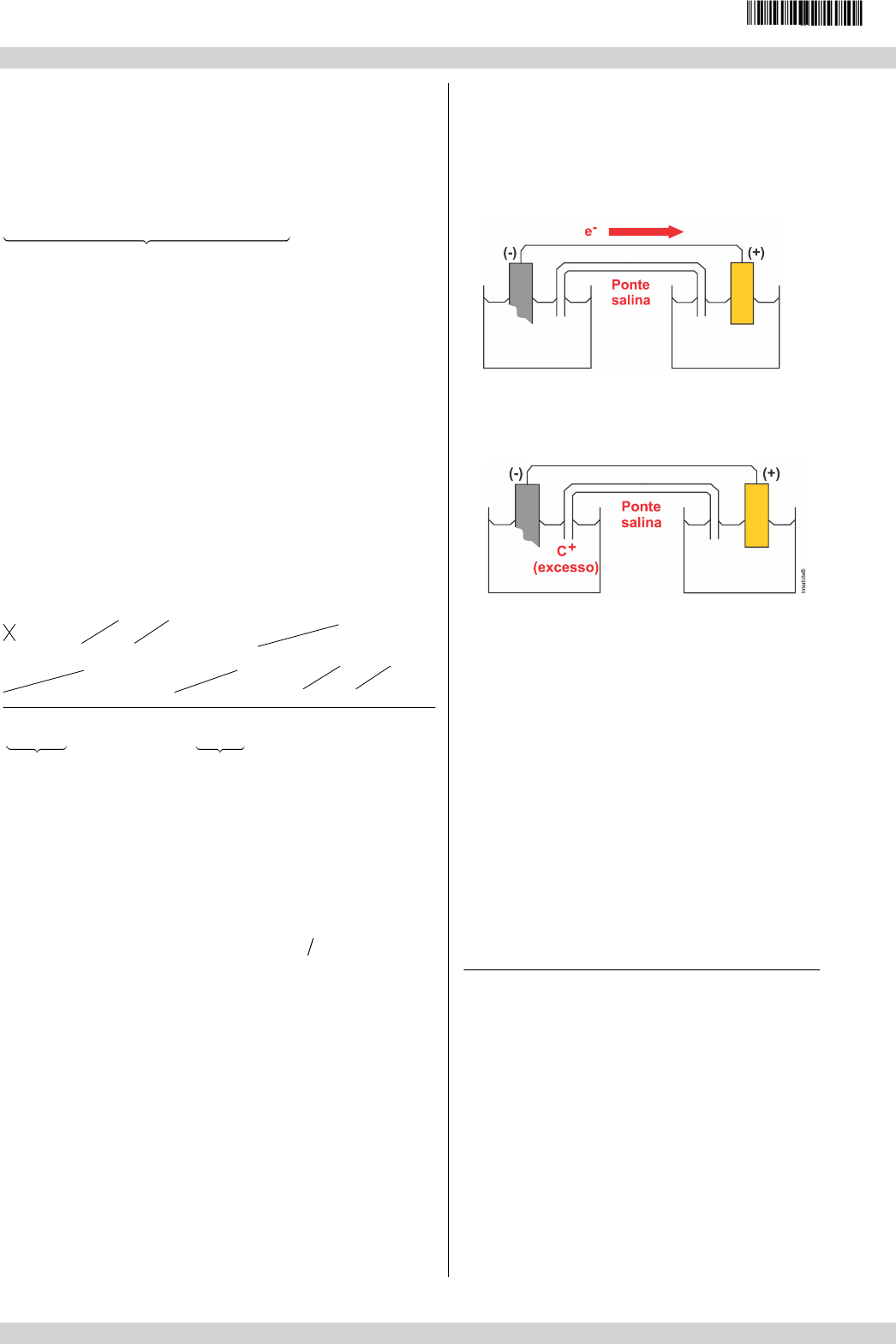 enem2021 /////////////////////////////////////////////////////////////////////////////////////////////////////////////////////////////////////////////////////////////////////////// /////////////////////////////////////////////////////////////////////////////////////////////////////////////////////////////////////////////////////////////////////////// I8020 – Help Educacional | Caderno de questões – Página 4 Gabarito: Resposta da questão 1: [D] Semirreação que ocorre em A: 3 2 3 (oxidação do álcool) CH CH OH CH CHO 2 H 2 e+ −→ + + Semirreação que ocorre em C: 2 2O 4 H 4 e 2 H O,+ −+ + → o que exige o fluxo dos íons 3H (H O )+ + do compartimento A para o compartimento C através do eletrólito B. Resposta da questão 2: [B] 2(g) 2 3(s) (s) 2(g) 2(g) 2 3(s) maior menor 2,8 V 3,8 V 3 CO 4 Li 4 e 2 Li CO C Eº 2,8 V (manter) 2 CO O 4 Li 4 e 2 Li CO Eº 3,8 V (inverter) E E E E 2,8 V ( 3,8 V) 6,6 V Δ Δ + − + − − + + → + = + + + → = − = − = − − = 3 2(g)CO 4 Li++ 4 e−+ Redução Cátodo 2 3(s)2 Li CO⎯⎯⎯⎯⎯→ (s) 2 3(s) C 2 Li CO + Oxidação Ânodo 2(g)2 CO⎯⎯⎯⎯⎯→ 2(g)O 4 Li++ + 4 e−+ Global 2(g) (s) 2(g) 1mol 1mol (consumido) formado 1CO 1C 1O⎯⎯⎯⎯→ + Li :+ sofre redução (agente oxidante) 2 3Li CO : sofre oxidação (agente redutor) Resposta da questão 3: [A] Deve-se procurar entre os valores de Eº V apresentados, aqueles cuja diferença entre o maior e o menor dê 0,69 V. Então: ( ) 2 o 2 2 o 2 maior menor I) MnO 4 H 2 e Mn 2 H O E 1,23 V II) I 2 e 2 I E 0,54 V E E E E 1,23 V 0,54 V E 0,69 V Δ Δ Δ + − + − − + + → + = + + → = + = − = + − + = + Resposta da questão 4: [A] [I] Correta. Os elétrons fluem, no circuito externo, do ânodo (polo negativo; sofre oxidação) para o cátodo (polo positivo; sofre redução). [II] Incorreta. Os cátions fluem, numa ponte salina, do ânodo ( )− para o cátodo ( )+ . [III] Incorreta. A reação de oxidação ocorre no ânodo (apresenta menor potencial de redução). Resposta da questão 5: [D] Oxidação – o 2 5 2 2 I Redução– o 2 2 II Oxidação – 2 5 2 2 Redução– 2 2 Oxidação 2 5 2 I. C H OH 3 H O 2 CO 12 H 12 e E 0,085 V II. O 4 H 4 e 2 H O E 1,229 V I. C H OH 3 H O 2 CO 12 H 12 e II. O 4 H 4 e 2 H O ( 3) C H OH 3 H O + + + + + ⎯⎯⎯⎯⎯→ + + = − + + ⎯⎯⎯⎯⎯→ = + ⎯⎯⎯⎯⎯→ + + + + ⎯⎯⎯⎯⎯→ + ⎯⎯⎯⎯ → – 2 Redução– 2 2 Global 2 5 2 2 2 2 CO 12 H 12 e 3 O 12 H 12 e 6H O C H OH 3 O 2 CO 3 H O H 0Δ + + ⎯ + + + + ⎯⎯⎯⎯⎯→ + ⎯⎯⎯⎯→ + A reação global é exotérmica e trata-se de uma célula de combustível. A célula converte energia livre da reação de combustão do etanol em trabalho elétrico.