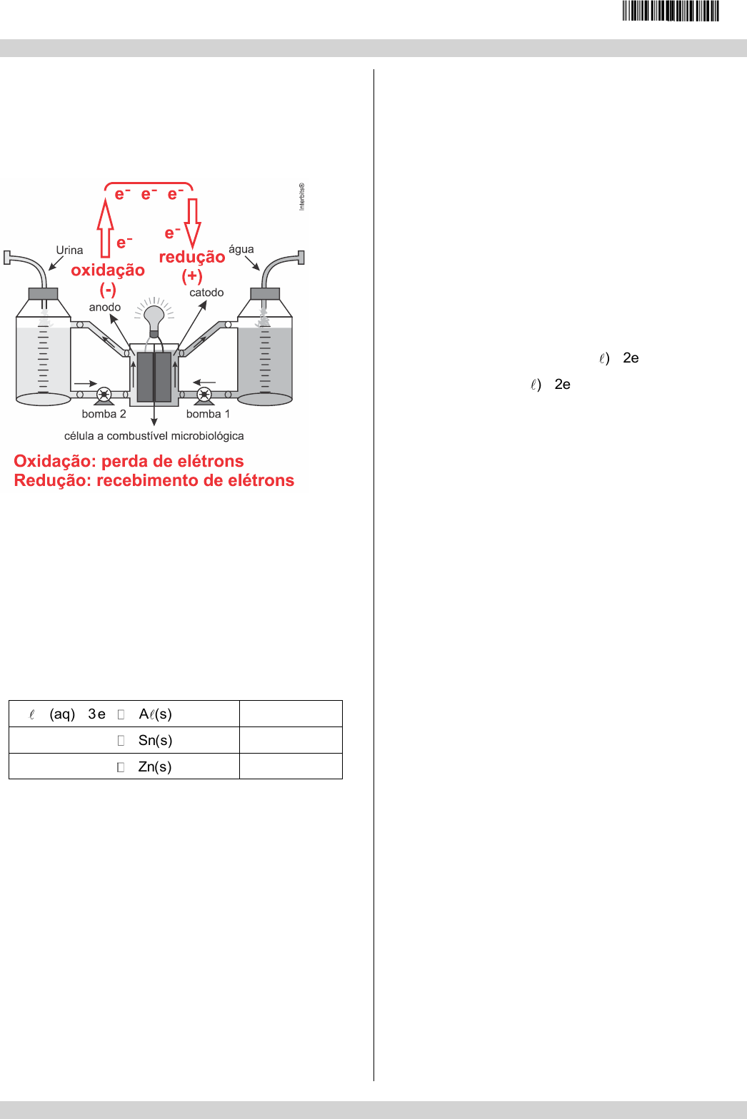 enem2021 /////////////////////////////////////////////////////////////////////////////////////////////////////////////////////////////////////////////////////////////////////////// /////////////////////////////////////////////////////////////////////////////////////////////////////////////////////////////////////////////////////////////////////////// I8020 – Help Educacional | Caderno de questões – Página 7 Resposta da questão 4: [A] Teremos: Resposta da questão 5: [D] Neste caso a espécie adequada para essa recuperação deve apresentar o potencial de redução menor do que os íons prata na forma de 3 2 3 2Ag(S O ) ( 0,02 V).− + Logo, temos três opções: 3A (aq) 3e A (s)+ −+ 1,66− 2Sn (aq) 2e Sn(s)+ −+ 0,14− 2Zn (aq) 2e Zn(s)+ −+ 0,76− ou seja, 3 2 2 3 2 2 3 3 2 2 3 2 2 3 2 Ag(S O ) (aq) e Ag(s) 2S O (aq) (redução) X(s) X (aq) e (oxidação) Então, 2Ag(S O ) (aq) 2e 2Ag(s) 4S O (aq) (redução) Sn(s) Sn (aq) 2e (oxidação) − − − + − − − − + − + → + → + + → + → + Conclusão: das espécies apresentadas, a adequada para essa recuperação é Sn(s). Resposta da questão 6: [B] Todas as afirmações estão corretas. [I] Sob condição de consumo de carga elétrica, a voltagem efetiva de serviço desse dispositivo eletroquímico é menor que a força eletromotriz da célula (U Fem R i).= − [II] O combustível (hidrogênio gasoso) é injetado no compartimento do anodo e um fluxo de oxigênio gasoso alimenta o catodo dessa célula eletroquímica. 2 2 2 2 ( ) H (g) 2OH (aq) 2H O( ) 2e (ânodo) ( ) 0,5O (g) H O( ) 2e 2OH (aq) (cátodo) − − − − + + → + − + + → [III] Sendo o potencial padrão dessa célula galvânica igual a 1,229 VEPH (volt na escala padrão do hidrogênio), a variação de energia livre de Gibbs padrão ( GΔ ) da reação global do sistema redox atuante é igual a 1237,2 kJ mol .−− o 1 EPH o EPH o 1 G 237,2 kJ mol (var iação da energia livre de Gibbs padrão) F 96.500 C n 2 (número de mols de elétrons) E 1,229 V (potencial padrão da célula) G n F E G 2 96.500 1,229 237,197 237,2 kJ mol Δ Δ Δ − − = − = = = = − = − = − − Resposta da questão7: [D] Em uma reação de oxirredução que ocorre espontaneamente, os elétrons são transferidos de uma espécie química com menor potencial de redução para outra com maior potencial de redução. Portanto, ao calcularmos a diferença de potencial da célula, chega-se a um valor positivo, portanto a afirmação I está errada. Resposta da questão 8: [E] 3 3 3 19 22 1h 3600s 0,8Ah / cm (0,8 3600)As / cm 2880C / cm Q n e 2880 1 n 1,6 10 n 1,8 10 − − = = = = = =