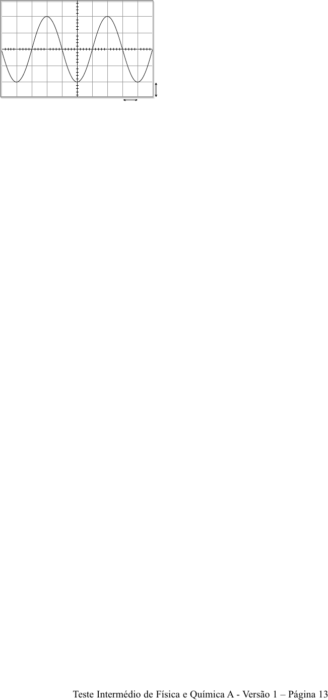 6.3. O gráfico da Figura 8 representa um sinal eléctrico, recebido num osciloscópio, em que a base de tempo foi regulada para 5 ms/div e o amplificador vertical para 5 V/div. Figura 8 Escreva a expressão que traduz a relação entre a diferença de potencial, U , e o tempo, t , para esse sinal, sabendo que essa expressão é da forma U = Umáx. sin(ω t ), em que Umáx. é a amplitude do sinal. Apresente todas as etapas de resolução. FIM ����� ����� Teste Intermédio de Física e Química A - Versão 1 – Página 13 Teste Intermédio - Fevereiro de 2010Página 164 Utilizador Rectangle