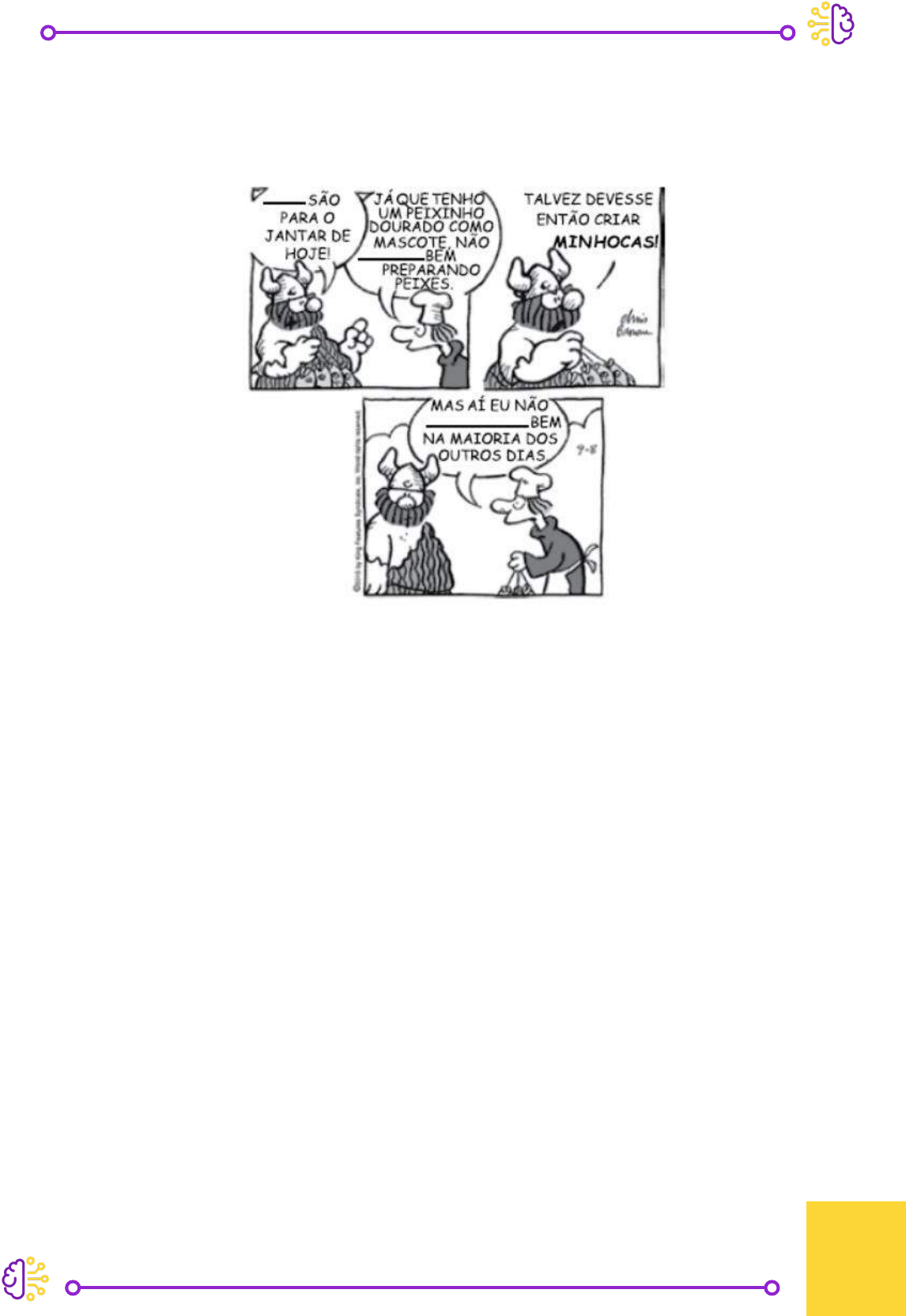 245 232) Concurso: Of Prom/MPE SP/I/2016 Banca: VUNESP Leia os quadrinhos para responder à questão. (Hagar, Dik Browne. Folha de S.Paulo, 31.10.2015. Adaptado) Na oração – Já que tenho um peixinho dourado como mascote… –, o sentido expresso pela conjunção em destaque é de a) explicação e, nesse contexto, pode ser substituída por “Pois”. b) causa e, nesse contexto, pode ser substituída por “Como”. c) oposição e, nesse contexto, pode ser substituída por “Mas”. d) conformidade e, nesse contexto, pode ser substituída por “Conforme”. e) conclusão e, nesse contexto, pode ser substituída por “Portanto”. Licenciado para - sara aparecida de souza consoli - 33544593874 - Protegido por Eduzz.com