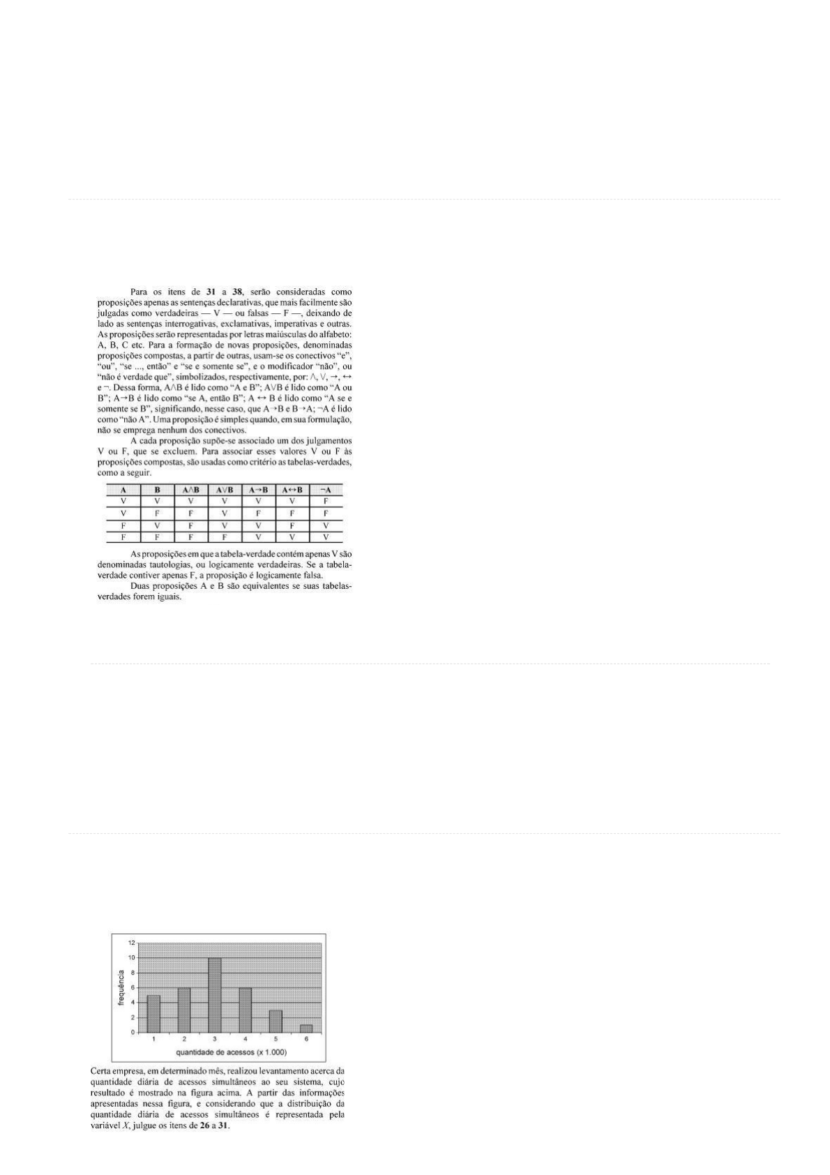 09/12/2017 Questões de Concursos e Perguntas de Concursos Públicos- Aprova Concursos https://www.aprovaconcursos.com.br/questoes-de-concurso/questoes/disciplina/Matem%25C3%25A1tica/banca/CESPE/filtro/2/pagina/61/quantid… 6/7 Considerando n tentativas independentes de invasão, em que n é um número �xo tal que n> 100, a probabilidade de haver um único sucesso é inferior a 0,99n-1. Certo Errado 913) Q169391 (/questoes-de-concurso/questao/169391) (/questoes-de-concurso/questao/169391#imprimir) Provas: CESPE - 2010 - SERPRO - Analista - Programação Visual (/questoes-de-concurso/prova/cespe-2010-serpro-analista-programacao-visual) Disciplina: Matemática (/questoes-de-concurso/disciplina/matematica) - Assuntos: 1.1. Proposições (/questoes-de-concurso/questoes/assunto/1.1.+Proposi%C3%A7%C3%B5es) Ocultar texto associado à questão Tendo como referência as informações apresentadas, julgue os itens seguintes. Considere a seguinte proposição: x, y e z são números reais tais que x + y + z = 1 e 2x + y + z = 0. Nesse caso, se essa proposição for V, então será V também a seguinte proposição: x = -1 ey + z = 2 . Certo Errado 914) Q169757 (/questoes-de-concurso/questao/169757) (/questoes-de-concurso/questao/169757#imprimir) Provas: CESPE - 2010 - SERPRO - Analista - Advocacia (/questoes-de-concurso/prova/cespe-2010-serpro-analista-advocacia) Disciplina: Matemática (/questoes-de-concurso/disciplina/matematica) - Assuntos: 1. Estatística descritiva e inferencial (/questoes-de-concurso/questoes/assunto/1.+Estat%C3%ADstica+descritiva+e+inferencial) Ocultar texto associado à questão https://www.aprovaconcursos.com.br/questoes-de-concurso/disciplina/matematica https://www.aprovaconcursos.com.br/questoes-de-concurso/prova/cespe-2010-serpro-analista-programacao-visual https://www.aprovaconcursos.com.br/questoes-de-concurso/questoes/assunto/1.1.+Proposi%C3%A7%C3%B5es https://www.aprovaconcursos.com.br/questoes-de-concurso/questao/169757#imprimir https://www.aprovaconcursos.com.br/questoes-de-concurso/prova/cespe-2010-serpro-analista-advocacia https://www.aprovaconcursos.com.br/questoes-de-concurso/questao/169757 https://www.aprovaconcursos.com.br/questoes-de-concurso/questoes/assunto/1.+Estat%C3%ADstica+descritiva+e+inferencial https://www.aprovaconcursos.com.br/questoes-de-concurso/disciplina/matematica https://www.aprovaconcursos.com.br/questoes-de-concurso/questao/169391 https://www.aprovaconcursos.com.br/questoes-de-concurso/questao/169391#imprimir