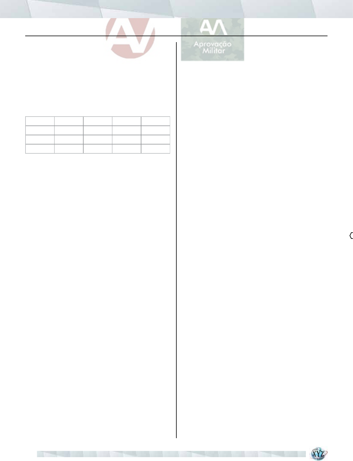 COLETÃNEA DE PROVAS AFA MATEMÁTICA 14 A média aritmética das notas de todos os que realiza- ram tal prova é: a) 3,7 b) 3,85 c) 4 d) 4,15 GAbARITO 1-D 2-A 3-C 4-D 5-B 6-A 7-B 8-C 9-D 10-B 11-C 12-A 13-A 14-A 15-C 16-A 17-C 18-A 19-D 20-B