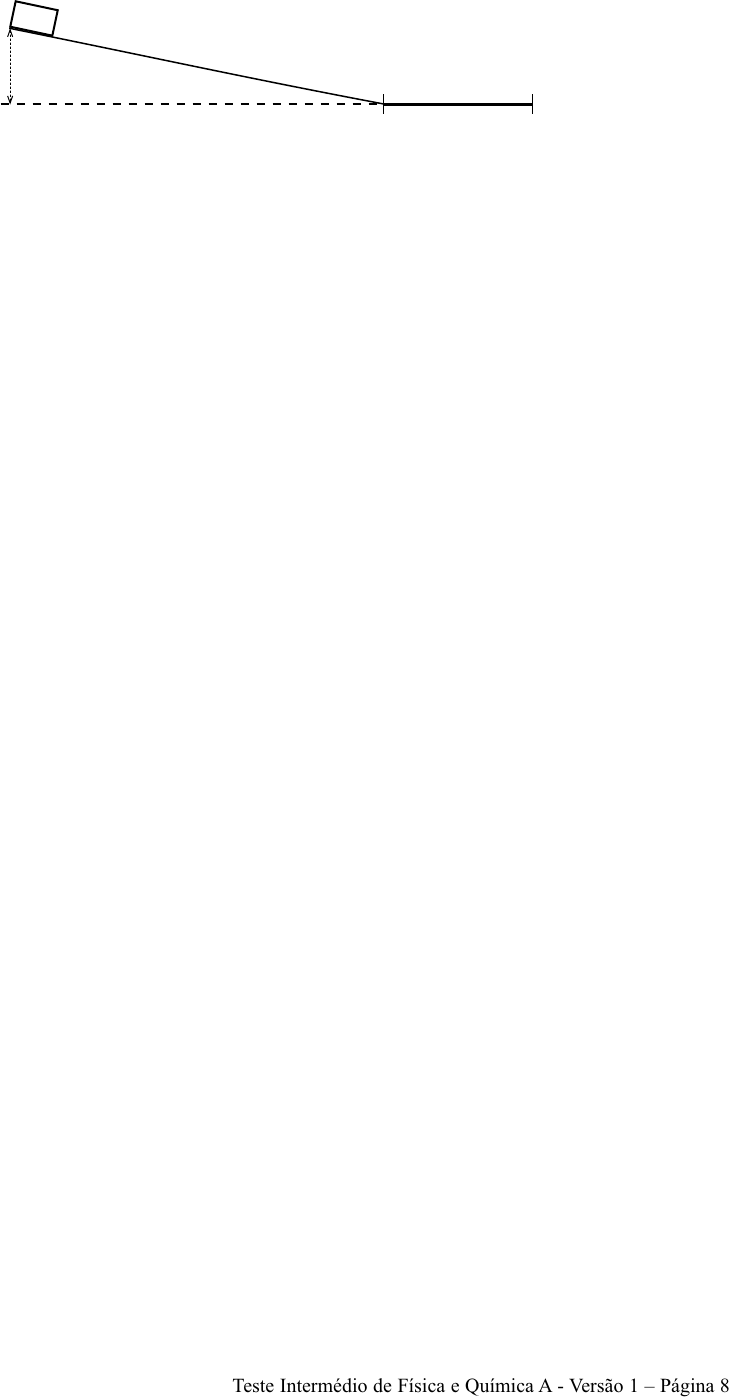 1.3. Nos seus estudos sobre o movimento dos corpos, para além da experiência descrita no texto, Galileu terá idealizado outras, utilizando planos inclinados. Analogamente, é habitual usar, nos laboratórios das escolas, calhas para o estudo dos movimentos. Fig. 1 A figura 1 representa uma calha, inclinada entre os pontos A e B, que termina num troço horizontal BC. O desnível entre o ponto A e o troço horizontal é de 30 cm. Um bloco, de massa 100 g, colocado no ponto A, desliza ao longo da calha, atingindo o ponto C com velocidade nula. Entre os pontos A e B considera-se desprezável o atrito. Entre os pontos B e C a superfície da calha é rugosa e, por isso, passa a actuar sobre o bloco uma força de atrito de intensidade 0,50 N. Calcule o tempo que o bloco demora a percorrer o troço BC. Apresente todas as etapas de resolução. 2. No século XIX, J. P. Joule mostrou que a queda de objectos podia ser aproveitada para aquecer a água contida num recipiente. Contudo, foram os seus estudos quantitativos sobre a energia libertada por um condutor quando atravessado por corrente eléctrica, que permitiram o desenvolvimento de alguns sistemas de aquecimento de água, usados actualmente em nossas casas, como as cafeteiras eléctricas. 2.1. Nessas cafeteiras a resistência eléctrica encontra-se geralmente colocada no fundo. Indique qual é o mecanismo de transferência de energia como calor que se pretende aproveitar com esta posição da resistência e descreva o modo como esta transferência ocorre. $% � ����� Teste Intermédio de Física e Química A - Versão 1 – Página 8 Teste Intermédio - Abril de 2008Página 68 Utilizador Rectangle