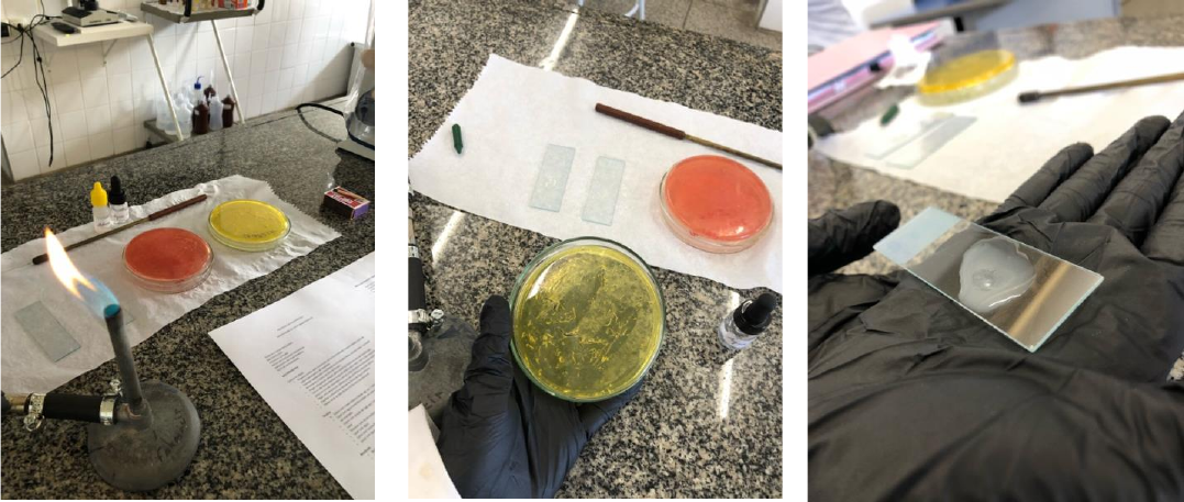 PRÁTICA – IDENTIFICAÇÃO DE COCOS GRAM POSITIVOS DATA: 22 / 05 / 2023 OBJETIVO: Prática teve como objetivo identificar, em laboratório, bactérias gram positivas. TÉCNICA REALIZADA: Prova da Catalase A prova da Catalase tem como objetivo detectar a presença da enzima Catalase na bactéria e com base no resultado obtido auxiliar na identificação de gêneros e especies bacterianas, classicamente utilizado na diferenciação de estafilococo, catalase positiva, e estreptococos, catalase negativa. PASSO A PASSO: 1. Em uma lamina foi colocado duas amostras da bactéria isolada. 2. Foi colocado uma gota de peroxido de hidrogênio 3% na amostra. 3. Foi observado a produção da liberação de O2 com formação de bolhas. 4. Foi testado positivo para Staphylococcus sp. ANEXOS: