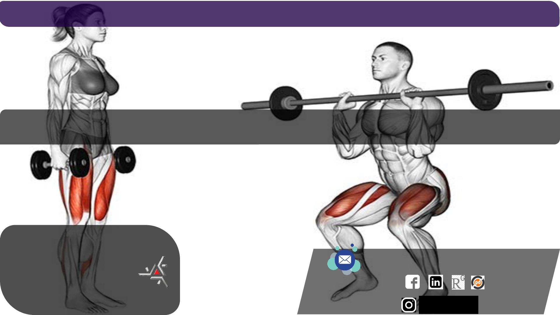 CLASSIFICAÇÃO DOS PRINCIPAIS EXERCÍCIOS UTILIZADOS NA MUSULAÇÃO Bases Cinesiológicas e Biomecânicas das Ciências do Movimento Humano abelfreitag affreitag@uem.br Doutor em Educação Física MBA em Gestão Empresarial Mestre em Ciências da Saúde Especialista em Gestão de Saúde Bacharel em Educação Física Prof. PhD Abel Felipe Freitag Principais exercícios utilizados na Musculação Peitoral Bíceps Tríceps Deltoide Dorsal MMII Abdômen Panturrilha Principais exercícios utilizados na Musculação Peitoral Bíceps Tríceps Deltoide Dorsal MMII Abdômen Panturrilha Silva et al., 2014 Peitoral Bíceps Tríceps Deltoide Dorsal Panturrilha MMII Abdômen Principais exercícios utilizados na Musculação FORÇA POTENTE: PEITORAL FORÇA RESISTENTE: PESO ARTICULAÇÕES: GLENOUMERAL e COTOVELO (?) MUSCULATURA-ALVO: PEITORAL MUSCULATURA SECUNDÁRIA: TRÍCEPS MOVIMENTOS: ABDUÇÃO e ADUÇÃO MOVIMENTOS: FLEXÃO e EXTENSÃO Peitoral Bíceps Tríceps Deltoide Dorsal MMII Panturrilha Abdômen Principais exercícios utilizados na Musculação FORÇA POTENTE: DORSAL FORÇA RESISTENTE: PESO ARTICULAÇÕES: GLENOUMERAL e COTOVELO MUSCULATURA-ALVO: DORSAL MUSCULATURA SECUNDÁRIA: BÍCEPS MOVIMENTOS: ELEVAÇÃO e REBAIXAMENTO MOVIMENTOS: PROTRUSÃO e RETRAÇÃO Peitoral Bíceps Tríceps Deltoide Dorsal MMII Panturrilha Abdômen Principais exercícios utilizados na Musculação Peitoral Bíceps Tríceps Deltoide Dorsal MMII Panturrilha Abdômen Principais exercícios utilizados na Musculação FORÇA POTENTE: BÍCEPS FORÇA RESISTENTE: PESO ARTICULAÇÕES: COTOVELO MUSCULATURA-ALVO: BÍCEPS MUSCULATURA SECUNDÁRIA: ? MOVIMENTOS: FLEXÃO e EXTENSÃO MOVIMENTOS: ROTAÇÃO INTERNA/EXTERNA Peitoral Bíceps Tríceps Deltoide Dorsal MMII Panturrilha Abdômen Principais exercícios utilizados na Musculação BARRA “W” BARRA RETA Pegada anatômica, natural (supinada e neutra) Pegada totalmente supinada Braquiorradial e radial Melhor ativação do bíceps Execução mais segura Punho, antebraço e cotovelo Peitoral Bíceps Tríceps Deltoide Dorsal MMII Panturrilha Abdômen Principais exercícios utilizados na Musculação Predominância do trabalho da cabeça longa do bíceps Predominância do trabalho da cabeça curta do bíceps Peitoral Bíceps Tríceps Deltoide Dorsal MMII Panturrilha Abdômen Principais exercícios utilizados na Musculação Maior desenvolvimento, ênfase na cabeça lateral (+ aparente) Ex. pulley, francês simultâneo, corda Cabeça longa (maior) braços sobre a cabeça (testa) Melhor MAIOR ativação do que ÚNICA ativação Comece com exercícios multiarticulares (tríceps supino, paralela) Peitoral Bíceps Tríceps Deltoide Dorsal MMII Panturrilha Abdômen Principais exercícios utilizados na Musculação FORÇA POTENTE: TRÍCEPS FORÇA RESISTENTE: PESO ARTICULAÇÕES: COTOVELO MUSCULATURA-ALVO: TRÍCEPS MUSCULATURA SECUNDÁRIA: ? MOVIMENTOS: FLEXÃO e EXTENSÃO MOVIMENTOS: ROTAÇÃO INTERNA/EXTERNA Peitoral Bíceps Tríceps Deltoide Dorsal MMII Panturrilha Abdômen Principais exercícios utilizados na Musculação Ombros largos contraste com a cintura “V” Proteção, evitar lesões treino pesado e contínuo Aquecimento + alongamento dinâmico Cabeça lateral elevação lateral Peitoral Bíceps Tríceps Deltoide Dorsal MMII Panturrilha Abdômen Principais exercícios utilizados na Musculação FORÇA POTENTE: DELTÓIDE FORÇA RESISTENTE: PESO ARTICULAÇÕES: GLENOUMERAL e COTOVELO MUSCULATURA-ALVO: DELTÓIDE MUSCULATURA SECUNDÁRIA: ? MOVIMENTOS: ADUÇÃO e ABDUÇÃO MOVIMENTOS: ELEVAÇÃO Peitoral Bíceps Tríceps Deltoide Dorsal MMII Panturrilha Abdômen Principais exercícios utilizados na Musculação Peitoral Bíceps Tríceps Deltoide Dorsal MMII Panturrilha Abdômen Principais exercícios utilizados na Musculação FORÇA POTENTE: QUADRICEPS FORÇA RESISTENTE: PESO ARTICULAÇÕES: COSO-FEMORAL MUSCULATURA-ALVO: QUADRICEPS MUSCULATURA SECUNDÁRIA: POSTERIORES DE COXA MOVIMENTOS: FLEXÃO e EXTENSÃO MOVIMENTOS: ADUÇÃO e ABDUÇÃO MOVIMENTOS: ROTAÇÃO MEDIAL e LATERAL MOVIMENTOS: CIRCUNDUÇÃO Peitoral Bíceps Tríceps Deltoide Dorsal MMII Panturrilha Abdômen Principais exercícios utilizados na Musculação > tensão sobre os joelhos e quadríceps externo e inferior Quadris permanecem estabilizados > estímulo ao quadríceps O aparelho permite utilizar > carga sem medo de perder o controle Variação dos pés estímulos diferentes EXECUÇÃO Peitoral Bíceps Tríceps Deltoide Dorsal MMII Panturrilha Abdômen Principais exercícios utilizados na Musculação FORÇA POTENTE: MMII FORÇA RESISTENTE: PESO ARTICULAÇÕES: QUADRIL e JOELHO MUSCULATURA-ALVO: MMII MUSCULATURA SECUNDÁRIA: LOMBAR MOVIMENTOS: FLEXÃO e EXTENSÃO MOVIMENTOS: ADUÇÃO e ABDUÇÃO MOVIMENTOS: ROTAÇÃO MEDIAL e LATERAL MOVIMENTOS: CIRCUNDUÇÃO Peitoral Bíceps Tríceps Deltoide Dorsal MMII Panturrilha Abdômen Principais exercícios utilizados na Musculação Unilateral + multiarticular Exige mobilidade: tornozelo + quadril + joelho Pernas + glúteos + “core” + coordenação + postura + consciência Erros comuns: Passo muito curto ou longo Inclinar o tronco para a frente Levantar o calcanhar do pé da frente Movimento do joelho “para dentro” AFUNDO ≠ AVANÇO Peitoral Bíceps Tríceps Deltoide Dorsal MMII Panturrilha Abdômen Principais exercícios utilizados na Musculação FORÇA POTENTE: ABDOMEN FORÇA RESISTENTE: PESO ARTICULAÇÕES: TRONCO MUSCULATURA-ALVO: ABDOMINAL MUSCULATURA SECUNDÁRIA: PARAVERTEBRAIS MOVIMENTOS: DORSO-FLEXÃO MOVIMENTOS: FLEXÃO LATERAL e ROTAÇÃO Peitoral Bíceps Tríceps Deltoide Dorsal MMII Panturrilha Abdômen Principais exercícios utilizados na Musculação Capacidade de recuperação (48h) Sinérgicos a outros grupos musculares não há a necessidade de treinos muito intensos SEMANA 1 dia intenso e 2 dias menos intensos Peitoral Bíceps Tríceps Deltoide Dorsal MMII Abdômen Panturrilha Principais exercícios utilizados na Musculação FORÇA PO