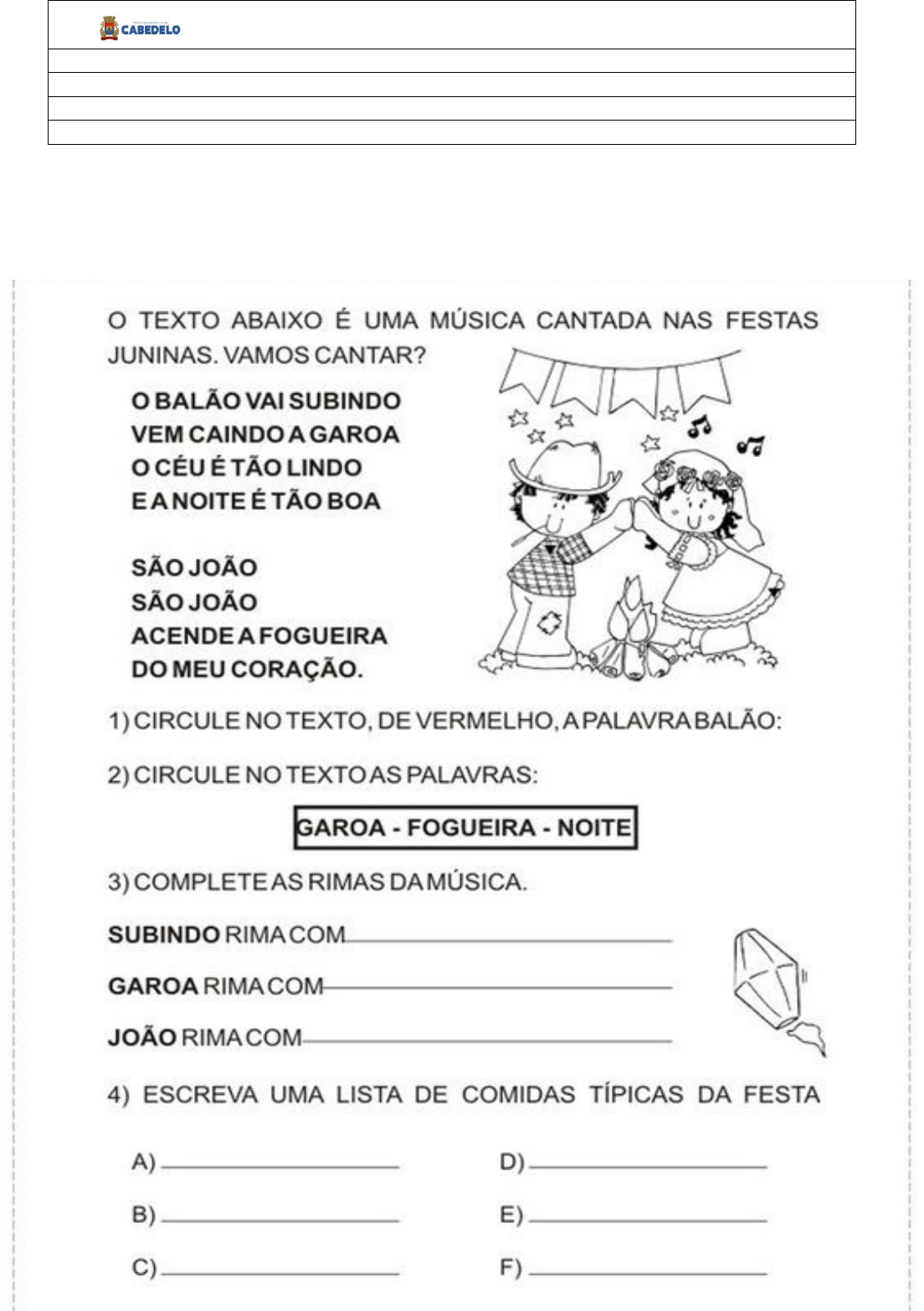 ESCOLA MUNICIPAL ALTIMAR PIMENTEL DISCIPLINA: Português PROFESSORAS: Vanessa Sheila Ramos DATA: 2 ANO A ALUNO (A): Atividades Juninas 2 Bimestre image1.jpeg image2.jpeg image3.jpeg