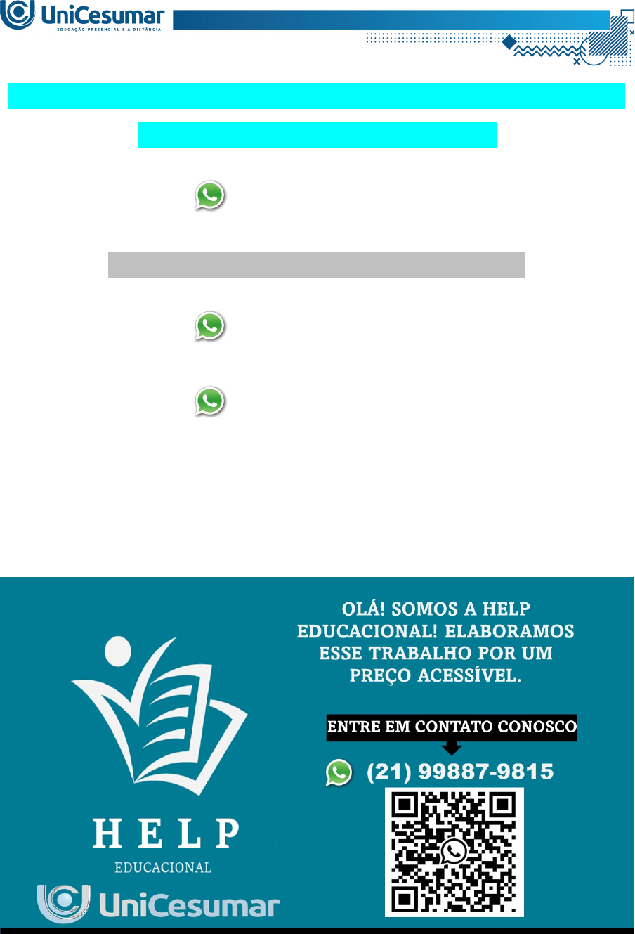 ATIVIDADE 1 – AGRO - ADMINISTRAÇÃO DE CONFLITOS E RELACIONAMENTOS - 54_2024 (21) 99887-9815 ASSESSORIA NOS SEUS TRABALHOS (21) 99887-9815 (21) 99887-9815 Um relacionamento pode ser caracterizado pela interação de indivíduos de diferentes organizações, áreas e níveis hierárquicos, que se envolvem em interações entre empresas, usualmente identificados como comprador e fornecedor. De fato, as empresas podem ter menor chance de serem competitivas sem a parceria de seus fornecedores. Uma estratégia da cadeia de suprimentos “orientada para o relacionamento é claramente a melhor escolha para aqueles que desejam prosperar no ambiente global competitivo. LOPES, J. A.; CARVALHO, J. M. de.; LEITÃO, F. O. Fatores de sucesso do relacionamento entre agricultores e indústria de sementes de milho. Revista de Economia e Sociologia Rural, v. 59, n. 4, p. 1-18, 2021. A personalidade é um conjunto complexo de características que influenciam o modo como um indivíduo percebe, pensa, sente e age. Segundo Bock (2006), ela é formada por traços únicos que se organizam para definir a singularidade de cada pessoa a) Descreva como a personalidade é estruturada, detalhando os três principais componentes: autoeducação, hereditariedade e ambiente b) Discuta como traços de personalidade de orientação interna versus externa podem influenciar o comportamento de um profissional no ambiente de trabalho, conforme descrito por Vecchio (2008) OLÁ! SOMOS A HELP EDUCACIONAL! ELABORAMOS ESSE TRABALHO POR UM PREÇO ACESSÍVEL. ENTRE EM CONTATO CONOSCO (21) 99887-9815 image1.png image2.png image3.png