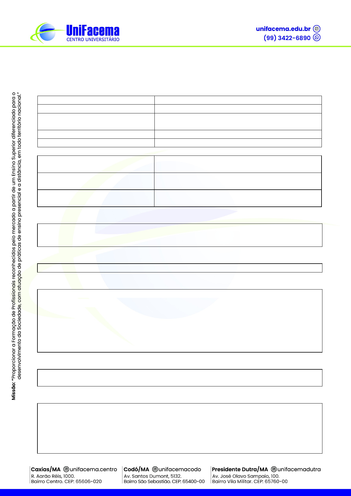 CENTRO UNIVERSITÁRIO DE CIÊNCIAS E TECNOLOGIA DO MARANHÃO – UNIFACEMA FORMULÁRIO TDE II (TRABALHO DISCENTE EFETIVO II) CURSO: BACHARELADO EM ODONTOLOGIA PERÍODO: 10º DISCIPLINA: ODONTOLOGIA NO ATENDIMENTO A GRUPOS ESPECIAIS CARGA HORÁRIA DA DISCIPLINA: 60 HORAS PROFESSOR: ROMÁRIO REIS NASCIMENTO CARVALHO DATA DE INÍCIO DO TDE: 10/10/2024 DATA DE ENTREGA DO TDE AO PROFESSOR: 06/12/2024 CARGA HORÁRIA DO TDE: 10 HORAS CONTEÚDO DO PLANO DE ENSINO RELACIONADO AO TDE Atendimento Odontológico de Pacientes com Alterações Sistêmicas DISCIPLINA(AS) DO PERÍODO INTEGRADA(S) - COMPETÊNCIAS E HABILIDADES COMPETÊNCIAS: Desenvolvimento multidisciplinar; Trabalho em equipe; Humanização e Responsabilidade Social; HABILIDADES: · Compreender peculiaridades relacionadas aos pacientes com alterações sistêmicas. · Aplicar o conhecimento sobre as alterações sistêmicas frente ao atendimento odontológico. ATIVIDADE DO TDE Confecção do referencial teórico + banner eletrônico CONTEXTUALIZAÇÃO E JUSTIFICATIVA DA ATIVIDADE A Odontologia para pacientes com necessidades especiais é a especialidade que atua na prevenção, diagnóstico, tratamento e controle dos problemas de saúde bucal de pacientes que apresentam alguma alteração biopsicossocial. No geral, os profissionais desta área precisam de um maior conhecimento quanto ao tratamento e o diagnóstico do paciente, além de um maior autocontrole e eficiência (Andrade, 2015). Há uma grande dificuldade dos profissionais da área da Odontologia para lidar com pacientes com necessidades especiais (PNE), devido à falta de experiência e conhecimento. Portanto é de suma importância que desde a graduação os acadêmicos aprofundem de forma teoria e prática sobre condutas voltadas para o atendimento odontológico desses pacientes. É importante destacar também, que pacientes com alterações sistêmicas são cada vez mais comuns no consultório odontológico. DETALHAMENTO DE ELABORAÇÃO DA ATIVIDADE Os acadêmicos serão divididos em grupos, cada grupo irá elaborar um referencial teórico e confeccionar um banner eletrônico, de acordo com as seguintes temáticas: 1. Atendimento odontológico de pacientes com Alterações Cardiovasculares (grupo 1 e 2) 2. Atendimento odontológico de pacientes com Alterações Respiratórias (grupo 3 e 4) 3. Atendimento odontológico de pacientes com Alterações Hepáticas (5 e 6) 4. Atendimento odontológico de pacientes com Alterações Renais (grupo 7 e 8) 5. Atendimento odontológico de pacientes com Alterações Gástricas (grupo 9 e 10) Atenção: É importante ressaltar que a divisão dos grupos e a escolha da respectiva temática, será feita pelo professor em sala de aula. Orientações sobre elaboração do referencial teórico: · Estrutura: CAPA, REFERENCIAL TEÓRICO (dividido em pelo menos 2 tópicos), CONCLUSÃO E REFERÊNCIAS BIBLIOGRÁFICAS. Formatação seguindo normas da ABNT. Orientações sobre confecção do Banner Eletrônico com base no referencial teórico elaborado: 1. Arquivo desenvolvido em Power Point (.ppt, .pptx) ou outro programa similar, em um único slide e salvo em formato PDF; 2. A apresentação poderá conter no máximo uma página (slide); 3. Configuração de tamanho de página: 90 cm x 120 cm (largura x altura); 4. Slide dimensionado para “Personalizar” orientação retrato; 5. Orientação de página: retrato; 6. O pôster eletrônico (E-pôster) deve ser estruturado contemplando os seguintes subtítulos (quando aplicáveis): · Título · Autores e Orientador (último nome) · Introdução · Desenvolvimento · Conclusões · Referências (apenas as principais e sem link e data de acesso) 7. Tipo e tamanho de fonte: fonte Arial e cor preta · Título: tamanho 55 a 70, negrito, centralizado · Autores e Orientador: tamanho 40 a 44, centralizado, seguido por número correspondente ao vínculo institucional (sobrescrito e descrito no rodapé do slide) · Os subtítulos devem ter o tamanho 55, centralizado e negrito. · O conteúdo de cada subitem deve estar em tamanho 40 a 55, justificado, espaçamento simples e sem recuo. · Nota de rodapé: tamanho 30 · Use o itálico somente para indicar termos em outros idiomas. EXEMPLO DE BANNER ORGANIZAÇÃO DA ATIVIDADE ( ) INDIVIDUAL ( x ) GRUPO CRITÉRIOS DE AVALIAÇÃO 50% da nota pela entrega do referencial teórico e qualidade da pesquisa 50% da nota pela entrega do banner. ___________________________________________________________________________________________________ Professor(a) image1.jpeg image2.jpg