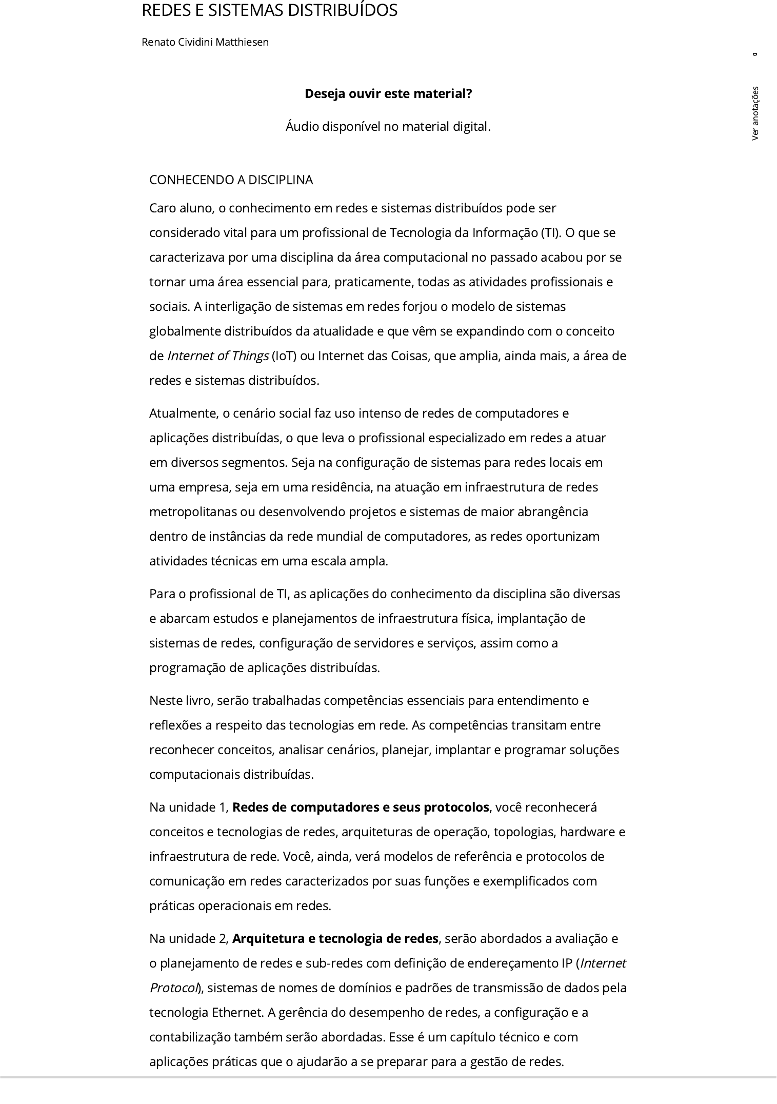 A disciplina de Redes e Sistemas Distribuídos traz um conteúdo altamente