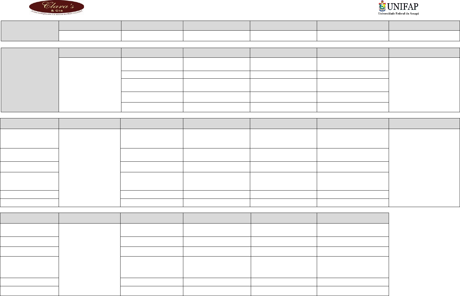 CARDÁPIO RESTAURANTE UNIVERSITÁRIO OUTUBRO 2024 SEGUNDA-FEIRA TERÇA-FEIRA QUARTA-FEIRA QUINTA-FEIRA SEXTA-FEIRA SÁBADO 28/10 29/10 30/10 31/10 01/11 02/11 OUTUBRO NOVEMBRO 2024 DESJEJUM DESJEJUM DESJEJUM DESJEJUM DESJEJUM DESJEJUM Café puro ou Café com leite Café puro ou Achocolatado Café puro ou Café com leite Café puro ou Achocolatado Pão de chá Pão francês Pão de chá Pão francês FERIADO FACULTADO Salsicha ao molho ou Manteiga Manteiga Ovos mexidos ou Manteiga Manteiga Mingau de farinha láctea Bolo formigueiro Mingau de arroz Pão de pizza Fruta Fruta Fruta Fruta SERVIÇO ALMOÇO ALMOÇO ALMOÇO ALMOÇO ALMOÇO ALMOÇO Prato principal Lasanha de frango Saia velha (carne desfiada com legumes) Coxa sobrecoxa de forno Bife de fígado bovino acebolado Opção : frango desfiado Vegetariano Tempurá de legumes Moqueca de banana da terra Hambúrguer de legumes Macarronada de soja Guarnição FACULTADO Farofa Macarrão Purê misto Farofa com soja FERIADO Acompanhamento Arroz Feijão Arroz Feijão Arroz Feijão Arroz Feijão Salada Crua Crua Crua Crua Sobremesa Fruta Programada Fruta Programada SERVIÇO JANTAR JANTAR JANTAR JANTAR JANTAR Prato principal Chapa mista (carne/toscana) Filé de frango ao molho de queijo Carne guisada com legumes Coxa sobrecoxa na chapa Vegetariano Ratatouille Torta de soja com legumes Kafta vegetariana Panqueca de grão de bico Guarnição FACULTADO Macarrão parafuso Farofa Macarrão Abóbora refogada Acompanhamento Arroz Sopa de carne c/ legumes Torrada Arroz Sopa de feijão Torrada Arroz Sopa de legumes Torrada Arroz Sopa de frango Torrada Salada Crua Crua Crua Crua Sobremesa Programada Fruta Programada Fruta *CARDÁPIO SUJEITO Á ALTERAÇÕES. http://www.unifap.br/public/