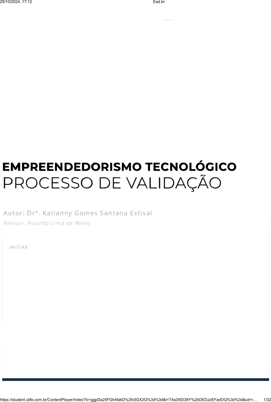EMPREENDEDORISMO TECNOLÓGICOEMPREENDEDORISMO TECNOLÓGICO PROCESSO DE VALIDAÇÃOPROCESSO DE VALIDAÇÃO Autor: Drª. Katianny Gomes Santana Estival Revisor : R icardo L ima de Mel lo IN IC IAR 29/10/2024, 17:12 Ead.br https://student.ulife.com.br/ContentPlayer/Index?lc=ggpDa25FGh4fakD%2fo5GX2Q%3d%3d&l=T4a3I5D38Y%2bDEDJzEFadOQ%3d%3d&cd=i… 1/32 introdução Introdução No processo empreendedor não basta ter uma boa ideia, considerada inovadora e atrativa somente por perspectivas de pro�ssionais com experiência ou não sobre um determinado segmento. Para que a ideia seja “boa”, ela precisa ter um número su�ciente de clientes que estejam dispostos (que preferencialmente paguem de verdade), com escala e recorrência para ter acesso ao produto ou serviço, dessa forma, é viabilizada a sustentabilidade �nanceira do negócio em médio e longo prazo. Conhecer mais sobre o processo de validação, as ferramentas práticas, acessíveis, prototipagem, mockup e UX com foco na utilização de uma linguagem acessível, moderna e associada às atuais práticas organizacionais, através da apresentação de exemplos e casos de sucesso e/ou fracasso, são os objetivos desta unidade. 29/10/2024, 17:12 Ead.br https://student.ulife.com.br/ContentPlayer/Index?lc=ggpDa25FGh4fakD%2fo5GX2Q%3d%3d&l=T4a3I5D38Y%2bDEDJzEFadOQ%3d%3d&cd=i… 2/32 A validação da proposta empreendedora é o processo de veri�car, junto aos mercados consumidores potenciais ou atuais, se o produto e/ou serviço idealizado, projetado e prototipado terá público e clientes que queiram e paguem por ele. Além da disposição para a compra ou testes de validação que envolvam compras reais, a validação será útil para identi�car com qual frequência, quais quantidades, quais critérios de qualidade, haverá vendas su�cientes para garantir a sustentabilidade �nanceira da organização em médio e longo prazo. Steve Blank publicou em 2015 um artigo em que aborda as formas de validar os negócios, com base na ideia de construir, medir e aprender (BLANK, 2015). Construir, Medir, Aprender soa bem simples. Construa um produto, coloque-o no mundo real, meça as reações e comportamentos dos clientes, aprenda com isso e use o que aprendeu para construir algo melhor. Repita, entendendo se é preferível incrementar, pivotar ou recomeçar do zero, até ter algo que seus clientes amem (BLANK, 2015, p. 1-2). Na proposta de Blank (2015), com base nas chamadas metodologias ágeis, a proposta do construir, medir e aprender é que os negócios, principalmente as startups, sejam rápidos, ágeis e e�cientes. Nesse sentido, o processo de validação tem início a partir de hipóteses, em que elas são consideradas como um conjunto de ideias não testadas. Identi�car, construir as hipóteses e selecionar quais devem ser testadas, pode ser um processo facilitado e sistematizado por meio do uso da ferramenta Canvas. Mecanismos de validação das propostas de negócios englobam a aplicação de ferramentas simples como o brainstorming ou tempestade de ideias, em que pode ser incentivada a participação de colaboradores de diversas áreas funcionais e de conhecimento para a geração de ideias e/ou identi�cação da solução de problemas. O brainstorming consiste em mapear o maior número de O Que é Validação, ComoO Que é Validação, Como e Por Que Validar?e Por Que Validar? 29/10/2024, 17:12 Ead.br https://student.ulife.com.br/ContentPlayer/Index?lc=ggpDa25FGh4fakD%2fo5GX2Q%3d%3d&l=T4a3I5D38Y%2bDEDJzEFadOQ%3d%3d&cd=i… 3/32 ideias ou propostas de soluções para uma demanda ou problema. Em uma primeira rodada de conversa não deve ser aplicado nenhum tipo de �ltro. Mas, em um segundo momento, por meio do diálogo com os colaboradores e da coerência ao propósito organizacional, a proposta do brainstorming consiste em aplicar um �ltro com a consideração das ideias ou soluções que atendam as reais necessidades do cliente e que a organização tenha recursos �nanceiros, tecnológicos e humanos para executar e causar maior impacto nos resultados na empresa. Também é possível a utilização de informações secundárias, disponíveis em bases de dados con�áveis, como: IBGE, IPEA, Associações e Organizações representativas do segmento de interesse e pesquisas cientí�cas, que possibilitem a análise do mercado de atuação no segmento em âmbito mundial, nacional, regional e local. Com as informações mapeadas, sistematizadas e compartilhadas é indicada a construção coletiva e colaborativa do modelo de negócios simpli�cado com o uso da ferramenta Canvas, modelo de negócios em uma folha de papel. O Canvas, segundo informações detalhadas disponíveis no livro Business Model Generation , foi desenvolvido por Alex Osterwalder e Yves Pigneur (2011). Ele é a representação do modelo de negócios em uma folha de papel e pode ser utilizado como uma ferramenta complementar ao plano de negócios que possibilita visualizar a ideia do novo empreendimento ou propostas de inovação em uma tela de forma simpli�cada e visual, assim como demonstrado na imagem. Com o uso do Canvas será possível que o empreendedor e sua equipe compreendam o estágio atual do empreendimento, o propósito e razão de existir do negócio e como solucionará as dores do mercado, como as atividades que executam podem impactar o crescimento ou o dé�cit dos mercados consumidores. Na construção do modelo de negócios Canvas são identi�cados quais os canais de distribuição, comunicação e vendas que podem ser mais e�cientes para acessar os mercados; como estabelecer relações mais produtivas com os clientes, quais as origens e representatividade sobre os lucros das fontes de receitas do negócio; quais as parcerias que são e poderão ser estratégicas para impulsionar os negócios; quais os recursos �nanceiros, tecnológicos, humanos, intelectuais e materiais essenciais para que o negócio comece a funcionar; e