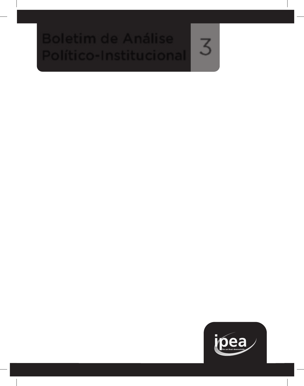 Boletim de Análise Político-Institucional 3 Brasília, 2013 Governo Federal Secretaria de Assuntos Estratégicos da Presidência da República Ministro Wellington Moreira Franco Presidente Marcelo Côrtes Neri Diretor de Desenvolvimento Institucional Luiz Cezar Loureiro de Azeredo Diretor de Estudos e Relações Econômicas e Políticas Internacionais Renato Coelho Baumann das Neves Diretor de Estudos e Políticas do Estado, das Instituições e da Democracia Alexandre de Ávila Gomide Diretor de Estudos e Políticas Macroeconômicas, Substituto Cláudio Hamilton Matos dos Santos Diretor de Estudos e Políticas Regionais, Urbanas e Ambientais Rogério Boueri Miranda Diretora de Estudos e Políticas Setoriais de Inovação, Regulação e Infraestrutura Fernanda De Negri Diretor de Estudos e Políticas Sociais Rafael Guerreiro Osorio Chefe de Gabinete Sergei Suarez Dillon Soares Assessor-chefe de Imprensa e Comunicação João Cláudio Garcia Rodrigues Lima Ouvidoria: http://www.ipea.gov.br/ouvidoria URL: http://www.ipea.gov.br Fundação pública vinculada à Secretaria de Assuntos Estratégicos da Presidência da República, o Ipea fornece suporte técnico e institucional às ações governamentais – possibilitando a formulação de inúmeras políticas públicas e programas de desenvolvimento brasileiro – e disponibiliza, para a sociedade, pesquisas e estudos realizados por seus técnicos. A obra retratada na capa deste terceiro Boletim de Análise Político-Institucional é Favelas, do pintor Cândido Portinari (1903-1962), datada de 1930. Além da inegável beleza e expressividade de suas obras, Portinari tem importância conceitual para um instituto de pesquisas como o Ipea. O “pintor do novo mundo”, como já foi chamado, retratou momentos-chave da história do Brasil, os ciclos econômicos e, sobretudo, o povo brasileiro, em suas condições de vida e trabalho: questões cujo estudo faz parte da própria missão do Ipea. A Diest agradece ao Projeto Portinari pela honra de usar obras do artista em sua produção. É permitida a reprodução deste texto e dos dados nele contidos, desde que citada a fonte. Reproduções para fins comerciais são proibidas. As opiniões emitidas nesta publicação são de exclusiva e in- teira responsabilidade dos autores, não exprimindo, necessari- amente, o ponto de vista do Instituto de Pesquisa Econômica Aplicada ou da Secretaria de Assuntos Estratégicos da Presidên- cia da República. Comitê Editorial Antonio Lassance Alexandre de Avila Gomide Fábio de Sá e Silva Igor Ferraz da Fonseca Joana Alencar Luseni Maria Cordeiro de Aquino Maria Martha de Menezes Costa Cassiolato Boletim de Análise Político-Institucional Boletim de Análise Político-Institucional / Instituto de Pesquisa Econômica Aplicada. – n.1 (2011) - . Brasília : Ipea, 2011- Semestral. ISSN 2237-6208 1. Política. 2. Estado. 3. Democracia. 4. Periódicos. I. Instituto de Pesquisa Econômica Aplicada. CDD 320.05 © Instituto de Pesquisa Econômica Aplicada – ipea 2013 APRESENTAÇÃO 5 AGENDA POLÍTICO-INSTITUCIONAL AGENDA POLÍTICA E DESAFIOS INSTITUCIONAIS: QUESTÕES CENTRAIS PARA 2013 9 Antonio Lassance Fabio de Sá e Silva OPINIÃO A ESPECIFICIDADE DO ESTADO DESENVOLVIMENTISTA (E POR QUE ELE NÃO PODE SER REPRODUZIDO) 25 Ronaldo Fiani REFLEXÕES SOBRE O DESENVOLVIMENTO DIREITOS HUMANOS E LIBERDADES: CONCEITOS CENTRAIS DE UMA NOVA VISÃO DE DESENVOLVIMENTO 33 Maurício Mota Saboya Pinheiro ENTRE O PLANO E O SISTEMA: O IMPASSE DA SEGURANÇA PÚBLICA 37 Fabio de Sá e Silva PELAS MÃOS DOS PRESIDENTES 45 Antonio Lassance OUVIDORIA PÚBLICA E GOVERNANÇA DEMOCRÁTICA 51 Antonio Semeraro Rito Cardoso Fernando Cardoso Lima Neto Elton Luiz da Costa Alcantara NOTAS DE PESQUISA AS ORGANIZAÇÕES DA SOCIEDADE CIVIL E AS POLÍTICAS PÚBLICAS FEDERAIS (2003-2011) 61 Felix G. Lopez Leonardo S. Barone ARRANJOS INSTITUCIONAIS DE POLÍTICAS CRÍTICAS AO DESENVOLVIMENTO 71 Alexandre Gomide Roberto Pires ACESSO À JUSTIÇA NOS JUIZADOS ESPECIAIS FEDERAIS 77 Luseni Aquino Elisa Colares GASTO PÚBLICO, DESIGUALDADES REGIONAIS E ARRANJOS FEDERATIVOS 85 Constantino Cronemberger Mendes Sumário APRESENTAÇÃO O Boletim de Análise Político-Institucional chega ao seu terceiro número. Uma publicação periódica de formato leve, com textos curtos e linguagem acessível, que visa divulgar os trabalhos da Diretoria de Estudos e Políticas do Estado, das Instituições e da Democracia (Diest) do Ipea e fomentar o debate a respeito da dimensão política e institucional do desen- volvimento. À Diest compete realizar estudos e pesquisas ligados às instituições do Estado brasileiro, bem como às relações entre o Estado e a sociedade nos processos de políticas públicas. Desta feita, os artigos publicados refletem as pesquisas da diretoria voltadas aos desafios do Estado democrático indutor do desenvolvimento. A seção Agenda Política apresenta uma leitura dos acontecimentos da conjuntura política. Neste número discute questões relevantes para o ano de 2013 relacionadas ao papel do Estado no desenvolvimento, avaliando suas implicações institucionais tanto para a relação entre os poderes republicanos quanto para os padrões de governança do Federalismo brasileiro. Voltada à publicação de textos em que autores convidados manifestam seus pontos de vista particulares sobre os diversos temas da pauta político-institucional do desenvolvimento, a seção Opinião traz uma contribuição ao debate sobre a compreensão do atual padrão de atuação do Estado brasileiro. O autor argumenta pela não utilização do conceito “Estado de- senvolvimentista”, mesmo que o expandindo, para pensar o Brasil atual. Propõe, alternativa- mente, a utilização da categoria “arranjos institucionais” e o estudo comparativo das políticas adotadas pelos Estados desenvolvimentistas clássicos (Japão, Coreia do Sul, Taiwan etc.) para extraírem-se elementos analíticos e normativos par