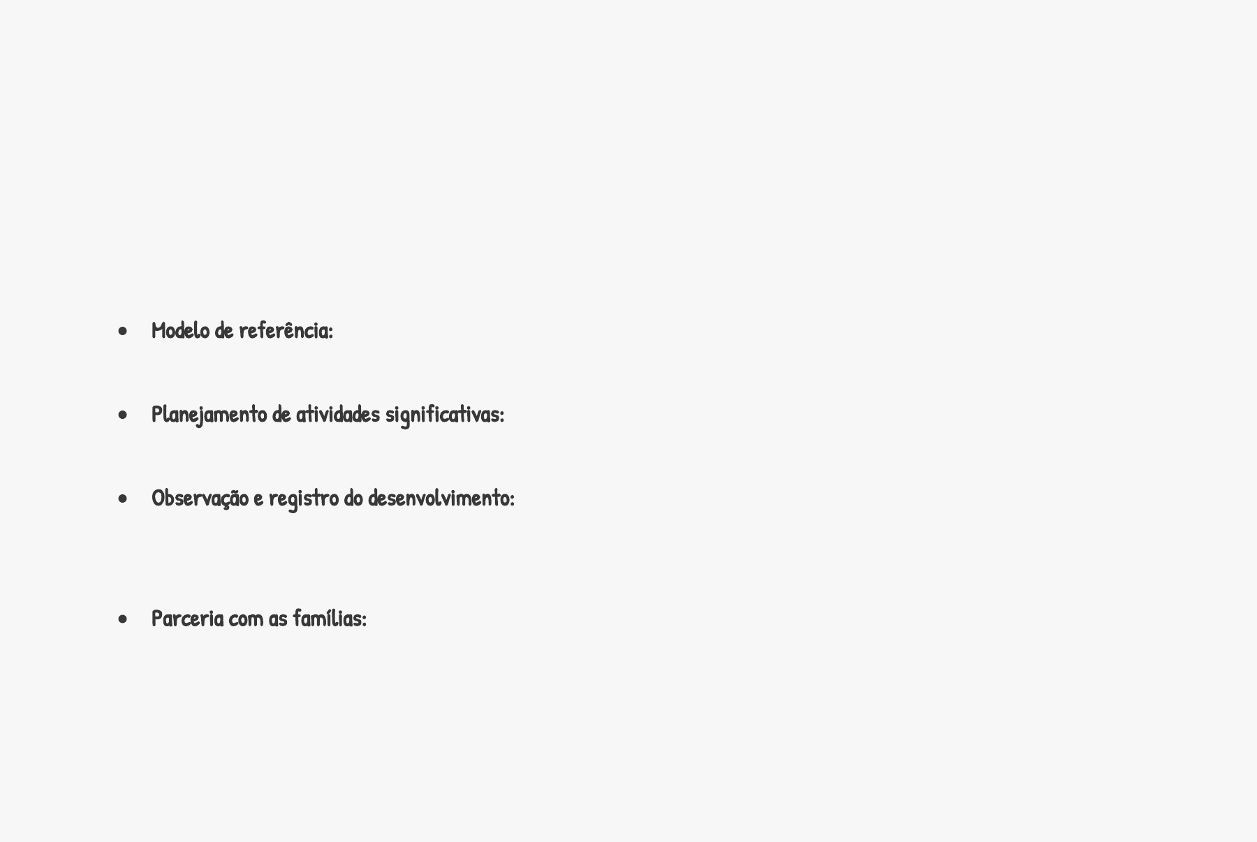 QUAL O papel do educador no jardim de infância? O educador no jardim de infância desempenha um papel fundamental no desenvolvimento integral da criança. Como mediador do processo de aprendizagem, ele é responsável por criar um ambiente estimulante, acolhedor e seguro, que permita que as crianças explorem, descubram e se desenvolvam de forma saudável. Modelo de referência: O educador serve como modelo de comportamento, atitudes e valores, influenciando diretamente o desenvolvimento social e emocional das crianças. Planejamento de atividades significativas: Cabe ao educador planejar e desenvolver atividades lúdicas, criativas e desafiadoras, que estimulem a curiosidade, a imaginação e a aprendizagem das crianças. Observação e registro do desenvolvimento: O educador deve estar atento ao progresso de cada criança, observando e registrando suas conquistas, dificuldades e particularidades, a fim de adaptar sua prática pedagógica às necessidades individuais. Parceria com as famílias: O educador deve estabelecer uma relação de confiança e colaboração com as famílias, compartilhando informações sobre o desenvolvimento da criança e envolvendo-as no processo educativo. Ao assumir esse papel, o educador do jardim de infância torna-se um agente fundamental na promoção do desenvolvimento integral da criança, contribuindo para a formação de cidadãos autônomos, criativos e empáticos. COMO É A Avaliação e acompanhamento do desenvolvimento infantil? 100% Avaliação Contínua Monitoramento do progresso da criança em todas as áreas do desenvolvimento. 3x Encontros Periódicos Reuniões frequentes entre educadores e famílias para discussão do desenvolvimento. 98% Satisfação das Famílias Envolvimento ativo dos pais no acompanhamento do crescimento da criança. A avaliação e o acompanhamento do desenvolvimento infantil são pilares essenciais da pedagogia no jardim de infância. Através de uma abordagem contínua e colaborativa, educadores e famílias monitoram o progresso da criança em todas as áreas, desde o cognitivo até o social e emocional. Encontros periódicos entre pais e professores permitem discutir os avanços, desafios e estratégias para apoiar o desenvolvimento integral da criança. Esse envolvimento ativo das famílias gera uma alta taxa de satisfação, fortalecendo os laços entre a escola e o lar e garantindo que a criança receba o suporte necessário em todos os ambientes.
