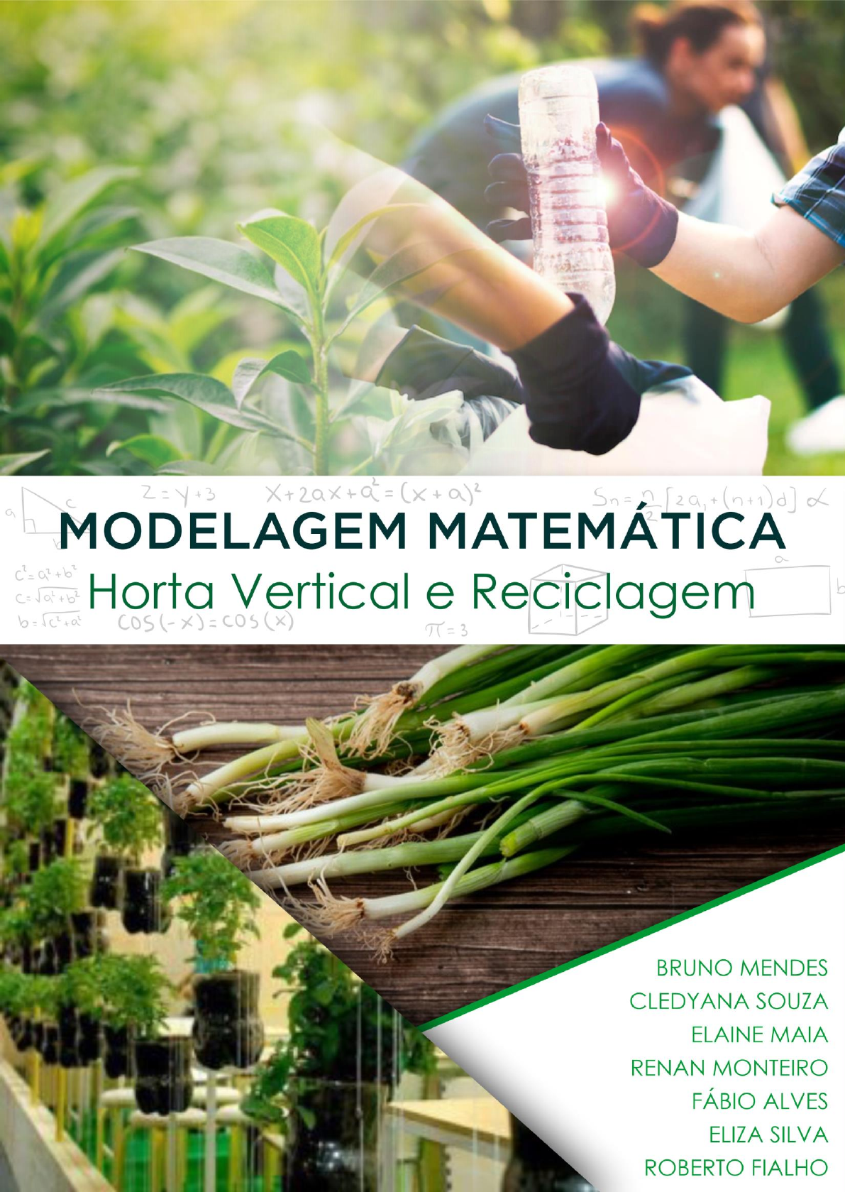 Bruno Mendes Cledyana Souza Elaine Maia Eliza da Silva Fábio Alves Renan Monteiro Roberto Fialho MODELAGEM MATEMÁTICA Horta Vertical e Reciclagem BELÉM 2022 Clay Anderson Nunes Chagas Reitor Universidade do Estado do Pará Ilma Pastana Ferreira Vice-Reitora Universidade do Estado do Pará Jofre Jacob da Silva Freitas Pró-Reitor de Pesquisa e Pós-Graduação Anderson Madson Oliveira Maia Diretor do Centro de Ciências Sociais e Educação Fábio José da Costa Alves Coordenador do Programa de Pós-Graduação em Ensino de Matemática Natanael Freitas Cabral Coordenador do Programa de Pós-Graduação em Ensino de Matemática Diagramação e Capa: Os Autores Revisão: Os Autores Imagens: Clemente e Haber (2012), Os autores, SEBRAEE ( 2015), https://www.youtube.com/watch?v=ytoeLlvSrYo, www.flick.com BARBOSA, Bruno M.; CORDEIRO, Cledyana S.; MAIA, Elaine C. da S.; MONTEIRO, Renan M. A.; ALVES, Fábio J. da C.; FIALHO, Roberto P. B.; SILVA, Eliza Souza da. Modelagem Matemática: Horta Vertical e Reciclagem. 2022. ISBN: 978-65-00-42920-6 Modelagem Matemática; Hortas verticais; Material Reciclável. https://www.youtube.com/watch?v=ytoeLlvSrYo http://www.flick.com/ 3 Sumário APRESENTAÇÃO DA OBRA ....................................................................................................... 4 INTRODUÇÃO............................................................................................................................. 7 1. MODELAGEM MATEMÁTICA NO ENSINO ........................................................................ 8 2. APRESENTAÇÃO DO MODELO ........................................................................................ 11 4. A CULTURA DA CEBOLINHA............................................................................................ 16 5. SISTEMA DE IRRIGAÇÃO ................................................................................................. 19 6. MODELANDO A MATEMÁTICA NA CONSTRUÇÃO DA HORTA CASEIRA ...................... 21 6.1. MODELO 1 ................................................................................................................. 21 6.2. MODELO 2 ................................................................................................................. 36 CONSIDERAÇÕES FINAIS ........................................................................................................ 44 REFERÊNCIAS .......................................................................................................................... 48 4 APRESENTAÇÃO DA OBRA O assunto referente ao plantio de hortaliças é cada vez mais evidente e recorrente, especialmente em função das últimas crises e problemas que a sociedade tem enfrentado, como a pandemia do Corona Vírus ou COVID -19, que ao mesmo tempo que vem exigindo reservas de segurança quanto ao convívio social, em especial exige o isolamento dos sujeitos, em dados momentos em que o fluxo de contaminação se expande ou se contrai. Há problemas que resultam de crises e conflitos internacionais, como os que vêm ocorrendo entre as nações que se embatem comercial e financeiramente. Outras vivem conflitos de expansão territorial e geopolítica de influência, que colocam em dificuldade o conjunto dos meios de produção da sociedade. Como sendo natural do homem, a busca criativa de novas alternativas é parte do seu cotidiano, para driblar crises e dificuldades, como evidenciado há décadas atrás, quando o homem se deu conta dos prejuízos causados por ele próprio ao meio ambiente, em especial devido às atividades econômicas (indústria) e as devastações causadas pela ocupação irregular, tratando de pensar soluções alternativas para uma sobrevivência harmônica, assim surgindo o pensamento holístico em relação à natureza (consciência do todo ou consciência global). Da crise do petróleo (anos 1970), à ECO-92, fica plenamente marcada a opção por uma mudança de vida, pautada na consciência ambiental e na busca do desenvolvimento sustentável. Por mais que não tenha se consolidado em sua plenitude, este novo pensar forneceu subsídio a mudanças individuais, culturais e institucionais na sociedade. As famílias passaram a realizar criações caseiras de animais e plantas, como forma alternativa de suprir pelo menos parcialmente as crises globais econômicas e de abastecimento alimentar, especialmente motivadas pela veiculação comunicativa proporcionada pelos meios de comunicação e as tecnologias de uso pessoal, atestando o dinamismo típico da cultura humana. O conhecimento humano forma uma cadeia que de tempos em tempos se modifica, em novas pertinências, necessidades e idealizações concebidas, onde percebemos também que todos os seres, o ambiente e a própria natureza em seu conjunto se modificam. A maior marca deste conhecimento é a criatividade, ponto em que o ser humano tem seu maior diferencial. Além da manifestação da criatividade dos indivíduos, há um crescimento exponencial do seu potencial, através da troca de ideias, especialmente evidenciada na atuação dos meios globais de comunicação, porque cada um de nós tem a todo instante a possibilidade de estar conectados por dispositivos acessíveis, disponíveis na palma da mão. Uma das formas mais criativas de explorar os meios alternativos de produção alimentar é o plantio de espécies frutíferas de porte diverso, bem como de legumes e hortaliças, no menor espaço possível, à medida que se dispõe ou não de meios para a construção de recipientes, lugares e nichos para plantio, dependendo das espécies de interesse e que estejam acessíveis e com solo, espaço e habitat adequados. Além disso, pensa-se nos meios de plantio que resultem em bons cultivos, como é o caso do design de 5 vasos e recipientes em geral, tipos de terras, adubos adequados, ciclo e forma de irrigação e de exposição solar. Neste sentido é que a Modelagem Matemática pode auxi