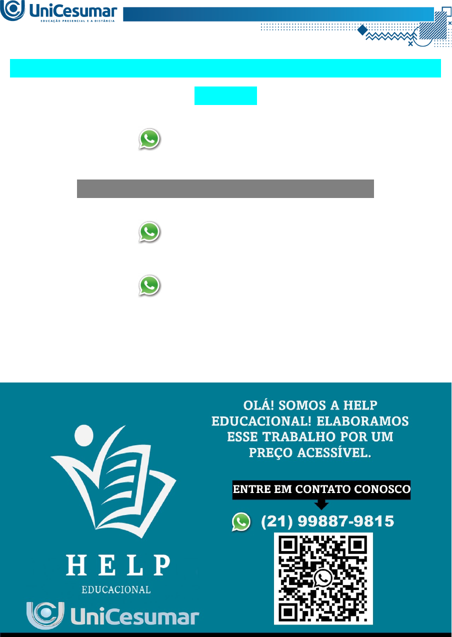 MAPA – EESP - DESIGN EDUCACIONAL E INOVAÇÕES - 54_2024 (21) 99887-9815 ASSESSORIA NOS SEUS TRABALHOS (21) 99887-9815 (21) 99887-9815 A abordagem STEAM (Ciência, Tecnologia, Engenharia, Artes e Matemática) tem ganhado destaque nas discussões educacionais contemporâneas por promover uma integração interdisciplinar que busca transformar a forma como os alunos aprendem. Diferente dos modelos tradicionais, em que as disciplinas são abordadas de forma isolada, o STEAM propõe uma educação holística que valoriza a interação entre as áreas do conhecimento. Essa abordagem permite uma aprendizagem mais significativa, enquanto os estudantes são incentivados a aplicar os conceitos de diferentes disciplinas em projetos práticos e reais. Esse tipo de ensino ativa o pensamento crítico e criativo, além de preparar os alunos para resolverem problemas complexos do mundo moderno. As metodologias ativas utilizadas na abordagem STEAM têm um papel fundamental na construção desse novo modelo de ensino. Elas incluem estratégias como a aprendizagem baseada em projetos, em que os estudantes assumem um papel mais ativo na construção de seu conhecimento. Isso favorece um engajamento maior por parte dos alunos, que passam a ser protagonistas do seu processo de aprendizado. Ao colocar o aluno no centro, a abordagem STEAM incentiva a autonomia, a colaboração e a inovação, aspectos cruciais no desenvolvimento de competências essenciais para o século XXI. Além disso, a integração das artes no STEAM diferencia essa abordagem de outras formas mais tradicionais de ensino focadas apenas nas ciências exatas e tecnológicas. As artes promovem o desenvolvimento da criatividade, empatia e sensibilidade, habilidades que, quando combinadas com o pensamento lógico e analítico das outras disciplinas, criam um processo de aprendizagem mais completo e diversificado. Essa combinação torna os estudantes mais preparados para enfrentar desafios multifacetados, já que eles aprendem a enxergar problemas sob diversas perspectivas, utilizando tanto a racionalidade quanto a imaginação. Finalmente, ao incorporar tecnologias educacionais, o STEAM proporciona ferramentas que facilitam a aprendizagem integrada e colaborativa. Tecnologias como a robótica, a impressão 3D e softwares de design digital são exemplos de recursos que tornam o aprendizado mais envolvente e interativo. Assim, os alunos não apenas absorvem conteúdos teóricos, mas também experimentam suas aplicações no mundo real. Essa aproximação entre teoria e prática é um dos grandes trunfos da abordagem STEAM, que prepara os estudantes para um futuro no qual a resolução de problemas complexos e a inovação serão cada vez mais exigidas. Elaborado pelo professor, 2024. Considerando o texto elencado sobre STEAM, desenvolva um Plano de Aula que contenha os seguintes itens: PLANO DE AULA Acadêmico: R.A. Polo/Cidade/Estado: I. Plano de Aula: Meio Ambiente e Sustentabilidade II. Duração: 50 minutos. III. Tema: Meio Ambiente e Sustentabilidade (especifique, por exemplo: Reciclagem ou Coleta de lixo Seletiva, tema que envolva meio ambiente e sustentabilidade, use a BNCC como suporte ou pesquisa em sites) Série: Você deverá desenvolver essa aula para a turma do Ensino Fundamental Anos Iniciais (1° ao 5° ano). Disciplina: (informe o nome da disciplina para a aula) Habilidade da BNCC: (apenas 1) IV. Objetivos: Objetivo geral: (Apenas 1 objetivo geral) Objetivos específicos: (3 a 4 objetivos) Observação: Na elaboração dos objetivos lembre-se de utilizar o verbo no infinitivo. Link da lista de verbos no infinitivo: https://www.conjugacao.com.br/verbos-para-objetivos/ (copie esse link e cole no seu navegador). V. Conteúdo: (descreva o conteúdo da aula, o que você como professor quer ensinar para garantir o desenvolvimento e a compreensão sobre o tema) VI. Recursos didáticos (digital): Utilizar a abordagem STEAM para desenvolver o material educativo com foco no meio ambiente e sustentabilidade. Relacione quais recursos serão necessários para a aula. Exemplo: Ciências: Pesquisa sobre conceitos de sustentabilidade e seus impactos ambientais. Os alunos devem coletar informações científicas sobre reciclagem, poluição, conservação de energia e outros aspectos ambientais que serão a base do material. Tecnologia e Engenharia: Utilizar ferramentas digitais (como aplicativos de design ou softwares educativos) para desenvolver um recurso interativo, como um aplicativo, um jogo digital ou uma animação. Caso a turma não tenha domínio dessas tecnologias, os alunos podem trabalhar com a construção de maquetes ou modelos que representem soluções sustentáveis. Artes: Incluir o aspecto criativo no desenvolvimento visual do material. Por exemplo, criar ilustrações ou gráficos que representem os conceitos de sustentabilidade, incentivando a criatividade e a expressão artística. Matemática: Incluir atividades matemáticas no material educativo, como a análise de dados sobre consumo de água ou energia, cálculos de economia com práticas sustentáveis, ou desafios lógicos que envolvam a temática. VII – Atividade (em sala): Apresente uma atividade na qual os alunos terão que desenvolver que envolva APENAS 01 recurso STEAM. A atividade deverá conter os seguintes itens: Introdução (5 a 10 linhas): (explique como a atividade vai ocorrer) Divisão em Grupos: (quantos alunos cada grupo) Discussão em Grupo: (quais discussões se espera que o grupo aborde) Perguntas e Respostas: (elabore perguntas sobre o conteúdo que você escolheu para este plano de aula que os alunos terão que responder e coloque a resposta correta. No mínimo 3 questões e no máximo 5) Conclusão: (coloque qual é o resultado final esperado para a atividade) ATENÇÃO: - Assista ao vídeo explicativo da atividade, disponível na Sala do Café. - A atividade precisa ser desenvolvida por você, portanto, não utilize cópias indevidas de ativida