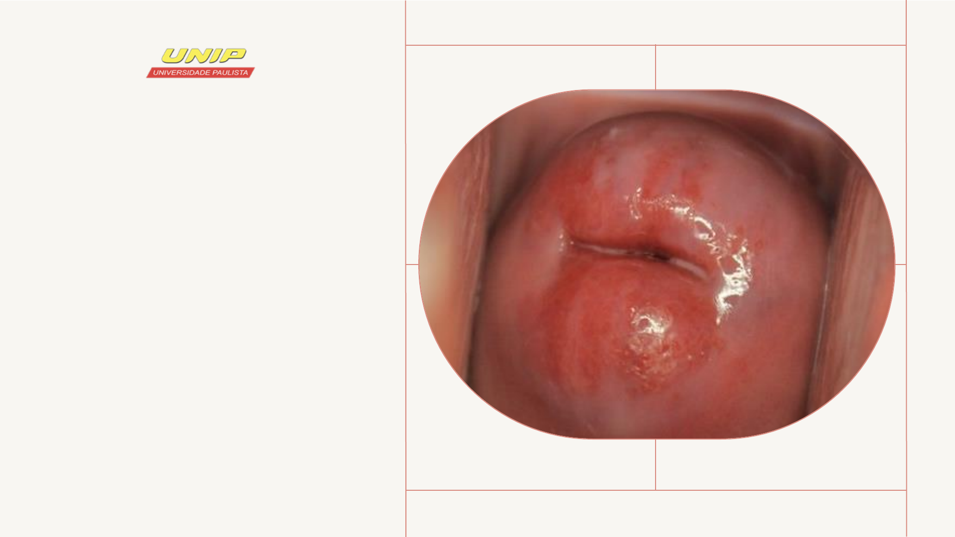 Alterações Cervicais Profa. Ma. Thuany Cavalcante Ectopia Cervical • Caracteriza-se pela presença de epitélio colunar, incluindo glândulas na ectocérvice, sendo observado frequentemente em adolescentes e adultos jovens. Embora seja de natureza benigna, a presença de ectopia pode favorecer a instalação de algumas ISTs, como clamídia, gonorreia e o HPV. Ectopia Cervical • A presença de epitélio colunar na ectocérvice é conhecida como ectrópio ou ectopia. Esta é uma condição fisiológica induzida pelo efeito do estrogênio no colo do útero. • Um ectrópio é visível como uma mancha vermelha no centro do colo do útero e tem uma aparência suave e aveludada. Ectopia Cervical • As características do epitélio colunar (vilosidades e fissuras) são melhor visualizadas após a aplicação do ácido acético. Muitas vezes, a JEC é claramente demarcada como uma fina linha branca. Ectopia Cervical • O epitélio colunar na ectocérvice pode ter evidências de alterações metaplásicas de graus variáveis. Com o avançar da idade, o epitélio metaplásico substitui gradualmente o ectrópio e este desaparece. Ectopia Cervical • Às vezes, o estiramento do colo do útero pelas lâminas do espéculo pode dar origem à falsa aparência de ectrópio. O fechamento das lâminas do espéculo permite que os lábios do colo uterino recuem e o epitélio colunar não seja mais visível. Ectrópio é uma condição fisiológica e nenhum tratamento é necessário. No entanto, o epitélio colunar exposto pode ser infectado repetidamente, causando corrimento vaginal excessivo, ou pode causar um sangramento pós-coito incômodo. Em tais situações, a ablação do epitélio colunar por crioterapia ou termocoagulação pode acelerar a substituição do epitélio colunar por epitélio escamoso maduro. Displasia ou Neoplasia Intraepitelial Cervical • A história natural do câncer do colo do útero geralmente apresenta um longo período de lesões precursoras, assintomáticas, curáveis na quase totalidade dos casos quando tratadas adequadamente, conhecidas como NIC II/III (ou lesões de alto grau) e AIS (adenocarcinoma in situ). • A NIC I representa a expressão citomorfológica de uma infecção transitória produzida pelo HPV e têm alta probabilidade de regredir, de tal forma que atualmente não é considerada como lesão precursora do câncer do colo do útero Displasia ou Neoplasia Intraepitelial Cervical • A história natural do câncer do colo do útero geralmente apresenta um longo período de lesões precursoras, assintomáticas, curáveis na quase totalidade dos casos quando tratadas adequadamente, conhecidas como NIC II/III (ou lesões de alto grau) e AIS (adenocarcinoma in situ). • A NIC I representa a expressão citomorfológica de uma infecção transitória produzida pelo HPV e têm alta probabilidade de regredir, de tal forma que atualmente não é considerada como lesão precursora do câncer do colo do útero Nomenclatura Citopatológica e Histopatológica • Em 1988 o National Cancer Institute (USA) em Bethesda, Maryland propôs um sistema de guia para a interpretação dos esfregaços cervicovaginais. • Esse sistema foi modificado em 2001 e aprovado no Congresso Americano. • Esse sistema baseia- se em uma classificação bimodal que divide as lesões intraepiteliais escamos em BAIXO (correspondendo a NIC I) e ALTO GRAU (correspondendo ao NIC II e NIC III). • Em 2006, o Brasil fez uma adaptação do Sistema de Bethesda, Nomenclatura Brasileira para Laudos Citopatológicos Cervicais. • Para uma descric ̧ão completa das categorias diagnósticas atualmente utilizadas no Brasil, recomenda- se a consulta a ̀ Nomenclatura Brasileira para Laudos Cervicais. N o m en cl a tu ra C it o p a to ló g ic a e H is to p a to ló g ic a Siglas: neoplasia intraepitelial cervical (NIC); lesões intraepiteliais de baixo grau (LSIL); lesões intraepiteliais de alto grau (HSIL). N o m en cl a tu ra C it o p a to ló g ic a e H is to p a to ló g ic a Recomendações de Conduta Inicial na Atenção Primária em Saúde Adequabilidade da Amostra Amostra insatisfatória para avaliação: É considerada insatisfatória a amostra cuja leitura esteja prejudicada pelas razões: • Material acelular ou hipocelular (75% do esfregaço) por presença de sangue, piócitos, artefatos de dessecamento, contaminantes externos ou intensa superposição celular. • Nestes casos não é possível se dar algum diagnóstico. Recomendações: • O exame deve ser repetido em 6 a 12 semanas com correção, quando possível, do problema que motivou o resultado insatisfatório. Adequabilidade da Amostra Amostra satisfatória para avaliação: Designa amostra que apresente células em quantidade representativa, bem distribuídas, fixadas e coradas, de tal modo que sua observação permita uma conclusão diagnóstica. Células presentes na amostra (representativas dos epitélios do colo do útero): − Células escamosas. − Células glandulares (não inclui o epitélio endometrial). − Células metaplásicas (Junção Escamocolunar - JEC) - sua presença na amostra tem sido considerada como indicador da qualidade da coleta, pelo fato de essa coleta buscar obter elementos celulares representativos do local onde se situa a quase totalidade dos cânceres do colo do útero. Epitélios do Colo do Útero Resultado citológico normal, alterações benignas e queixas ginecológicas • Resultado citológico dentro dos limites da normalidade no material examinado. • Alterações celulares benignas (reativas ou reparativas): • Inflamação sem identificação de agente; • Resultado citológico indicando metaplasia escamosa imatura; • Resultado citológico indicando reparação; • Resultado citológico indicando atrofia com inflamação; • Resultado citológico indicando alterações decorrentes de radiação ou quimioterapia; • Achados microbiológicos (Lactobacillus sp., Cocos., outro