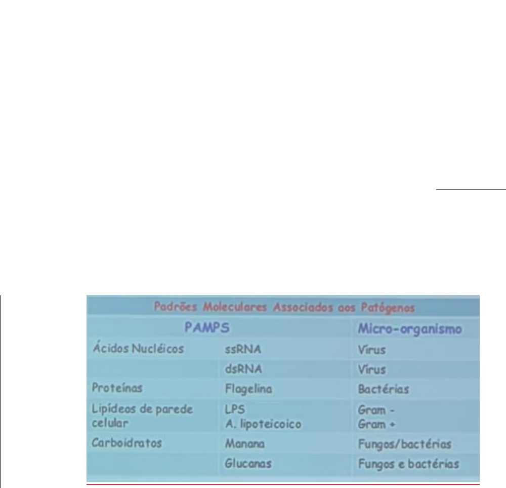 1 ➔ PAMPs = Padrões moleculares associados à patógenos - São moléculas presentes nos patógenos que os fazem ser reconhecidos e desencadeiam as respostas imu- nes inatas. - Lipopolissacarídeos (LPS), ácido lipoteicóico, flagelina, dsRNA. - Células que reconhecem os PAMPs – Células dendríticas, mastócitos e macrófagos. Principais: LPS = Lipopolissacarídeo presente na membrana de bactérias gram-negativas. Ex: Sterichea colli e sal- monela Peptdioglicano = camada por cima da membrana de bactérias gram-positivas. Ex: Streptococcus. Glicolipídios = ácido micólico. Presente nos bacilos álcool-ácidos resistentes. Ex: micobactérias tubercu- losis etc. DNA bacteriano = não-metilado ➔ DAMPs = Padrões moleculares associados a danos - Substâncias liberadas por células mortas ou lesionadas de tecidos danificados. - Intra e extracelulares; Principais: DNA das mitocôndrias - igual das bactérias HMGB1 PAMPs; DAMPs e PRRs 2 ➔ PRRs = Receptores de reconhecimento padrão - Neles os PAMPs e DAMPs se ligam para desencadear as respostas inatas. - Presentes nas cls. sentinelas. Principais: Receptor Toll Like: extra e intracelular. Ex: TLR 1-9; NOD 1/2; RIG, MDA, CD...; FPR . Anticorpos: lgG; lgD; lgE; lhA; lhM; IgG = a mais circulante na corrente sanguínea. IgA = a mais produzida no organismo (presente nas mucosas) IgD = apenas receptora de célula B Fab = porção variável, “livre” dos anticorpos Fc = porção presa à célula (num formato de Y) 3 ➔ Reconhecimento Antigênico PRRs: Receptores de reconhecimento padrão - CLR; TLR; NLR e RLR. ➔ Complexo principal do histocompatibilidade e processamento antigênico MHC - Major Histocompatibility Complex - Grupos de genes que expressam proteínas na superfície celular - Classe I, II e III - I e II são glicoproteínas, expressas na membrana de células nucleadas ➔ MHC I - Presente em todas as células nucleadas; - Age nas infecções intracelulares; - Células transformadas (cancerosas); - Liga-se a peptídeos endógenos; - Apresentam Ag para linfócitos Tc (CD8+); - Sinaliza alterações intracelulares (tumores, parasitas etc.) ➔ MHC II - Células apresentadoras de antígeno - Célula dendrítica; macrófago; linfócito B - Age nas infecções extracelulares - Liga-se à peptídeos exógenos - Apresentam antígenos para linfócitos Th (CD4+) 4 ➔ Processamento Antigênico MHC I → Células nucleadas - Ag intracelular - Processamento via proteassoma - Retículo endoplasmático - MHC I – LTc MHC II → APCs, DC, Mo, LB - Ag extracelular - Processamento via endossoma ou lisossoma - Fusão de vacúolos - MHC II – LTh Como reconhecer um ANTÍGENO? ➔ Reconhecimento antigênico - Especificidade antigênica - MHC I e II Imunidade Adaptativa: ➔ MHC II → células apresentadoras de antígenos (APCs) ➔ Antígeno extracelular fagocitado ➔ Linfócito CD4+ (LThelper)