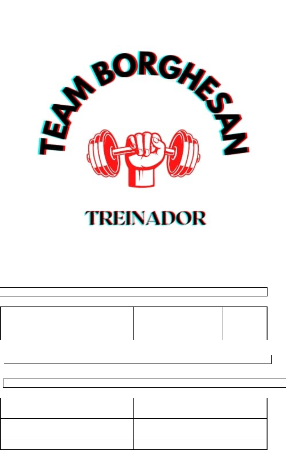 PLANEJAMENTO DE TREINO RAFAEL! 1 2 3 4 5 6 4X 12/15 4X 12/15 4X 10/12 4X 8/10 4X 8/10 4X 6/8 SEGUIR A PERIODIZAÇÃO DE TREINO DAS SEMANAS SEGUINTES A CIMA !!! CARDIOS PÓS TREINO, NUNCA DEIXE QUE FIQUE FACIL, SEMPRE TRABLHE COM BOA INTENSIDADE! DOMINGO 30 MINUTOS SEGUNDA 15 MINUTOS TERÇA 15 MINUTOS QUARTA 15 MINUTOS QUINTA 15 MINUTOS SEXTA 15 MINUTOS SABADO 30 MINUTOS SEGUNDA PEITO TERÇA DORSAL QUARTA OMBRO QUINTA PERNA SEXTA BRAÇO SABADO OFF DOMINGO OFF EXERCICIO SÉRIES OBSERVAÇÕES SUPINO RETO 1º WARN 20 REPS 2X 70/80% CARGA MAX. 1X 100% CARGA MAXIMA SUPINO INCLINADO ARTICULADO 2X 70/80% CARGA MAX. 2X 100% CARGA MAXIMA VOADOR 2X 70/80% CARGA MAX. 2X 100% CARGA MAXIMA CRUCIFIXO COM HALTER 2X 70/80% CARGA MAX. 1X 100% CARGA MAXIMA SUPLINO DECLINADO 2X 70/80% CARGA MAX. 2X 100% CARGA MAXIMA OBERSERVAÇÕES: CADÊNCIA 2-2 DESCANSO: 20 REPS 30 SEG, 12-15 REPS 45 SEG, 8-12 REPS 1 OU 2 MIN, 6-8 REPS, 2 OU 4MIN ESPAÇO RESERVADO PARA ANOTAÇÕES EXERCICIO SÉRIES OBSERVAÇÕES PUXADA ALTA ABERTA 1X WARN 20 REPS 2X 70/80% CARGA MAX. 1X 100% CARGA MAXIMA REMADA CAVALINHO 2X 70/80% CARGA MAX. 2X 100% CARGA MAXIMA REMADA SENTADA ABERTA 2X 70/80% CARGA MAX. 2X 100% CARGA MAXIMA PUXADA ALTA FECHADA 2X 70/80% CARGA MAX. 1X 100% CARGA MAXIMA PULL DOWN 2X 70/80% CARGA MAX. 1X 100% CARGA MAXIMA OBERSERVAÇÕES: CADÊNCIA 2-2 DESCANSO: 20 REPS 30 SEG, 12-15 REPS 45 SEG, 8-12 REPS 1 MIN, 6-8 REPS, 2 MIN ESPAÇO RESERVADO PARA ANOTAÇÕES EXERCICIO SÉRIES OBSERVAÇÕES ELEVAÇÃO LATERAL 1X WARN 20 REPS 2X 70/80% CARGA MAX. 1X 100% CARGA MAXIMA DESENVOLVIMENTO C/ HALTER 2X 70/80% CARGA MAX. 2X 100% CARGA MAXIMA ELEVAÇÃO FRONTAR C/ CORDA NA POLIA 2X 70/80% CARGA MAX. 2X 100% CARGA MAXIMA REMADA ALTA 2X 70/80% CARGA MAX. 1X 100% CARGA MAXIMA VOADOR INVERSO (PEGADA PRO NADO) 2X 70/80% CARGA MAX. 2X 100% CARGA MAXIMA OBERSERVAÇÕES: CADÊNCIA 2-2 DESCANSO: 20 REPS 30 SEG, 12-15 REPS 45 SEG, 8-12 REPS 1 MIN, 6-8 REPS, 2 MIN ESPAÇO RESERVADO PARA ANOTAÇÕES MOBILIDADE, FAÇA SEMPRE PRÉ TREINO EXERCICIO SÉRIES OBSERVAÇÕES CADEIRA EXTENSORA 1X WARN 20 REPS 2X 70/80% CARGA MAX. 1X 100% CARGA MAXIMA SQUAT MACHINE 2X 70/80% CARGA MAX. 2X 100% CARGA MAXIMA LEG PRESS 2X 70/80% CARGA MAX. 2X 100% CARGA MAXIMA MESA FLEXORA 2X 70/80% CARGA MAX. 1X 100% CARGA MAXIMA CADEIRA FLEXORA 2X 70/80% CARGA MAX. 1X 100% CARGA MAXIMA OBERSERVAÇÕES: CADÊNCIA 2-2 DESCANSO: 20 REPS 30 SEG, 12-15 REPS 45 SEG, 8-12 REPS 1 MIN, 6-8 REPS, 2 MIN ESPAÇO RESERVADO PARA ANOTAÇÕES MOBILIDADE, FAÇA SEMPRE PRÉ TREINO COMO ESTA NO EBOOK EXERCICIO SÉRIES OBSERVAÇÕES ROSCA ALTERNADA 1X WARN 20 REPS 2X 70/80% CARGA MAX. 1X 100% CARGA MAXIMA TRICEPS TESTA C/ HALTER 1X WARN 20 REPS 2X 70/80% CARGA MAX. 1X 100% CARGA MAXIMA ROSCA DIRETA C/ BARRA 2X 70/80% CARGA MAX. 2X 100% CARGA MAXIMA TRICEPS PULLEY C/BARRA RETA 2X 70/80% CARGA MAX. 2X 100% CARGA MAXIMA ROSCA MARTELO C/ CORDA NA POLIA 2X 70/80% CARGA MAX. 2X 100% CARGA MAXIMA TRICEPS PULLEY C/ CORDA 2X 70/80% CARGA MAX. 2X 100% CARGA MAXIMA OBERSERVAÇÕES: CADÊNCIA 2-2 DESCANSO: 20 REPS 30 SEG, 12-15 REPS 45 SEG, 8-12 REPS 1 MIN, 6-8 REPS, 2 MIN ESPAÇO RESERVADO PARA ANOTAÇÕES