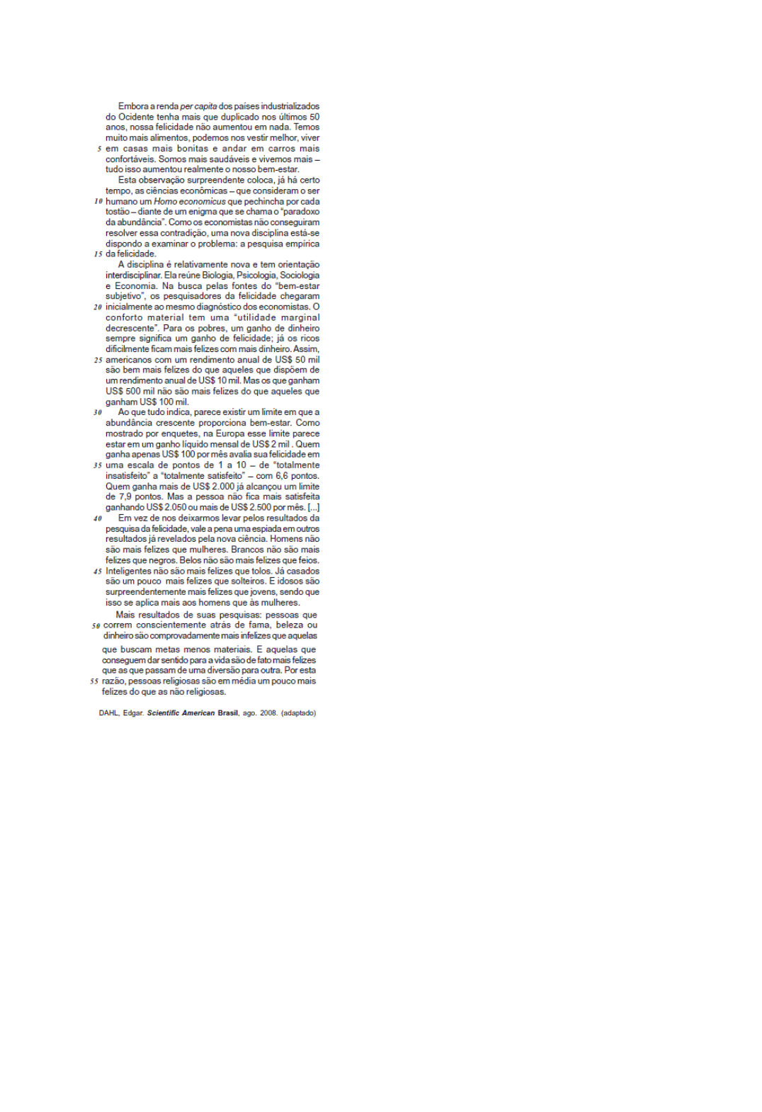 Disciplinas/Assuntos vinculados: Língua Portuguesa > Norma culta ou norma padrão Fonte: Fundação Carlos Chagas - FCC 2011 / Tribunal Regional Eleitoral do Amapá TRE AP - AP / Técnico Judiciário - Área: Administrativa / Questão: 13 26. [Q759507] A expressão destacada em “Em vez de nos deixarmos levar pelos resultados da pesquisa da felicidade,” (l. 40-41) pode ser substituída, alterando o sentido mas sem alterar a estrutura do período, por Disciplinas/Assuntos vinculados: Língua Portuguesa > Conjunções Fonte: Fundação CESGRANRIO - CESGRANRIO 2008 / Petrobras Transporte S.A TRANSPETRO - BR / Engenheiro Júnior - Área Automação / Questão: 6 27. [Q179284] O poema A morte do leiteiro, de Carlos Drummond de Andrade (Antologia poética. Rio de Janeiro: Record, 1987, p. 134-7), foi dividido em vários trechos, nos quais se baseiam os itens de 1 a 25 desta prova. e )Não sei por que ele mereceria minha consideração. a )Se. b )Caso. c )Talvez. d )Entretanto. e )Embora.