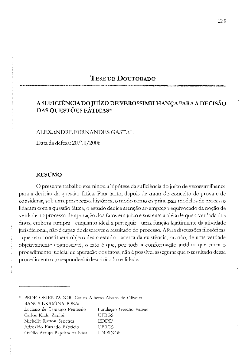229 TEsE DE DouTORADo A SUFICIENCIADO JUIZO DE VEROSSIMILHAN