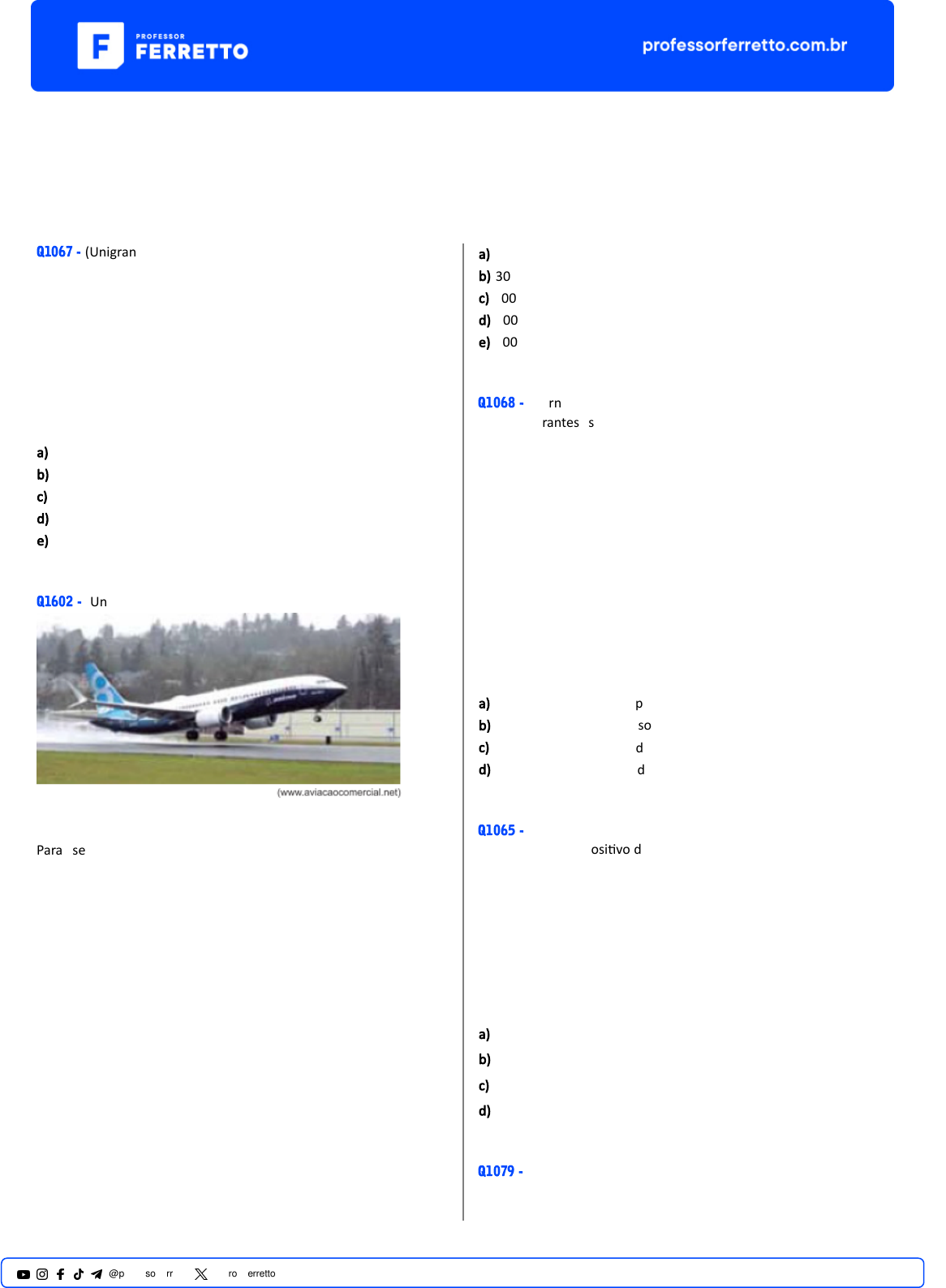 Vestibulares Gases - Química Q1067 - (Unigranrio) Gases ideais são aqueles nos quais as interações entre átomos, íons ou moléculas em suas cons�tuições são desprezadas e esse comportamento se intensifica em pressões baixas. Na descrição desses gases a equação de estado para gases perfeitos é a mais adequada. Considere uma quan�dade de matéria de 2,5 mols de um gás de comportamento ideal que ocupa um volume de 50 L à pressão de 1.246 mmHg. A temperatura desse gás nas condições citadas será de: Dado: R = 62,3 mmHg.L/K.mol a) 400 K b) 127 K c) 273 K d) 200 K e) 254 K Q1602 - (Unesp) Para se calibrar o pneu do carro num posto de serviços, a recomendação é colocar cerca 30 PSI, sigla em inglês para a unidade de pressão “libra-força por polegada quadrada”. Para o pneu de um avião, que é preenchido com nitrogênio puro em vez de ar, a regulagem recomendada é cerca de 200 PSI à temperatura ambiente de 300 K. No entanto, no momento do pouso, essa pressão interna pode aumentar significa�vamente, como consequência do calor gerado pelo impacto e atrito com o solo e pela ação dos freios, com a temperatura podendo a�ngir 1200 K. (www.uol.com.br. Adaptado.) Supondo que o volume do pneu não se altere, a pressão interna de nitrogênio no pneu durante o pouso pode a�ngir o valor de a) 1000 PSI. b) 300 PSI. c) 600 PSI. d) 500 PSI. e) 800 PSI. Q1068 - (Uern) Os refrigerantes são formados por uma mistura de água, gás carbônico e algum �po de xarope, que dá a cor e o gosto da bebida. Mas essas três coisas não são combinadas de uma vez – primeiro, os fabricantes juntam a água e o gás, em um aparelho chamado carbonizador. Quando esses dois ingredientes se misturam, a água dissolve o CO2, dando origem a uma terceira substância, o ácido carbônico, que tem forma líquida. Depois, acrescenta-se o xarope a esse ácido. O úl�mo passo é inserir uma dose extra de CO2 dentro da embalagem para aumentar a pressão interna e conservar a bebida. (Disponível em: h�p://mundoestranho.abril.com.br/materia/como- se-coloca-o-gas-nos-refrigerantes.) Com relação ao gás dos refrigerantes, é correto afirmar que a) diminui, se aumentar a pressão. b) está completamente dissolvido no líquido. c) escapa mais facilmente do refrigerante quente. d) escapa mais facilmente do refrigerante gelado. Q1065 - (Ifrj) O airbag é um disposi�vo de segurança obrigatório em vários países. Em caso de colisão, sensores no automóvel detectam a forte desaceleração. Uma unidade de controle emite uma descarga elétrica que dá início a rápidas transformações que podem ser representadas pela equação de reação a seguir. 6 NaN3 + Fe2O3 3 Na2O + 2 Fe + 9 N2 Iden�fique a substância responsável por inflar o airbag. a) NaN3 b) N2 c) Na2O d) Fe Q1079 - (Ifce) 1@professorferretto @prof_ferretto A nossa atmosfera é composta por diferentes gases, dentre eles O2, CO2 e N2, estes denominados gases reais. Para estudar o comportamento dos gases, primeiramente estudamos os denominados gases ideais, modelos em que as moléculas se movem ao acaso e são tratadas como moléculas de tamanho desprezível, nas quais a força de interação elétrica entre as par�culas é nula. De acordo com o modelo dos gases ideais, quando o número de mols de um gás permanece constante, a Lei dos Gases Ideais é expressa pela equação P . V = n . R . T, onde: P= pressão; V = volume; n = número de mols; R = constante dos gases ideais; T = temperatura em Kelvin. De acordo com esta equação é verdadeiro afirmar-se que a) a pressão de um gás é inversamente proporcional à temperatura absoluta se o volume se man�ver constante. b) a pressão é inversamente proporcional ao volume. Ou seja, ao diminuirmos a pressão de um gás nas condições ideais e com o número de mols constante e temperatura constante, o volume aumenta. c) pressão e volume do gás ideal independem da temperatura do mesmo. d) o número de mols de um gás varia de acordo com a pressão e o volume que este gás apresenta. e) a temperatura de um gás é sempre constante. Q1094 - (Uema) Ao se adquirir um carro novo, é comum encontrar no manual a seguinte recomendação: mantenha os pneus do carro corretamente calibrados de acordo com as indicações do fabricante. Essa recomendação garante a estabilidade do veículo e diminui o consumo de combus�vel. Esses cuidados são necessários porque sempre há uma perda de gases pelos poros da borracha dos pneus (processo chamado difusão). É comum calibrarmos os pneus com gás comprimido ou nas oficinas especializadas com nitrogênio. O gás nitrogênio consegue manter a pressão dos pneus constantes por mais tempo que o ar comprimido (mistura que contém além de gases, vapor da água que se expande e se contrai bastante com a variação de temperatura). Considerando as informações dadas no texto e o conceito de difusão, pode-se afirmar, em relação à massa molar do gás, que a) a do ar comprimido é igual à do gás nitrogênio. b) quanto maior, maior será sua velocidade de difusão. c) quanto menor, maior será sua velocidade de difusão. d) quanto menor, menor será sua velocidade de difusão. e) não há interferência na velocidade de difusão dos gases. Q1085 - (Ueg) Uma massa de 708 g de um alcano foi armazenada em um recipiente de volume igual a 30 L e exerce uma pressão de 10 atm quando a temperatura é igual a 27 ˚C. Dado: R = 0,082 atm . L . mol–1. K–1. De acordo com os dados apresentados, o composto con�do no recipiente é o a) etano b) butano c) metano d) propano Q1066 - (Ifsul) Supondo um comportamento de gás ideal, a opção que indica, aproximadamente, a massa em gramas, de 1,12 L de NH3 nas CNTP é a) 0,85 g. b) 1,50 g. c) 8,50 g. d) 22,4 g. Q1070 - (Ifsp) Um cilindro herme�camente fechado, cuja capacidade é de 2 litros, encerra 5 kg de nitrogênio (N2). Assinale a alterna�va que apresenta o volume con�do neste cilindro ao ser
