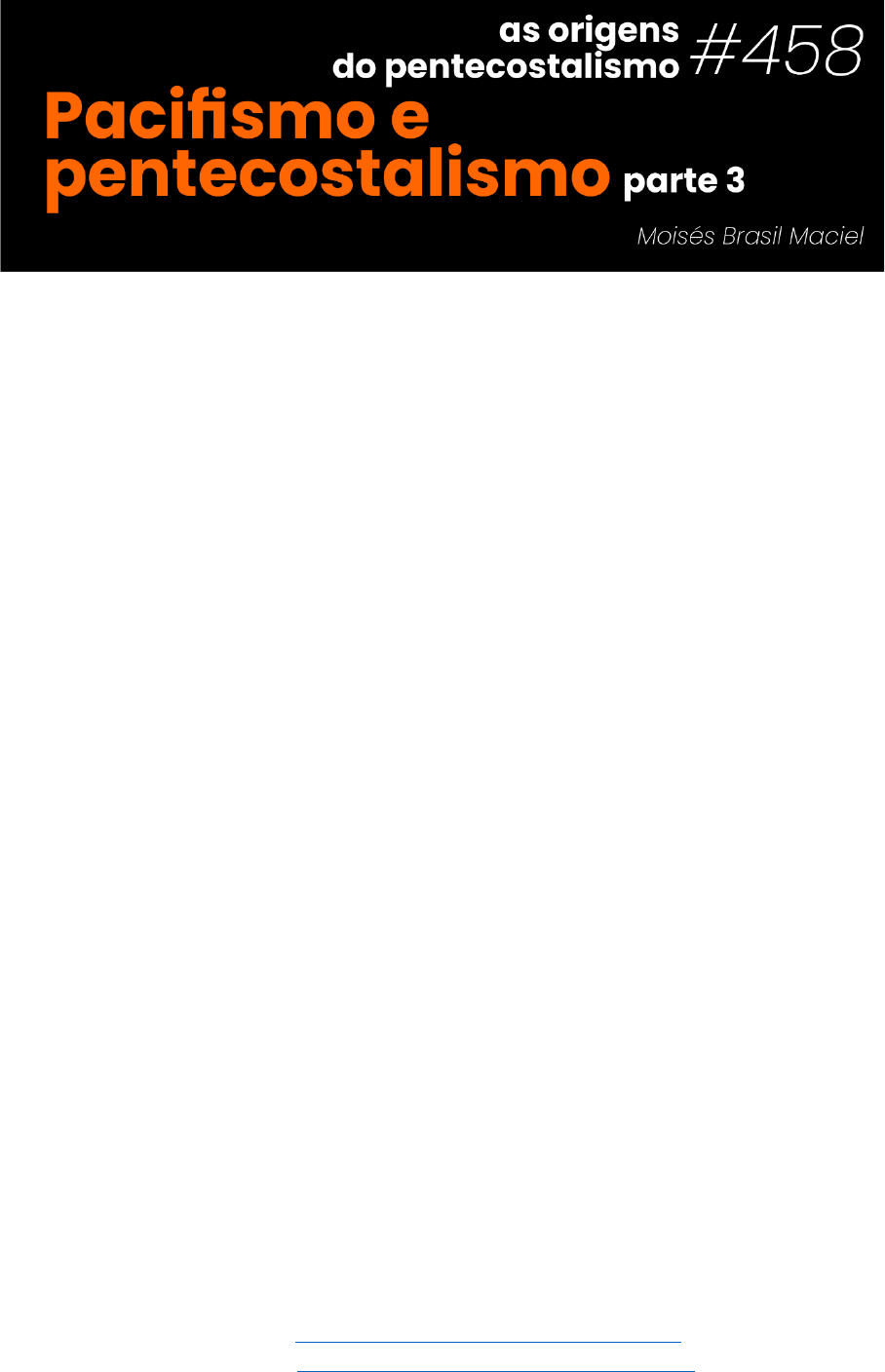 1 Youtube: www.youtube.com/c/moisesbrasilmaciel Instagram: www.instagram.com/moises.brasil.maciel INTRODUÇÃO Embora o pentecostalismo surgiu de forma mais sistematizada a partir do início do século XX com o chamado avivamento Azusa, acontecido em 1906 em Los Angeles, nos Estados Unidos da América, no entanto, houve movimentos anteriores que apresentavam práticas semelhantes ao que ainda é visto atualmente no pentecostalismo. Estes movimentos eram paralelos ao que é denominado de história oficial da igreja cristã, ou seja, enquanto a Igreja Católica Romana, a Igreja Católica Orienta e as denominações advindas da Reforma Protestante seguiam seus caminhos, estes movimentos surgiram de forma marginal, em movimento paralelo destas denominações cristãs. Movimentos como o Monasticismo, Cátaros, Valdenses, alguns Anabatistas, Morávios, Quakers, Pietistas, Metodistas, Holiness e outros mais percorreram um caminhos paralelo a história oficial da igreja cristã, apresentando doutrinas muito semelhantes ao pentecostalismo que surgiria a partir do início do século XX. Além das questões como a negação do batismo infantil, a separação do mundo, o trabalhos dos leigos, o continuísmo, a urgente evangelização e outras mais, estes movimentos se distanciaram completamente das questões igreja e estado (o envolvimento da igreja com a política) e acima de tudo, eram extremamente pacifistas. http://www.youtube.com/c/moisesbrasilmaciel http://www.instagram.com/moises.brasil.maciel 2 Youtube: www.youtube.com/c/moisesbrasilmaciel Instagram: www.instagram.com/moises.brasil.maciel Este pacifismo bíblico percorrerá todos os movimento e pessoas que influenciaram a formação da teologia pentecostal. UMA EXTRANHA VOLTA AO EVANGELHO Uma das características do protestantismo sempre foi o veemente apelo para que o cristianismo voltasse às práticas da igreja do primeiro século. Ou seja, que a igreja retornasse à maneira de viver como viviam os primeiros cristãos nos tempos do Novo Testamento. Contudo, o mesmo protestantismo que insistia no retorno ao Evangelho do Senhor Jesus Cristo passou a distanciar-se do Sermão do Monte pronunciado pelo próprio Senhor Jesus Cristo. Enquanto no Sermão do Monte Jesus afirmou “44Eu, porém, vos digo: Amai a vossos inimigos, bendizei os que vos maldizem, fazei bem aos que vos odeiam e vos perseguem, 45para que sejais filhos do Pai que está nos céus; porque faz que o seu sol se levante sobre os maus e bons e a chuva desça sobre justos e injustos” (Mt 5.44,45 ARC), o protestantismo tratado como oficial a partir da Reforma passou agir de maneira como agia o Catolicismo Romano, perseguindo todos aqueles que discordassem de suas ideias e práticas. Neste sentido, luteranos, calvinistas e anglicanos deixaram o Sermão do Monte de lado, e adotaram práticas violentas para com os movimentos que destoassem teologicamente de suas práticas, ou seja, passaram perseguir movimentos que se desenvolveram a partir dos Cátaros, Valdenses, alguns Anabatistas e dos que surgiriam como os Morávios, Quakers, Pietistas, Metodistas e outros mais. A não tolerância a quem pensava diferente foi uma marca dos reformadores, ou seja, um suposto inimigo da fé era preso, julgado e executado. Esta autoridade concedida às igrejas advindas da Reforma se deu pela aproximação com o estado, http://www.youtube.com/c/moisesbrasilmaciel http://www.instagram.com/moises.brasil.maciel 3 Youtube: www.youtube.com/c/moisesbrasilmaciel Instagram: www.instagram.com/moises.brasil.maciel isto é, a igreja protestante passou ser novamente uma organização político-religiosa. O PACIFISMO NAS ORIGENS PENTECOSTAIS Diante disso, é possível que alguém defenda algumas práticas violentas por parte dos reformadores afirmando que naquele tempo todos agiam assim para com seus inimigos e contrário à sua fé. Sim, todos agiam de forma violenta para com seus inimigos, exceto aqueles que pertenciam a movimentos como Valdenses, alguns Anabatistas, Morávios, Metodistas, Quakers e outros mais que apresentavam um extremo pacifismo. De maneira alguma se amotinavam, se revoltavam, revidavam ou praticavam qualquer forma de violência para com os aqueles que contrariavam sua maneira de crer e viver sua fé. Até mesmo diante das acusações a eles levantadas no tribunais inquisitórios, em semelhança a Jesus, permaneciam em silêncio. No decorrer da história dos mais diversos movimentos cristãos há uma forte ligação entre continuístas e pacifismo. Em outras palavras, os movimentos que ao longo do tempo defendiam a continuidade dos dons espirituais e o batismo com o Espírito Santo, marcas determinantes da teologia pentecostal, discordavam de que a guerra fosse a maneira de resolver os mais diversos conflitos políticos e religiosos. A história demonstra, que ao contrário de envolverem-se em questões políticas, preferiam viver em comunidade, trabalhar e viver de maneira simples as verdades ensinadas pelo Senhor Jesus Cristo. Um exemplo a ser apontado nesta questão é John Wesley. Mesmo expulso dos púlpitos templos anglicanos e severamente perseguido pelos http://www.youtube.com/c/moisesbrasilmaciel http://www.instagram.com/moises.brasil.maciel 4 Youtube: www.youtube.com/c/moisesbrasilmaciel Instagram: www.instagram.com/moises.brasil.maciel reformados, contudo, em momento algum Wesley revidou aos ataques sofridos. Nunca se ouviu dele uma palavra contra o rei, contra a Igreja Anglicana a contra outros protestantes. Um único ponto de vista político manifesto por Wesley era ser abolicionista, ou seja, como uma exceção em seu tempo no meio cristão, John Wesley era contrário à toda forma de escravidão, principalmente alguém ser escravo em virtude da cor de sua pele. Uma marca contundente aos movimentos que influenciaram a construção do pentecostalismo foi o pacifismo. http://www.youtube.com/c/moisesbrasilmaciel http://www.instagram.com/moises.brasil.maciel
