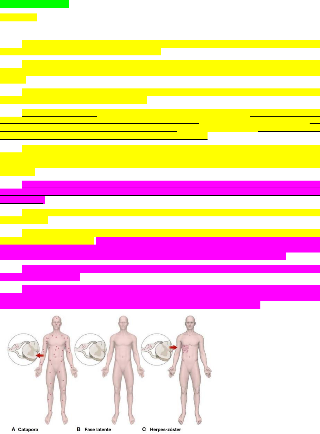 PROBLEMA 10 Isso é COVID na pele? 1- KIT Herpes Zoster ETIOLOGIA Fonte: HERPES ZOSTER VACCINES – THE JOURNAL OF INFECTIOUS DISEASES – 2021 O vírus varicela-zoster (VZV) é um herpes-vírus humano neurotrópico que causa 2 doenças distintas, varicela (varicela) e herpes zoster ([HZ]). A infecção primária pelo VZV resulta em varicela, caracterizada por uma erupção pruriginosa generalizada que progride rapidamente de máculas para pápulas para lesões vesiculares e depois crostas. As lesões são individuais e dispersas, refletindo a disseminação virêmica para a pele. Em crianças saudáveis, a varicela é geralmente leve. Em climas temperados, na ausência de vacinação contra a varicela, a varicela geralmente ocorre na primeira infância, com mais de 90% das crianças infectadas antes da adolescência. Em climas tropicais, a infecção primária por VZV é tardia, ocorrendo comumente em adolescentes e adultos, que apresentam morbidade e mortalidade significativas. Durante a infecção primária, o VZV estabelece latência vitalícia nos gânglios sensoriais e autônomo. O vírus varicela-zoster também estabelece latência em gânglios do sistema nervoso entérico, que podem ser infectados por viremia ou por transporte axonal de neurônios em gânglios sensoriais. A recuperação da varicela está associada à imunidade mediada por células T específicas do VZV (VZV-CMI), que também é essencial para limitar a reativação e replicação do VZV latente e, assim, prevenir o HZ. Os mecanismos pelos quais o VZV se estabelece, mantém e reativa a partir da latência são pouco compreendidos. A reativação da latência e subsequente replicação do VZV resulta em HZ, uma doença localizada do gânglio sensorial, nervo e pele. O herpes zoster se manifesta como dor radicular unilateral e erupção vesicular que geralmente é limitada ao dermátomo inervado por uma única raiz dorsal ou gânglio de nervo craniano.As lesões são agrupadas, refletindo a transmissão intraneural para a pele. O herpes zoster ocorre esporadicamente ao longo do ano sem prevalência sazonal, independente da prevalência de varicela. Não há evidências de que o HZ resulte de infecção exógena pelo VZV, ou seja, que o HZ possa ser adquirido pelo contato com uma pessoa com varicela ou HZ. Em vez disso, a incidência de HZ é determinada por fatores que influenciam a relação vírus-hospedeiro, que mantém a latência do VZV. (A) Durante a infecção primária pelo vírus da varicela-zóster (WVZ) (varicela ou catapora), o vírus infecta os gânglios sensoriais. (B) O VVZ persiste em uma fase latente dentro dos gânglios durante toda a vida do indivíduo (C) Com a diminuição da função imunológica, ocorre reativação do VVZ nos gânglios sensoriais, e o vírus desce pelos nervos sensoriais até a pele, onde se replica. EPIDEMIOLOGIA Fonte: gov.br - MS Não há dados consistentes sobre a incidência de varicela no Brasil, uma vez que somente os casos graves internados e óbitos são de notificação compulsória. No período de 2015 a 2024, foram notificados 335.641 casos de varicela no Brasil. A região Sudeste notificou o maior número com 138.718 (30,9 %) casos, seguido da região Sul com 120.118 (26,8%) casos, enquanto a região Norte registrou o menor número de notificações, com 38.306 (8,5%) casos. Neste período, a média anual de casos notificados foi de 33.564 casos. Em 2015, destaca-se com o maior registro de casos de varicela, com 137.400 (40,9%) casos, e em 2024 o menor número de registros, com 4.624 (1,4%) casos (dados parciais até o mês de junho, sujeitos a revisão). A faixa etária com a maior frequência de casos notificados foi a de 5 a 9 anos com 108.002 (32,2%) casos, seguido pela faixa etária de 1 a 4 anos com 90.505 (27,0%) casos. O menor registro foi observado na população maior que 59 anos com 1.635 (0,5%) casos. Cenário de internações por varicela e herpes-zóster Brasil No período de 2015 a 2024, foram registradas 45.927 internações, que variou de 2.186 a 6.075 por ano no Sistema Único de Saúde (SUS). As regiões com maior número de internações foram: Sudeste e Nordeste com 21.037 (45,8%) e 9.943 (21,6%) internações, respectivamente. A análise das internações por faixa etária demonstra que que os maiores números de internações se concentram na faixa etária de 60 a 69 anos de idade com 5.902 (12,9%) internações, 70 a 79 anos com 5.827 (12,7%) internações e a população dos maiores de 80 anos de idade com 5.805 (12,6%). Embora o maior número absoluto de hospitalizações seja observado entre idosos, grupo em que se espera o maior número de casos da doença, proporcionalmente, os adultos apresentam maior risco de evoluir com complicações, hospitalização e óbito. Com a introdução da vacina tetra viral (sarampo, caxumba, rubéola e varicela) no Calendário Nacional de Vacinação em 2013 para crianças de 15 meses de idade, houve uma redução considerável do número de internações no SUS. Salienta-se que o número de internações notificado por meio do Sistema de Internação Hospitalar (SIH) registra casos de varicela e herpes-zóster juntos, o que impede a análise individual de cada doença. Cenário das internações que evoluíram para óbitos No Brasil, no período de 2014 a 2024, foram registradas 3.035 internações que evoluíram para óbito por varicela/herpes-zóster com ou sem outras complicações, com destaque na faixa etária da população dos maiores de 79 anos com 1.191 (39,2%). Em 2019 foi registrado o maior número de óbitos por varicela/herpes-zóster com 407 (13,4%) enquanto nos anos de 2021 e 2024 foram registrados os menores números de óbitos com 261 (8,6%) e 154 (5,1%) respectivamente. A taxa de letalidade entre os casos hospitalizados variou de 5,2 a 8,8 no período de 2014 a 2024. EPIDEMIOLOGIA DA VARICELA Fonte: Harrison – Medicina Interna Os seres humanos são o único reservatório conhecido