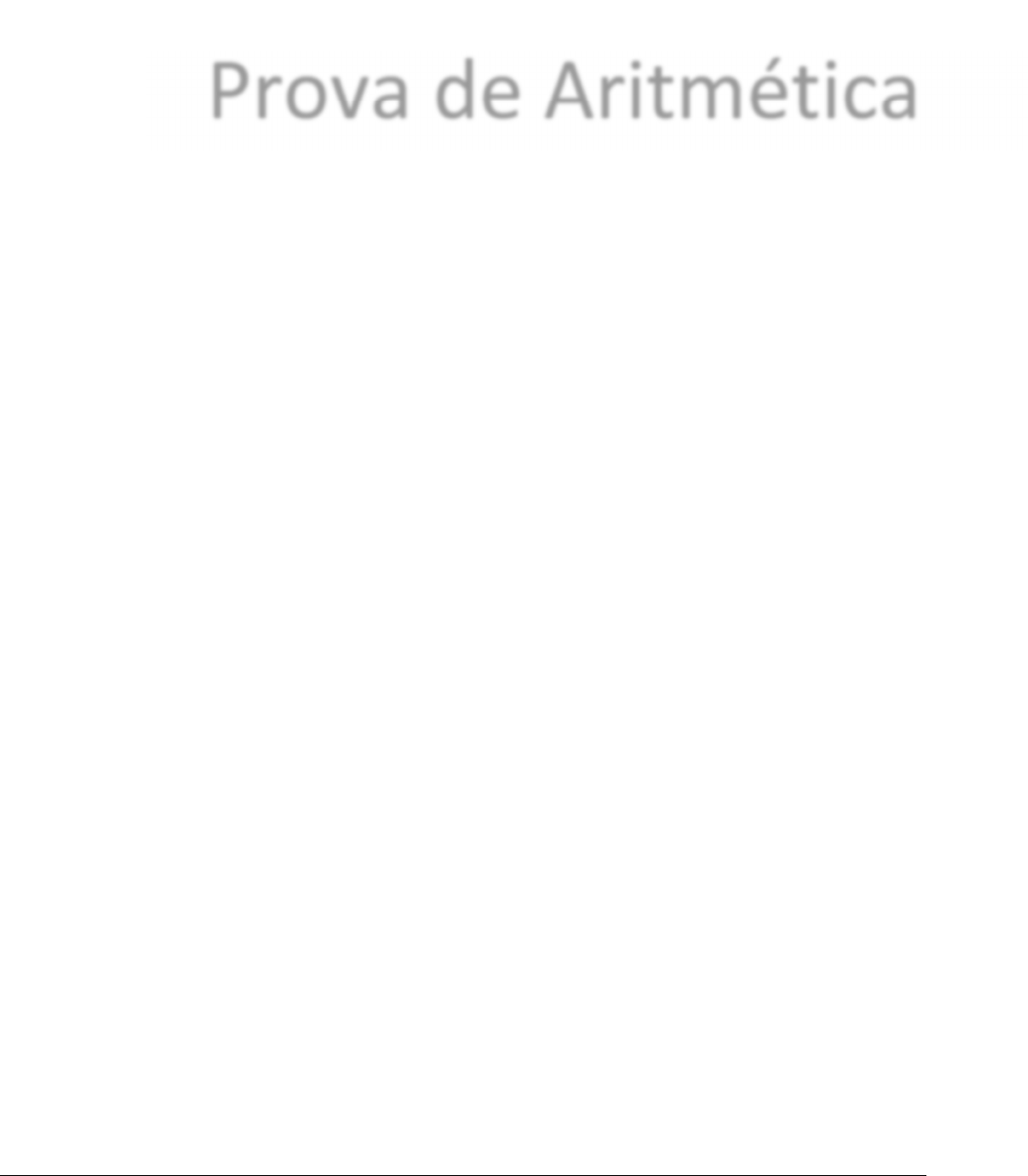 Prova de Aritmética - Caderno de Aplicação - Alessandra Gotuzo Seabra José Maria Montiel Fernando César Capovilla Descrição, instruções (contendo Crivo do aplicador), evidências de validade e fidedignidade e dados normativos em: Seabra, A. G.; Montiel, J. M.; Capovilla, F.C. (2013). Prova de Aritmética. Em: A. G. Seabra, N. M. Dias, & F. C Capovilla (Org.). Avaliação neuropsicológica cognitiva: leitura, escrita e aritmética. Vol. 3. (pp. 98-104). São Paulo: Memnon. Dias, M. N.; Seabra, A. G. (2013). Evidências de validade e fidedignidade da Prova de Aritmética. Em: A. G. Seabra, N. M. Dias, & F. C Capovilla (Org.). Avaliação neuropsicológica cognitiva: leitura, escrita e aritmética. Vol. 3. (pp. 86-92). São Paulo: Memnon. Dias, N. M.; Trevisan, B. T.; Medeiros, N. A.; & Seabra, A. G. (2013). Dados normativos da Prova de Aritmética. Em: A. G. Seabra, N. M. Dias, & F. C Capovilla (Org.). Avaliação neuropsicológica cognitiva: leitura, escrita e aritmética. Vol. 3. (pp. 93- 97). São Paulo: Memnon. Para eficácia ótima da aplicação deste teste, imprima este Caderno de Aplicação da Prova de Aritmética em papel tamanho carta (21,59 cm x 27,94 cm). Licensed to Nathalia Alberto of Nathalia Alberto Rua Joana castellan, 257, 257 São Paulo São Paulo 04455-210. Email address: nathaliaalberto@hotmail.com Nome: ____________________________________________________________________ Série: _________ 1a) Você verá alguns números. Escreva os nomes deles. 8 37 69 152 7.048 1b) Escreva os números que você vai ouvir: Licensed to Nathalia Alberto of Nathalia Alberto Rua Joana castellan, 257, 257 São Paulo São Paulo 04455-210. Email address: nathaliaalberto@hotmail.com 2a) Escreva os números, a partir do número 50, em ordem crescente, de dois em dois números. A sequência já está começada, você deve continuar: 50 - 52 - - - - - 2b) Escreva os números, a partir do 30, em ordem decrescente, de três em três números. A sequência já está começada, você deve continuar: 30 - 27 - - - - - 3) Observe os números abaixo e circule, em cada par, qual é o maior. 8 _____ 2 69 ____ 97 731 _____ 602 136 _____ 100 Licensed to Nathalia Alberto of Nathalia Alberto Rua Joana castellan, 257, 257 São Paulo São Paulo 04455-210. Email address: nathaliaalberto@hotmail.com 4) Nesta página há algumas contas. Você deve resolver as que você souber. 3 7 28 39 + 5 + 4 + 60 + 46 9 12 36 58 - 4 - 7 - 25 - 29 4 30 46 26 x 2 x 3 x 2 x 14 9 3 48 4 42 3 90 15 Licensed to Nathalia Alberto of Nathalia Alberto Rua Joana castellan, 257, 257 São Paulo São Paulo 04455-210. Email address: nathaliaalberto@hotmail.com 5) Você vai ouvir algumas contas. Eu vou falar e você deverá resolver, escrevendo a conta neste papel. 1) 2) 3) 4) 5) 6) 7) 8) 9) 10) 11) 12) 13) 14) 15) 16) Licensed to Nathalia Alberto of Nathalia Alberto Rua Joana castellan, 257, 257 São Paulo São Paulo 04455-210. Email address: nathaliaalberto@hotmail.com 6) Agora serão apresentados quatro problemas por escrito. Você deve lê-los e solucioná-los, escrevendo a resposta correta. 1) João tinha quatro maçãs e ganhou mais oito. Com quantas maçãs João ficou? 2) Maria tinha treze livros mas perdeu dois. Com quantos livros Maria ficou? Licensed to Nathalia Alberto of Nathalia Alberto Rua Joana castellan, 257, 257 São Paulo São Paulo 04455-210. Email address: nathaliaalberto@hotmail.com 3) Na classe existem trinta alunos. Cada aluno tem dois cadernos. Quantos cadernos existem na classe? 4) A professora tinha vinte lápis. Ela dividiu os lápis entre os cinco alunos da sala. Quantos lápis cada aluno ganhou? Licensed to Nathalia Alberto of Nathalia Alberto Rua Joana castellan, 257, 257 São Paulo São Paulo 04455-210. Email address: nathaliaalberto@hotmail.com