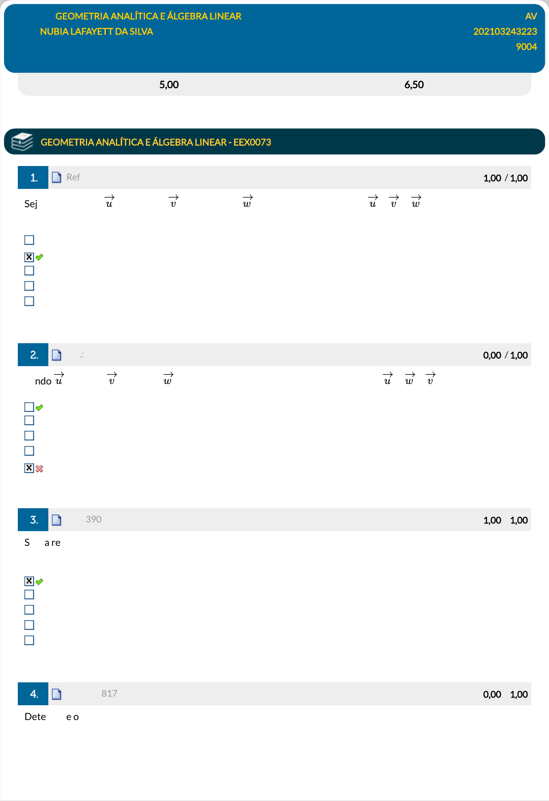 Disciplina: GEOMETRIA ANALÍTICA E ÁLGEBRA LINEAR AV