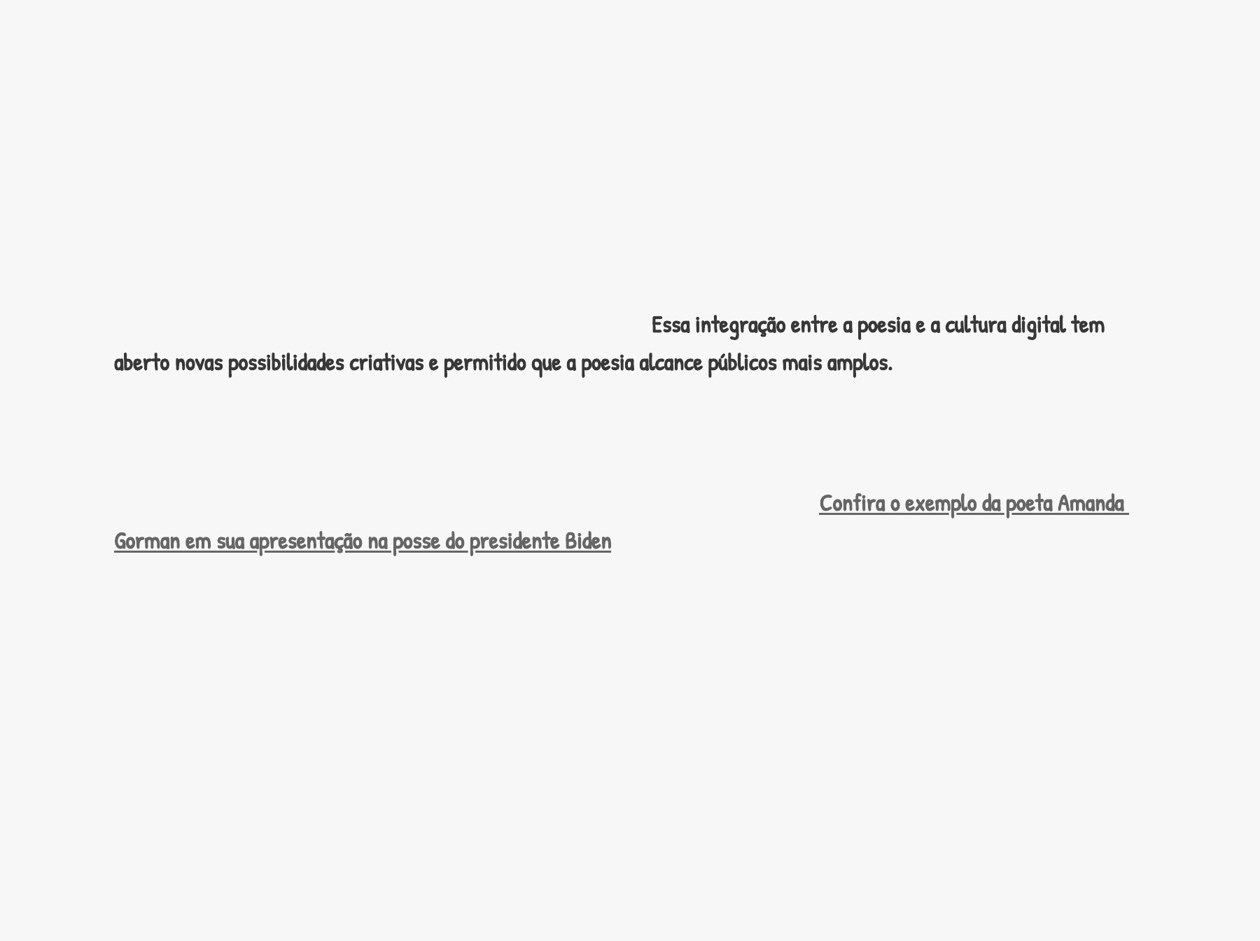 QUAL A Influência da Cultura Pop e das Mídias Digitais na Poesia Americana? A poesia americana contemporânea tem sido profundamente influenciada pela ascensão da cultura pop e das mídias digitais. Cada vez mais, os poetas buscam se conectar com o público moderno, incorporando referências a celebridades, mídia social, tecnologia e outras tendências da cultura popular. Essa integração entre a poesia e a cultura digital tem aberto novas possibilidades criativas e permitido que a poesia alcance públicos mais amplos. Redes sociais como Instagram e TikTok se tornaram plataformas populares para a divulgação de poesia, com poetas compartilhando versos em formatos audiovisuais e interativos. Além disso, a prática da poesia em vídeo tem ganhado espaço, com poetas explorando a conexão entre a palavra escrita e a performance. Confira o exemplo da poeta Amanda Gorman em sua apresentação na posse do presidente Biden. Outro aspecto importante é a forma como a poesia dialoga com a cultura da internet, incorporando linguagem e estética próprias das mídias digitais. Poetas vêm experimentando com estruturas não lineares, fragmentação, elementos hipertextuais e a estética do "feed" de redes sociais. Essas inovações formais refletem a experiência de um público cada vez mais acostumado ao consumo de conteúdo em plataformas online. Ao se aproximar da cultura pop e das mídias digitais, a poesia americana contemporânea tem conquistado novos leitores, especialmente entre as gerações mais jovens. Essa interação frutífera entre a arte da palavra e as linguagens da era digital tem enriquecido e expandido os horizontes da poesia nos Estados Unidos. https://www.youtube.com/watch?v=yP3Eq4eo93o https://www.youtube.com/watch?v=yP3Eq4eo93o Poesia e Identidade: Gênero, Raça e Sexualidade- O QUE PENSAR? A poesia americana tem sido um importante meio de expressão para escritores que buscam explorar suas identidades interseccionais de gênero, raça e sexualidade. Longe de ser um campo homogêneo, a poesia americana contemporânea reflete a riqueza e a diversidade das vozes que a compõem, celebrando a pluralidade de experiências e perspectivas. Vozes Femininas: Poetas como Sylvia Plath, Adrienne Rich e Mary Oliver têm abordado temas como opressão de gênero, maternidade e sexualidade feminina com profundidade e intimidade, dando visibilidade à experiência das mulheres. 1. Poesia Afro-Americana: Escritores como Langston Hughes, Maya Angelou e Gwendolyn Brooks exploraram a intersecção entre raça e identidade, denunciando o racismo e celebrando a herança cultural negra. 2. Expressão LGBTQIA+: Poetas como Audre Lorde, Essex Hemphill e Ocean Vuong têm utilizado a poesia como ferramenta de empoderamento e representatividade, abordando temas como sexualidade, gênero fluido e diversidade afetivo-sexual. 3. Vozes Indígenas: Poetas como Joy Harjo e Leslie Marmon Silko retratam a experiência dos povos nativos americanos, preservando suas tradições e lutando pela preservação de suas terras e culturas. 4. Interseccionalidade: Cada vez mais, a poesia americana tem abordado a complexidade das identidades, explorando a interseção entre gênero, raça, sexualidade, classe social e outras categorias, refletindo a riqueza e a diversidade da sociedade. 5. Ao dar voz a essas narrativas marginalizadas, a poesia americana contemporânea tem desafiado as normas e os cânones estabelecidos, ampliando os horizontes da expressão poética e promovendo uma maior inclusão e representatividade. Essa pluralidade de vozes enriquece o diálogo cultural e fortalece a defesa de uma sociedade mais justa e igualitária.
