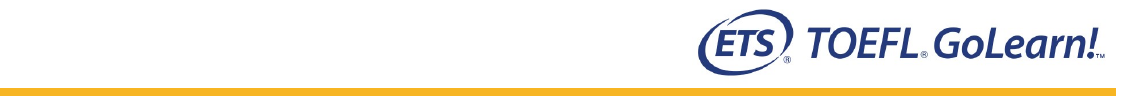 6. Paragraph 4 indicates that some historians admire Roman civilization because of A. the diversity of cultures within Roman society B. its strength C. its innovative nature D. the large body of literature that it developed 7. According to paragraph 4, intellectual Romans such as Horace held which of the following opinions about their civilization? A. Ancient works of Greece held little value in the Roman world. B. The Greek civilization had been surpassed by the Romans. C. Roman civilization produced little that was original or memorable. D. Romans valued certain types of innovations that had been ignored by ancient Greeks. 8. Which of the following statements about leading Roman soldiers and statesmen is supported by paragraphs 5 and 6? A. They could read and write the Greek language. B. They frequently wrote poetry and plays. C. They focused their writing on military matters. D. They wrote according to the philosophical laws of the Greeks. Copyright © 2023 by ETS. All rights reserved. ETS, the ETS logo, TOEFL and TOEFL IBT are registered trademarks of ETS. TOEFL GOLEARN! and the T logo are trademarks of ETS. All other trademarks are property of their respective owners. 9. In the paragraph below, there is a missing sentence. Look at the paragraph and indicate (A, B, C and D) where the following sentence could be added to the passage. They esteem symbols of Roman power, such as the massive Colosseum. Where would the sentence best fit? Modern attitudes to Roman civilization range from the infinitely impressed to the thoroughly disgusted. (A) As always, there are the power worshippers, especially among historians, who are predisposed to admire whatever is strong, who feel more attracted to the might of Rome than to the subtlety of Greece. (B) At the same time, there is a solid body of opinion that dislikes Rome. (C) For many, Rome is at best the imitator and the continuator of Greece on a larger scale. (D) Greek civilization had quality; Rome, mere quantity. Greece was original; Rome, derivative. Greece had style; Rome had money. Greece was the inventor; Rome, the research and development division. Such indeed was the opinion of some of the more intellectual Romans. “Had the Greeks held novelty in such disdain as we,” asked Horace in his Epistles, “what work of ancient date would now exist?” A. Option A B. Option B C. Option C D. Option D Copyright © 2023 by ETS. All rights reserved. ETS, the ETS logo, TOEFL and TOEFL IBT are registered trademarks of ETS. TOEFL GOLEARN! and the T logo are trademarks of ETS. All other trademarks are property of their respective owners. 10. Directions: An introductory sentence for a brief summary of the passage is provided below. Complete the summary by selecting the THREE answer choices that express the most important ideas in the passage. Some sentences do not belong in the summary because they express ideas that are not presented in the passage or are minor ideas in the passage. This question is worth 2 points. Write your answer choices in the spaces where they belong. You can either write the letter of your answer choice or you can copy the sentence. The Roman world drew its strength from several important sources. Answer Choices A. Numerous controls imposed by Roman rulers held its territory together. B. The Roman military was organized differently from older military organizations. C. Romans valued sea power as did the Latins, the original inhabitants of Rome. D. Roman values were rooted in a strong attachment to the land and the stability of rural life. E. Rome combined aspects of ancient Greek civilization with its own contributions in new areas. F. Educated Romans modeled their own literature and philosophy on the ancient Greeks. Copyright © 2023 by ETS. All rights reserved. ETS, the ETS logo, TOEFL and TOEFL IBT are registered trademarks of ETS. TOEFL GOLEARN! and the T logo are trademarks of ETS. All other trademarks are property of their respective owners. Reading Answer Key Examining the Problem of Bycatch 1 C 2 A 3 B 4 D 5 B 6 A 7 C 8 D 9 C 10 A,C,E Ancient Rome and Greece 1 C 2 A 3 A 4 D 5 C 6 B 7 C 8 A 9 B 10 A,D,E Copyright © 2023 by ETS. All rights reserved. ETS, the ETS logo, TOEFL and TOEFL IBT are registered trademarks of ETS. TOEFL GOLEARN! and the T logo are trademarks of ETS. All other trademarks are property of their respective owners. Listening Section Directions In this section, you will be able to demonstrate your ability to understand conversations and lectures in English. Answer the questions based on what is stated or implied by the speakers. In the actual test, the Listening section is divided into two separately timed parts, and you can listen to each conversation and lecture only one time. You must answer each question and you cannot return to previous questions. A clock will indicate how much time is remaining. The clock will count down only while you are answering questions, not while you are listening. For this practice test, a useful guideline is to spend no more than 35 seconds to answer a question. You can review the correct answer for each question by reviewing the answer key at the end of the section. Copyright © 2023 by ETS. All rights reserved. ETS, the ETS logo, TOEFL and TOEFL IBT are registered trademarks of ETS. TOEFL GOLEARN! and the T logo are trademarks of ETS. All other trademarks are property of their respective owners. Listening Practice Set 1 Retirement Party Narrator Listen to a conversation between a student and a professor. Male Student Hi, Professor Mason. Do you have a minute? Female Professor Yes, of course, Eric. I think there was something I wanted to talk to you about, too. Male Student Probably my late essay. Female Professor Ah, that must have been it. I thought maybe I’d lost it… Male Student No, I’m sorry. Actually, it was my computer that lost it, the first draft of it, and... Well anyway, I finally put it in your mailbox yesterday. Female Professor Oh, and I haven’t c