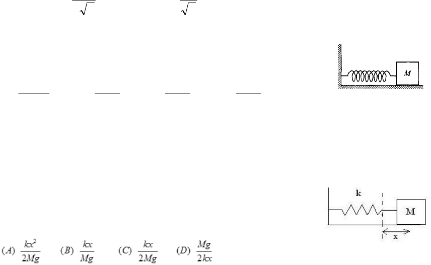 34. A spring-loaded gun can fire a projectile to a height h if it is fired straight up. If the same gun is pointed at an angle of 45° from the vertical, what maximum height can now be reached by the projectile? (A) h/4 (B) h 2 2 (C) h/2 (D) h 2 35. An ideal massless spring is fixed to the wall at one end, as shown. A block of mass M attached to the other end of the spring oscillates with amplitude A on a frictionless, horizontal surface. The maximum speed of the block is vm. The force constant of the spring is (A) A Mgvm 2 (B) A Mvm 2 2 (C) 2 2 A Mvm (D) 2 2 2A Mvm 36. A person pushes a block of mass M = 6.0 kg with a constant speed of 5.0 m/s straight up a flat surface inclined 30.0° above the horizontal. The coefficient of kinetic friction between the block and the surface is μ = 0.40. What is the net force acting on the block? (A) 0 N (B) 21 N (C) 30 N (D) 51 N 37. A block of mass M on a horizontal surface is connected to the end of a massless spring of spring constant k . The block is pulled a distance x from equilibrium and when released from rest, the block moves toward equilibrium. What coefficient of kinetic friction between the surface and the block would allow the block to return to equilibrium and stop? 38. An object is dropped from rest from a certain height. Air resistance is negligible. After falling a distance d, the object’s kinetic energy is proportional to which of the following? (A) 1 / d2 (B) 1 / d (C) √d (D) d 39. An object is projected vertically upward from ground level. It rises to a maximum height H. If air resistance is negligible, which of the following must be true for the object when it is at a height H/2 ? (A) Its speed is half of its initial speed. (B) Its kinetic energy is half of its initial kinetic energy. (C) Its potential energy is half of its initial potential energy. (D) Its total mechanical energy is half of its initial value. 120 AP Physics Free Response Practice – Work Power Energy 1974B1. A pendulum consisting of a small heavy ball of mass m at the end of a string of length L is released from a horizontal position. When the ball is at point P, the string forms an angle of θ with the horizontal as shown. (a) In the space below, draw a force diagram showing all of the forces acting on the ball at P. Identify each force clearly. (b) Determine the speed of the ball at P. (c) Determine the tension in the string when the ball is at P. 1974B7. A ski lift carries skiers along a 600 meter slope inclined at 30°. To lift a single rider, it is necessary to move 70 kg of mass to the top of the lift. Under maximum load conditions, six riders per minute arrive at the top. If 60 percent of the energy supplied by the motor goes to overcoming friction, what average power must the motor supply? θ 121 1975B1. A 2-kilogram block is released from rest at the top of a curved incline in the shape of a quarter of a circle of radius R. The block then slides onto a horizontal plane where it finally comes to rest 8 meters from the beginning of the plane. The curved incline is frictionless, but there is an 8-newton force of friction on the block while it slides horizontally. Assume g = 10 meters per second2. a. Determine the magnitude of the acceleration of the block while it slides along the horizontal plane. b. How much time elapses while the block is sliding horizontally? c. Calculate the radius of the incline in meters. 1975B7. A pendulum consists of a small object of mass m fastened to the end of an inextensible cord of length L. Initially, the pendulum is drawn aside through an angle of 60° with the vertical and held by a horizontal string as shown in the diagram above. This string is burned so that the pendulum is released to swing to and fro. a. In the space below draw a force diagram identifying all of the forces acting on the object while it is held by the string. b. Determine the tension in the cord before the string is burned. c. Show that the cord, strong enough to support the object before the string is burned, is also strong enough to support the object as it passes through the bottom of its swing. 122 1977 B1. A block of mass 4 kilograms, which has an initial speed of 6 meters per second at time t = 0, slides on a horizontal surface. a. Calculate the work W that must be done on the block to bring it to rest. If a constant friction force of magnitude 8 newtons is exerted on the block by the surface, determine the following: b. The speed v of the block as a function of the time t. c. The distance x that the block slides as it comes to rest 1978B1. A 0.5 kilogram object rotates freely in a vertical circle at the end of a string of length 2 meters as shown above. As the object passes through point P at the top of the circular path, the tension in the string is 20 newtons. Assume g = 10 meters per second squared. (a) On the following diagram of the object, draw and clearly label all significant forces on the object when it is at the point P. (b) Calculate the speed of the object at point P. (c) Calculate the increase in kinetic energy of the object as it moves from point P to point Q. (d) Calculate the tension in the string as the object passes through point Q. 123 1979B1. From the top of a cliff 80 meters high, a ball of mass 0.4 kilogram is launched horizontally with a velocity of 30 meters per second at time t = 0 as shown above. The potential energy of the ball is zero at the bottom of the cliff. Use g = 10 meters per second squared. a. Calculate the potential, kinetic, and total energies of the ball at time t = 0. b. On the axes below, sketch and label graphs of the potential, kinetic, and total energies of the ball as functions of the distance fallen from the top of the cliff c. On the axes below sketch and label the kinetic and potential energies of the ball as functions of time until the ball hits Top of cliff Bottom of cliff Distance Fallen (m) 124 1981B1. A 10-kilogram block is pushed along a rough horizontal surface by a constant horizontal
