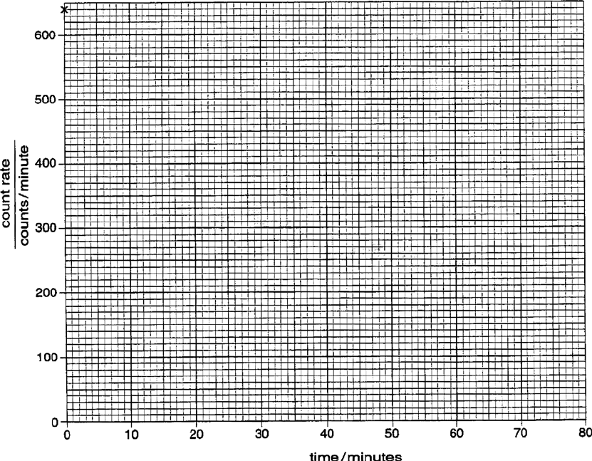 96 v1 4Y11 Cambridge IGCSE Physics – past paper questions and answers Core 3 This question deals with the decay of a radioactive source. The radioactive source has a count rate of 640 counts / minute at the start of an experiment. This value has been plotted on Fig. 1 Fig. 1 The source has a half-life of 20 minutes. (a) (i) What would you expect the count rate to be after 20 minutes? ................................ counts / minute (ii) Plot this value on the graph. [2] (b) (i) What would you expect the count rate to be after a further 20 minutes (i.e. 40 minutes after the start of the experiment)? ................................ counts / minute (ii) Plot this value on the graph. [2] (c) Plot two further points which might be expected if the decay curve were perfect. [1] (d) Draw a smooth curve through all five points on your graph. [1] 97 v1 4Y11 Cambridge IGCSE Physics – past paper questions and answers Core 3 (e) If this perfect decay continued, how long would it take from the beginning of the experiment for the count rate to decrease to zero? Tick one answer. 90 minutes 100 minutes 120 minutes a very long time an infinite time [1] (f) In a real experiment, the values found for the count rates might not all lie exactly on a smooth curve. One reason for this might be experimental error. State one other reason. .......................................................................................................................................... [1] 98 v1 4Y11 Cambridge IGCSE Physics – past paper questions and answers EXTENSION questions Extension 1 (a) A radioactive source contains an isotope of thorium. Thorium ( Th228 90 ) decays by α-particle emission to radium (Ra). Write an equation to show this decay. [2] (b) The radium produced is also radioactive. Fig. 2 shows a laboratory experiment to test for the presence of the radioactive emissions from the thorium source, using a radiation detector. In the laboratory there is a background count of 20 counts / minute. Fig. 2 The readings are given in the table. position reading in counts / minute P 2372 Q 361 State and explain (i) which radiation could be causing the count at a, ...................................................................................................................................... ...................................................................................................................................... ...................................................................................................................................... (ii) which radiations could be causing the count at P. ...................................................................................................................................... ...................................................................................................................................... ...................................................................................................................................... [4] 99 v1 4Y11 Cambridge IGCSE Physics – past paper questions and answers Extension 1 (c) All three types of radioactive emission cause some ionisation of gases. (i) Explain what is meant by the term ionisation of gases. ...................................................................................................................................... ...................................................................................................................................... ...................................................................................................................................... (ii) Suggest a reason why γ-radiation produces very little ionisation. ...................................................................................................................................... ...................................................................................................................................... ...................................................................................................................................... [3] 100 v1 4Y11 Cambridge IGCSE Physics – past paper questions and answers Extension 2 (a) A nuclide, symbol XA Z , decays by β-particle emission to a nuclide, symbol Y. A β-particle has the symbol e0 1- . Write an equation for this decay. [2] (b) Fig. 3 shows how a β-particle source may be used to measure the thickness of paper as it is being produced. Fig. 3 (i) Explain why the reading of the detector changes with the thickness of the paper. ...................................................................................................................................... ...................................................................................................................................... ...................................................................................................................................... (ii) Write down two reasons why β-particles are more useful than γ -rays for this purpose. reason 1. ...................................................................................................................... ...................................................................................................................................... ...................................................................................................................................... reason 2. ...................................................................................................................... ...................................................................................................................................... .................................................................................................................................. [4] 101 v1 4Y11 Cambridge IGCSE Physics – past paper questions and answers Extension 2 (c) Fig. 4 shows a be