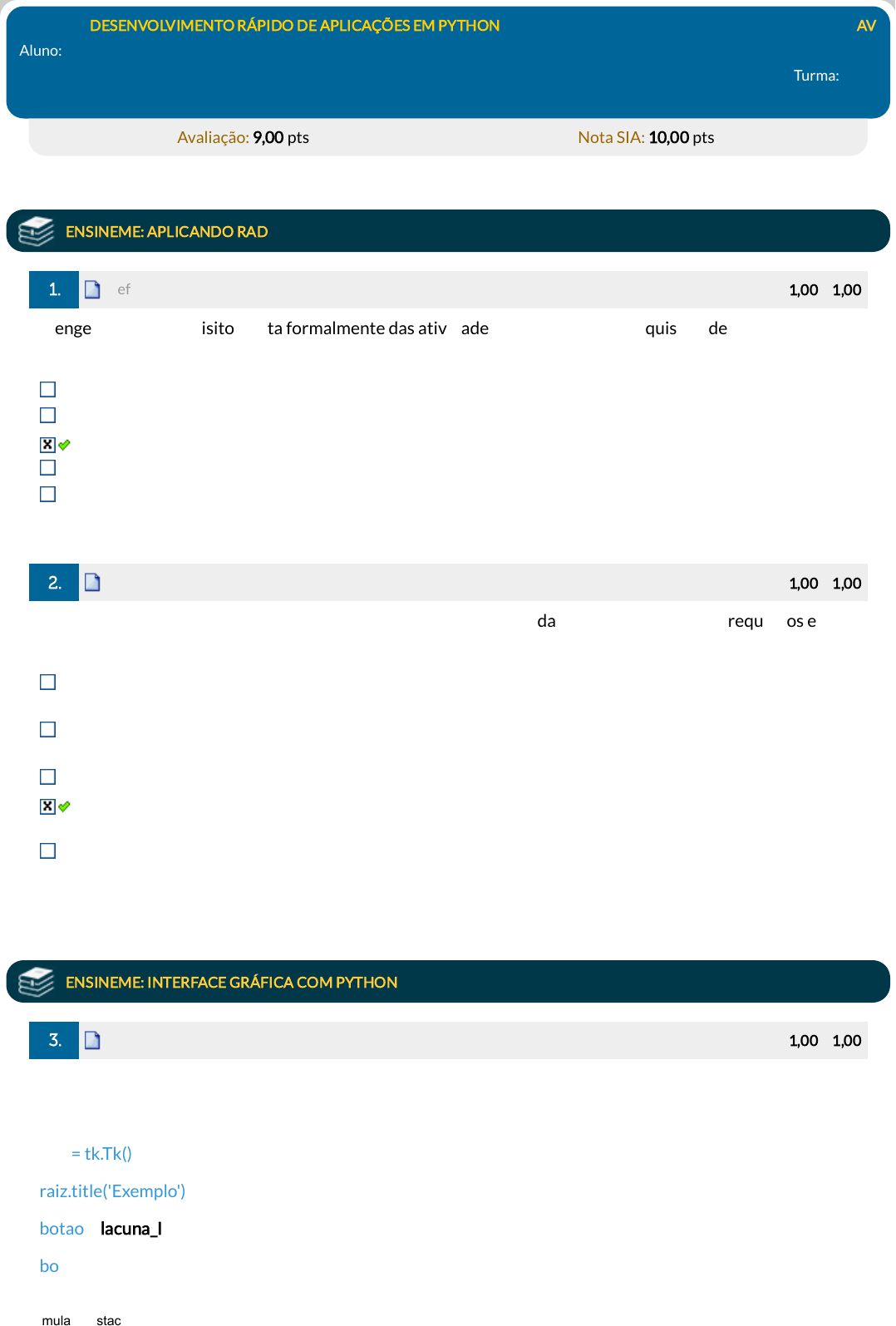 Disciplina: DESENVOLVIMENTO RÁPIDO DE APLICAÇÕES EM PYTHON AV