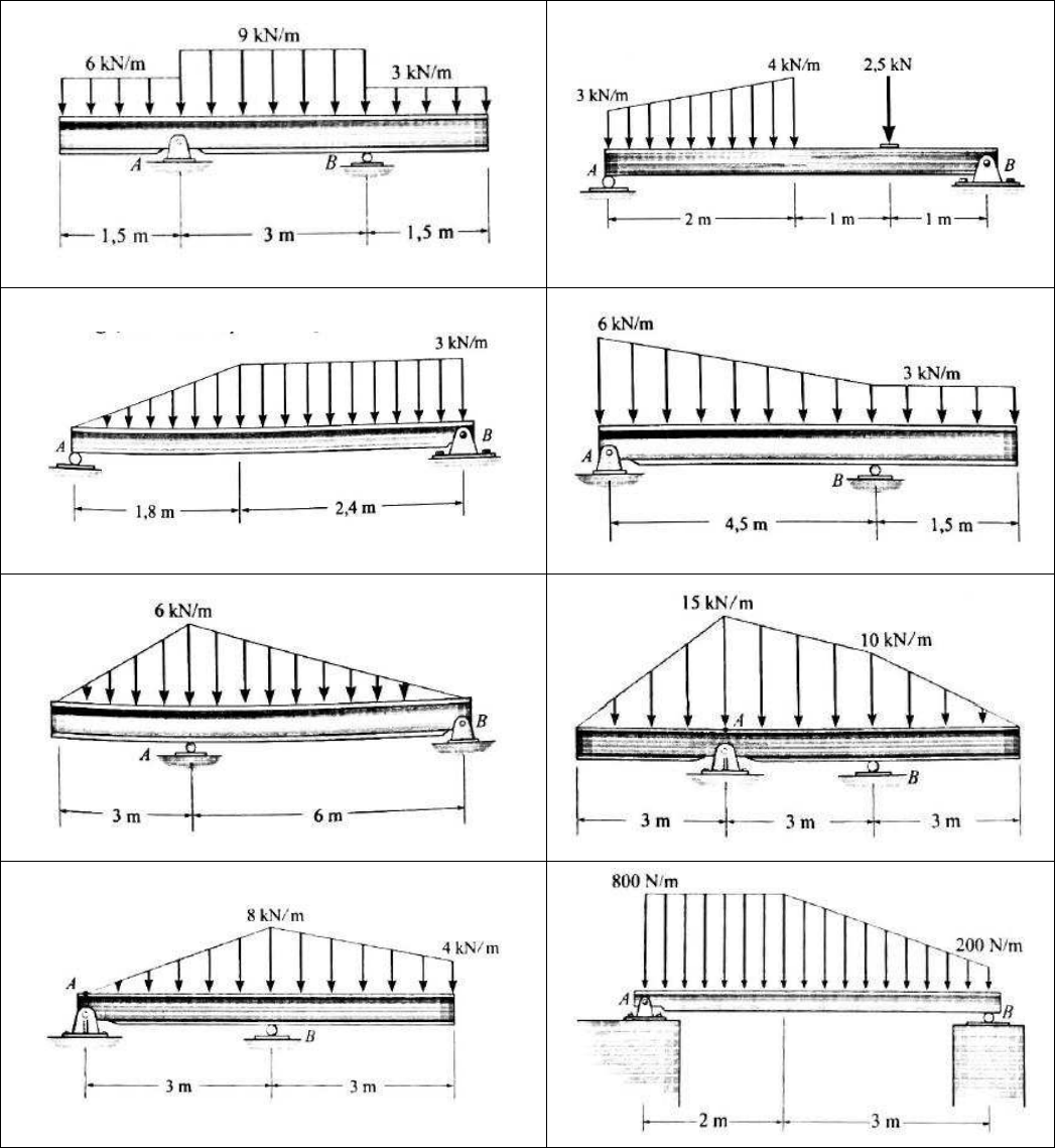 Lista 01 – Distribuição de carga 1 – Determine a força resultante do carregamento, a posição que ela é aplicada a partir da esquerda e as reações de apoio.