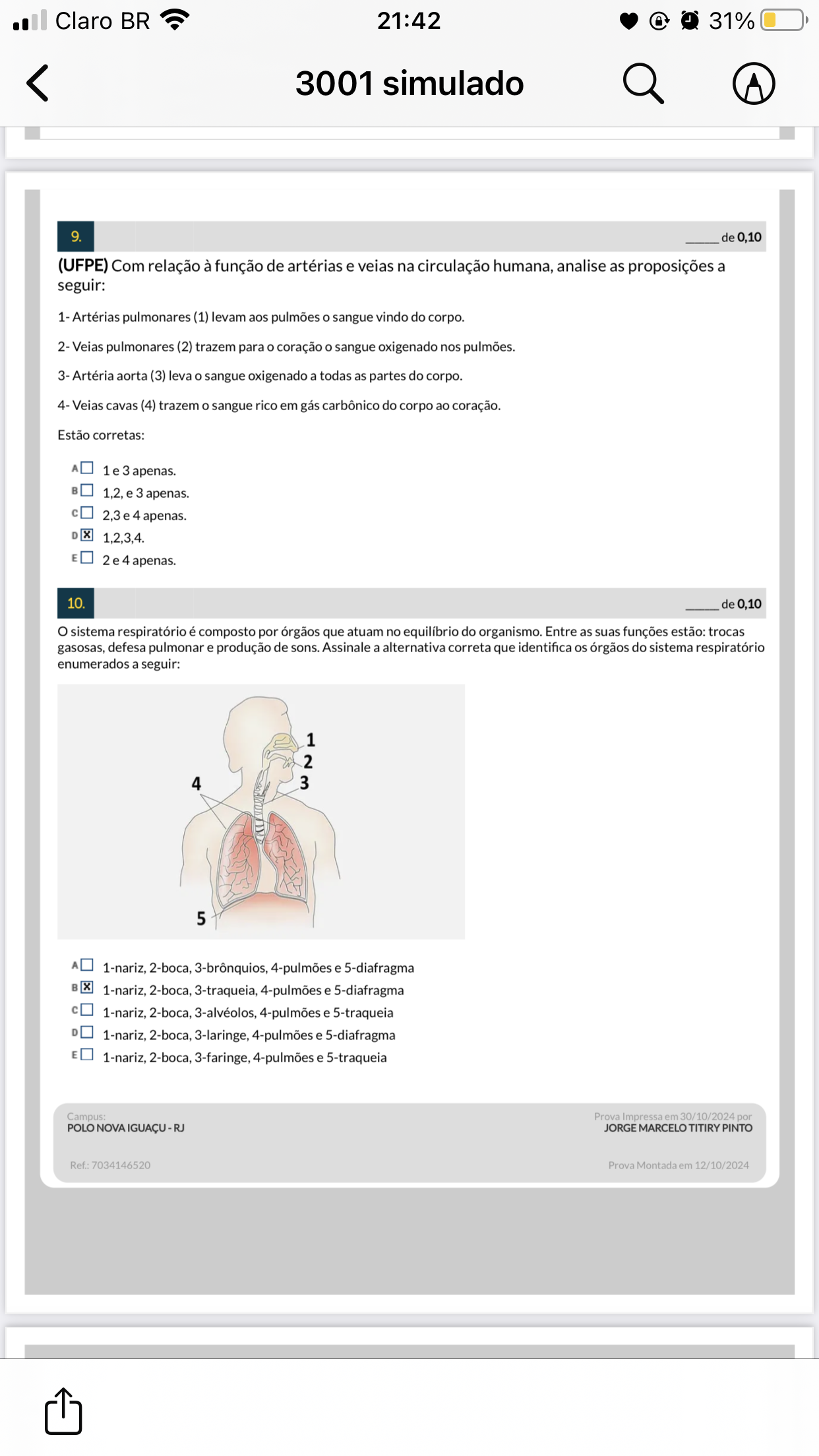 Questão 3: Para formar a respiração, a função dos músculos é essencial tanto na inspiração quant expiração. Esses músculos são, respectivamente: A)...