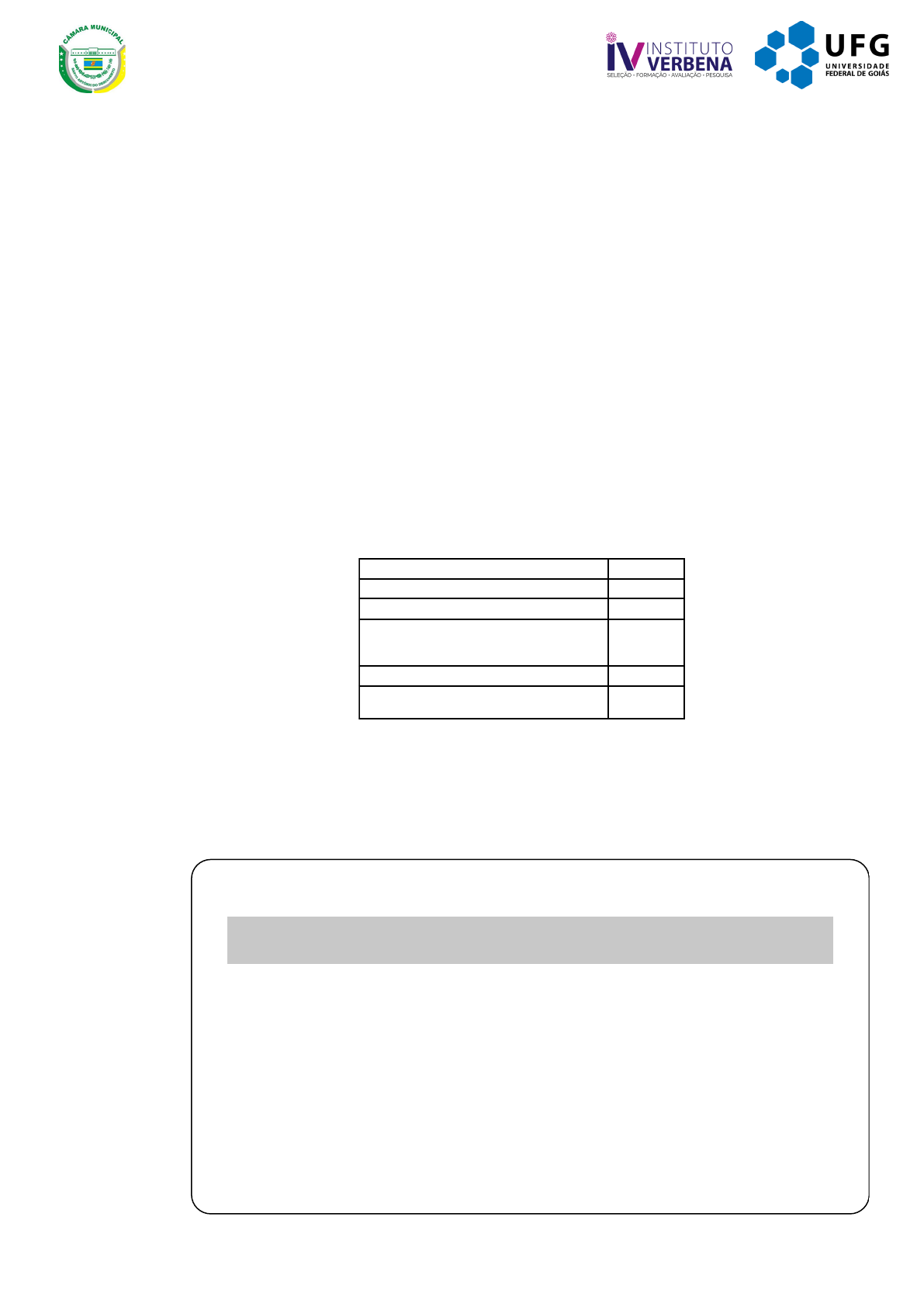 Concurso Público para provimento dos cargos efetivos da Câmara Municipal de