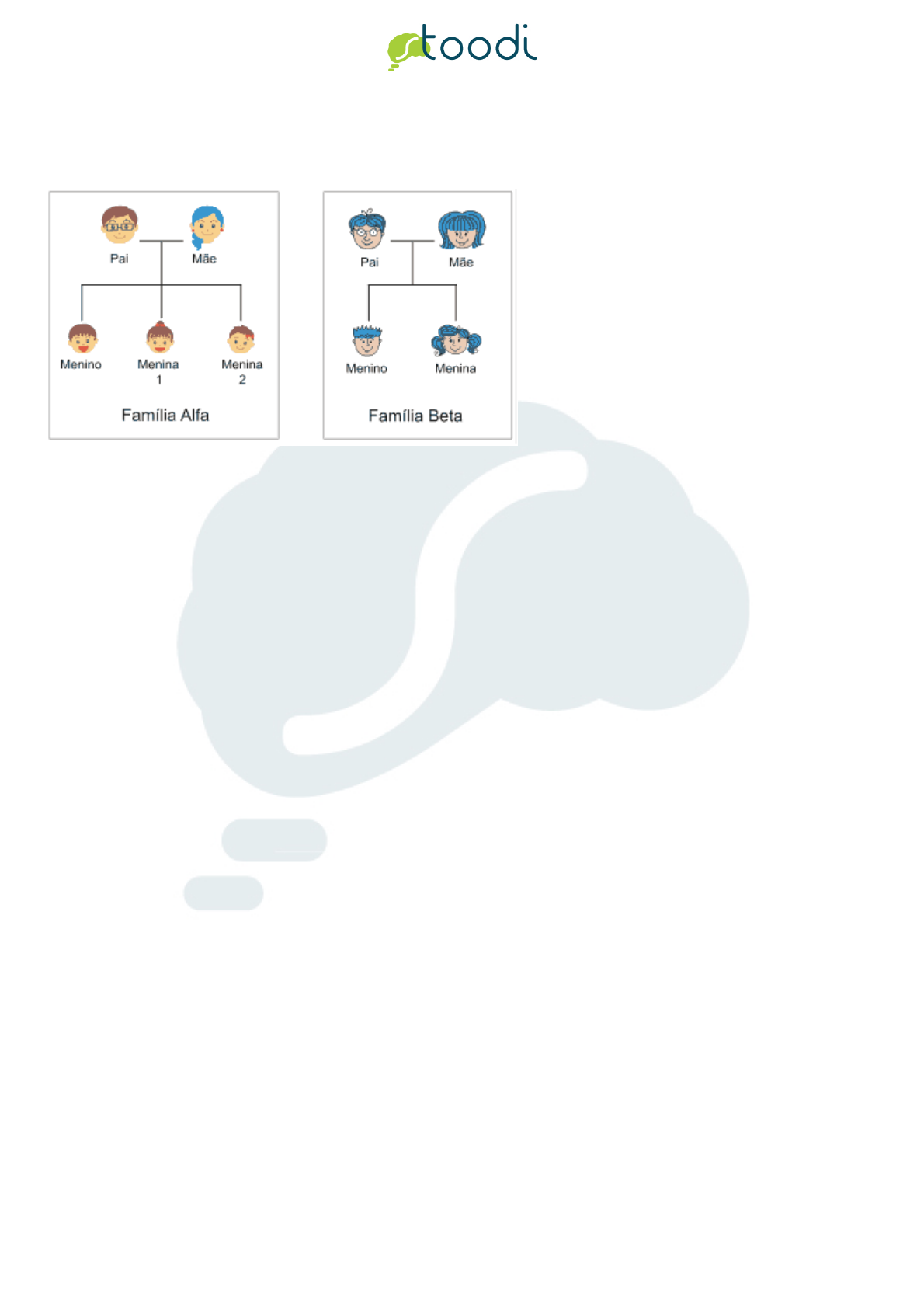 <p>Página 1</p><p>Copyright (c) 2013 - 2018 Stoodi Ensino e Treinamento a Distância LTDA - EPP - Todos os direitos reservados</p><p>1. UERJ 2014</p><p>Analisando-se a genealogia das famílias Alfa e Beta, observa-se que na família Alfa apenas a mãe tem cabelos azuis, enquanto na</p><p>família Beta todos têm cabelos dessa cor.</p><p>Admita que a característica cabelo azul siga os princípios descritos por Mendel para transmissão dos genes.</p><p>Com base nas genealogias apresentadas, a herança genética para cor azul do cabelo é classificada como:</p><p>a. holândrica</p><p>b. pleiotrópica</p><p>c. mitocondrial</p><p>d. autossômica</p><p>2. UNISC 2015</p><p>No albinismo tirosinase-negativo não há produção da enzima tirosinase, participante de etapas do metabolismo que transforma o</p><p>aminoácido tirosina em melanina. O lócus do gene que codifica esta enzima localiza-se no cromossomo 11 e pode conter o alelo</p><p>normal ou o recessivo Um casal normal que possui quatro filhos todos normais deseja ter um novo filho. Sabendo-se que a herança</p><p>desta característica é autossômica recessiva e que o avô paterno e a avó materna das crianças eram albinos, qual será a</p><p>probabilidade do bebê vir a ser albino?</p><p>a. 0%</p><p>b. 25%</p><p>c. 50%</p><p>d. 75%</p><p>e. 100%</p><p>3. UECE 2015</p><p>O cruzamento entre uma planta de ervilha rugosa (rr) com uma planta de ervilha lisa (RR) tem como descendente em F1</p><p>a. apenas plantas lisas.</p><p>b. mais plantas rugosas do que plantas lisas.</p><p>c. 50% de plantas lisas e 50% de plantas rugosas.</p><p>d. apenas plantas rugosas.</p><p>Página 2</p><p>Copyright (c) 2013 - 2018 Stoodi Ensino e Treinamento a Distância LTDA - EPP - Todos os direitos reservados</p><p>4. UERJ 2016</p><p>Em algumas raças de gado bovino, o cruzamento de indivíduos de pelagem totalmente vermelha com outros de pelagem totalmente</p><p>branca produz sempre indivíduos malhados, com pelagem de manchas vermelhas e brancas.</p><p>Admita um grupo de indivíduos malhados, cruzados apenas entre si, que gerou uma prole de indivíduos de coloração totalmente</p><p>vermelha, indivíduos com pelagem malhada e indivíduos com coloração inteiramente branca.</p><p>O resultado desse cruzamento é exemplo do seguinte fenômeno genético:uer</p><p>a. epistasia</p><p>b. pleiotropia</p><p>c. dominância</p><p>d. codominância</p><p>5. UFPR 2015</p><p>A narcolepsia é um distúrbio de sono que acomete a espécie humana e outros animais. Com o objetivo de investigar a causa da</p><p>doença, pesquisadores da Universidade de Stanford (EUA) introduziram cães narcolépticos em sua colônia de animais saudáveis e</p><p>realizaram cruzamentos, alguns deles representados no heredograma abaixo. Os animais 1, 2, 4 e 11 são os animais narcolépticos</p><p>introduzidos na colônia. Após anos de pesquisa concluíram que nos cães a transmissão da narcolepsia é resultante da ação de um</p><p>par de alelos.</p><p>A partir dessas informações, responda:</p><p>Qual é a probabilidade de um filhote do casal formado pelos animais 13 e 16 nascer com narcolepsia?</p><p>a. 0%</p><p>b. 25%</p><p>c. 50%</p><p>d. 75%</p><p>e. 100%</p><p>6. MACKENZIE 1997</p><p>Do cruzamento entre aves andaluzas de coloração azulada, nasceram 15 filhotes azulados, 7 brancos e 8 pretos. Trata-se de um</p><p>caso de _____________ e os indivíduos parentais são _______________. O preenchimento correto das lacunas é, respectivamente:</p><p>a. herança quantitativa e homozigotos dominantes.</p><p>Página 3</p><p>Copyright (c) 2013 - 2018 Stoodi Ensino e Treinamento a Distância LTDA - EPP - Todos os direitos reservados</p><p>b. codominância e heterozigotos.</p><p>c. linkage e heterozigotos.</p><p>d. herança ligada ao sexo e homozigotos recessivos</p><p>e. epistasia e homozigotos dominantes.</p><p>7. FGV 2006</p><p>Na genética, uma expressão bastante conhecida diz que fenótipo é o genótipo mais o ambiente. Essa expressão significa que</p><p>a. o ambiente altera o genótipo do indivíduo, visando à sua adaptação.</p><p>b. o genótipo do indivíduo é o resultado da ação do ambiente sobre seu fenótipo.</p><p>c. o fenótipo do indivíduo é o resultado da expressão de seu genótipo em um dado ambiente.</p><p>d. o genótipo do indivíduo pode variar como resultado da expressão de seu fenótipo em diferentes ambientes.</p><p>e. o fenótipo do indivíduo é invariável e resulta da expressão de seu genótipo, em qualquer que seja o ambiente.</p><p>8. IMED 2015</p><p>Sabe-se que determinada doença hereditária que afeta humanos é causada por uma mutação de caráter dominante em um gene</p><p>localizado em um cromossomo autossomo. Três indivíduos foram investigados e abaixo estão os alelos encontrados para este locus:</p><p>Indivíduo Alelos encontrados para o lócus Fenótipo</p><p>1 Alelo 1 e Alelo 1 Normal</p><p>2 Alelo 2 e Alelo 2 Afetado</p><p>3 Alelo 1 e Alelo 2 Afetado</p><p>Sabendo dessas informações, assinale a alternativa correta:</p><p>a. O alelo 1 é dominante sobre o alelo 2</p><p>b. O alelo 2 é dominante sobre o alelo 1</p><p>c. Os dois alelos são codominantes.</p><p>d. Os indivíduos 2 e 3 são heterozigotos.</p><p>e. O indivíduo 3 é homozigoto.</p><p>9. UECE 2015</p><p>A probabilidade de heterozigotos a partir de um cruzamento entre indivíduos heterozigotos é de</p><p>a. 100%</p><p>b. 50%</p><p>c. 25%</p><p>d. 75%</p><p>10. UNICAMP 2016</p><p>Página 4</p><p>Copyright (c) 2013 - 2018 Stoodi Ensino e Treinamento a Distância LTDA - EPP - Todos os direitos reservados</p><p>A cidade de Monte Santo, na Bahia, que entrou para a história por ter sido acampamento para as tropas do governo que lutaram na</p><p>guerra de Canudos, tem sido palco de outras batalhas: a identificação, o tratamento e a prevenção de doenças raras como</p><p>hipotireoidismo congênito, fenilcetonúria, osteogênese imperfeita, síndrome de Treacher Collins e mucopolissaca