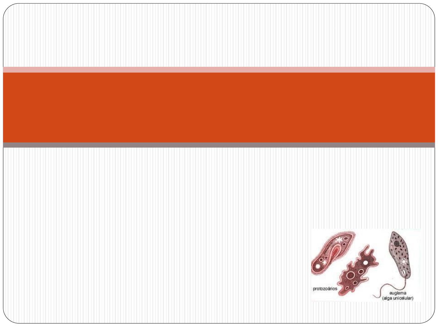 Universidade Federal do Maranhão Disciplina: Microbiologia Geral Protozoários e Algas Professora: Dra. Virlane Kelly Lima Hunaldo Protozoários Unicelulares ou pluricelulares, Maioria heterotróficos, Mas com formas autotróficas Vida livre ou parasita Mobilidade especializada sendo este o principal critério utilizado para definir sua classificação na taxonomia. Protozoários O Reino Protista agrupa organismos eucariontes, unicelulares, autótrofos e heterótrofos. Algas inferiores: euglenófitas, pirrófitas (dinoflagelados) crisófitas (diatomáceas), que são Protistas autótrofos (fotossintetizantes). Os protozoários são Protistas heterótrofos. Algas Protozoários Aquáticos (doce, salgada ou salobrada). Alguns são parasitas de animais, causando diversas doenças inclusive ao homem, como a malária e a doença de Chagas. Os protozoários de vida livre (juntamente com bactérias e fungos) desempenham importante papel na reciclagem de matéria orgânica na natureza, pois se nutrem principalmente de restos de animais e vegetais. Reino é constituído por cerca de 50.000 espécies conhecidas, das quais 50% são fósseis e o restante ainda vive hoje; 25.000 são de vida livre, 10.000 espécies são parasitos dos mais variados animais. Cerca de 30 espécies atingem o homem. Protozoários Nutrição Quanto ao tipo de alimentação, os protozoários podem ser: Autotróficos: conseguem sintetizar energia a partir da luz solar (fotossíntese); Heterotróficos: partículas orgânicas, Saprozóicos: "absorvem", substâncias inorgânicas, já decompostas e dissolvidas em meio líquido; Mixotróficos: quando são capazes de se alimentar por mais de um dos métodos acima descritos. Protozoários Respiração Podemos encontrar dois tipos fundamentais: aeróbicos: são os protozoários que vivem em meio rico em oxigênio; anaeróbicos: quando vivem em ambientes pobres em oxigênio. As células dos protozoários executam as mesmas funções vitais que as das células animais (locomoção, digestão, excreção, respiração e reprodução) Protozoários Locomoção A movimentação dos protozoários é feita com auxílio de uma ou associação de duas ou mais das organelas abaixo: Pseudópodes: são expansões citoplasmáticas transitórias que a célula emite para se locomover e capturar alimentos. Flagelos: são prolongamentos da cutícula formando filamentos longos. São dotados de movimentos ondulatórios e serpenteados, permitindo o deslocamento da célula e a captura de alimento. Cílios: tem as mesmas estruturas do flagelos, diferindo por serem menores e aparentemente em grande número, movimentando-se em conjunto. Seu batimento produzem uma corrente que facilita a captura de alimentos e locomoção. Protozoários Estrutura Podem ter membrana plasmática simples ou mais resistentes (quitina e calcário); No citoplasma: Existem as mesmas organelas das células animais; Vacúolos; Um ou mais núcleos; Estruturas especializadas (cílios e flagelos); Se locomovem por pseudópodes e pelo batimento de cílios e flagelos. Reprodução Assexuada Cissiparidade ou divisão simples Esporulação, divisão múltipla ou esquizogonia Sexuada - Conjugação Forma de resistência - Cistos Protozoários Divisão binária Divisão múltipla Protozoários Trocas gasosas O2 CO2 Difusão Simples O2 CO2 Heterótrofos – digestão intracelular Pinocitose (“beber”) ou Fagocitose (“comer”) Nutrição Protozoários Pinocitose Fagocitose Partículas líquidas Partículas sólidas Pinocitose Fagocitose pseudópodes Invaginação da membrana Evaginação da membrana Vacúolo alimentar ou fagossomo lisossomo Vacúolo digestivo ou lisossomo secundário Vacúolo residual Clasmocitose ou exocitose ? Quissiqui ? ? ? ? ? Vacúolo Pulsátil (Contrátil) presente em espécies de água doce. Função: equilíbrio osmótico e excreção hipotônico hipertônico