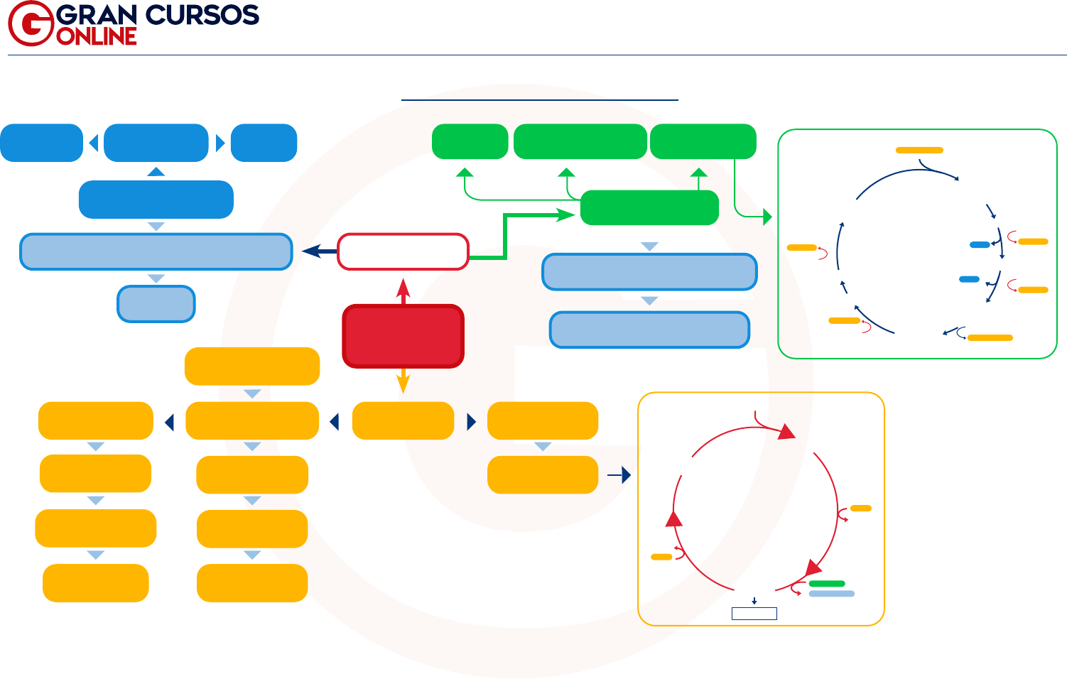 1 de 1www.grancursosonline.com. Douglas Rodrigues Cavalcanti BIOLOGIA MAPA MENTAL Fotossíntese Etapa Química Ciclo de Calvin Dependente de Luz Fotossistema IClorofila P680 Etapa FotoquímicaFotossistema II Clorofila P700Fotólise da água Ciclo de CalvinATP e NADPH Fermentação Glicólise Respiração Anaeróbica Não utiliza oxigênio como aceptor final de H+ Oxigênio como aceptor final de H+ Glicólise Glicólise + 02 = C02+Água+ATP Alcoólica Lática Cadeia Respiratória Metabolismo Energético Ciclo de Calvin 12 3-PGA RuBisCo 6 CO2 6 RuBP 12 PGAL 1 Glicose ATP ADP NADPH NADP++H+ ATP ADP Ciclo de Krebs Citrato (6 carbonos)Oxaloacetato (4 carbonos) Isocitrato Succinato Fumarato Malato α - Cetoglutarato Succinil-CoA (4 Carbonos) Acetil-CoA GTP (ATP) CO2 CO2 NADH NAD NADH NAD NADH NAD FADH2 FAD Respiração Aeróbica Respiração Celular Ciclo de Krebs Livro Eletrônico https://www.grancursosonline.com.br https://www.grancursosonline.com.br