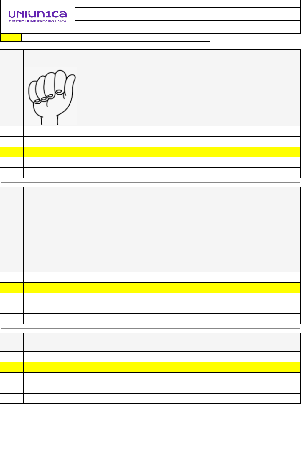 30/10/2024 21:58:00 1/4 REVISÃO DE SIMULADO Nome: NAYARA TATIANA DA SILVA CRUZ Disciplina: Libras: Aspectos da Estrutura Gramatical Respostas corretas são marcadas em amarelo X Respostas marcardas por você. Questão 001 Assinale a alternativa que apresenta sinais realizados com a seguinte configuração de mão abaixo: A) Formação – Ninguém – Atriz. X B) Estagiário – Advogado – Alguns. C) Ator – Administrador – Dentista. D) Empresa – Nada – Costureira. E) Pouco – Pintor – Trabalho. Questão 002 Analise as afirmações e julgue se são Verdadeiras ou Falsas. I- Pronomes indefinidos têm como função substituir ou acompanhar um nome com matiz de imprecisão. II- Os pronomes indefinidos, em Libras, possuem variação de gênero e número semelhante às formas em Língua Portuguesa. III- Afixação é o processo mais comum de proporcionar variação nos pronomes indefinidos em Libras e em Português. IV- Teremos sinais específicos quando da menção de pronomes indefinidos referentes à nulidade a depender do seu referente. A sequência correta é: A) V – F – F – F. X B) V – F – F – V. C) V – V – V – V. D) F – F – F – V. E) F – V – V – F. Questão 003 A alta recorrência de iconicidade como propriedade de representação do signo nas línguas de sinais deve-se a fatores como A) o uso das expressões não manuais como parâmetro fonológico. B) a experiência visual do surdo e sua cultura. X C) o uso de datilologia. D) a agramaticalidade da arbitrariedade. E) a falta de palavras/termos em Libras que é superada pela mímica do referente. 30/10/2024 21:58:00 2/4 Questão 004 Relacione a primeira coluna, que apresenta sinais de profissões, com a segunda, que apresenta os sinais das ocupações correspondentes: A associação correta será: A) I-D; II-A; III-B; IV-C. B) I-B; II-C; III-D; IV-A. C) I-A; II-D; III-C; IV-B. X D) I-C; II-B; III-A e IV-D. E) I-C; II-A; III-D; IV-B. Questão 005 Marque a alternativa em que há um intruso: A) X B) C) D) 30/10/2024 21:58:00 3/4 E) Questão 006 FGV- 2021 “O valor de todo conhecimento está no seu vínculo com as nossas necessidades, as nossas aspirações e ações; de modo diferente, o conhecimento torna-se um simples lastro de memória”. Nesse pensamento foi utilizada corretamente o indefinido todo, sem artigo após ele; assinale a opção em que o emprego desse indefinido também está correto. A) “Assim devia ser, mas um fluido particular que me correu todo corpo desviou de mim a conclusão que deixo escrita.” B) “Esta fórmula era melhor, e tinha a vantagem de me fortalecer o coração contra a investidura eclesiástica. Juramos pela segunda fórmula, e ficamos tão felizes que todo receio de perigo desapareceu.” X C) “Não, senhor meu amigo; algum dia, sim, é possível que componha um abreviado do que ali vi e vivi, das pessoas que tratei, dos costumes, de todo resto.” D) “Novamente me recomendou que não me desse por achado, e recapitulou todo mal que pensava de José Dias, e não era pouco, um intrigante, um bajulador, um especulador, e, apesar da casca de polidez, um grosseirão.” E) “Outrossim, ria largo, se era preciso, de um grande riso sem vontade, mas comunicativo, a tal ponto as bochechas, os dentes, os olhos, toda a cara, toda a pessoa, todo mundo pareciam rir nele.” Questão 007 ADVISE - 2021 A questão dize respeito ao texto abaixo. Leia-o atentamente antes de respondê-la. “Todos usam máscaras de proteção.” (linhas 11 e 12). Com base nas classes de palavras, assinale a alternativa que representa CORRETAMENTE a palavra destacada. A) Pronome demonstrativo. B) Advérbio. C) Adjetivo. 30/10/2024 21:58:00 4/4 X D) Pronome relativo. E) Pronome indefinido. Questão 008 Os pronomes indefinidos abaixo correspondem a: X A) totalidade em referência a objetos e animais. B) imprecisão em referência a objetos e animais. C) nulidade em referência a pessoas. D) totalidade em referência a pessoas. E) nulidade em referência a objetos e animais.