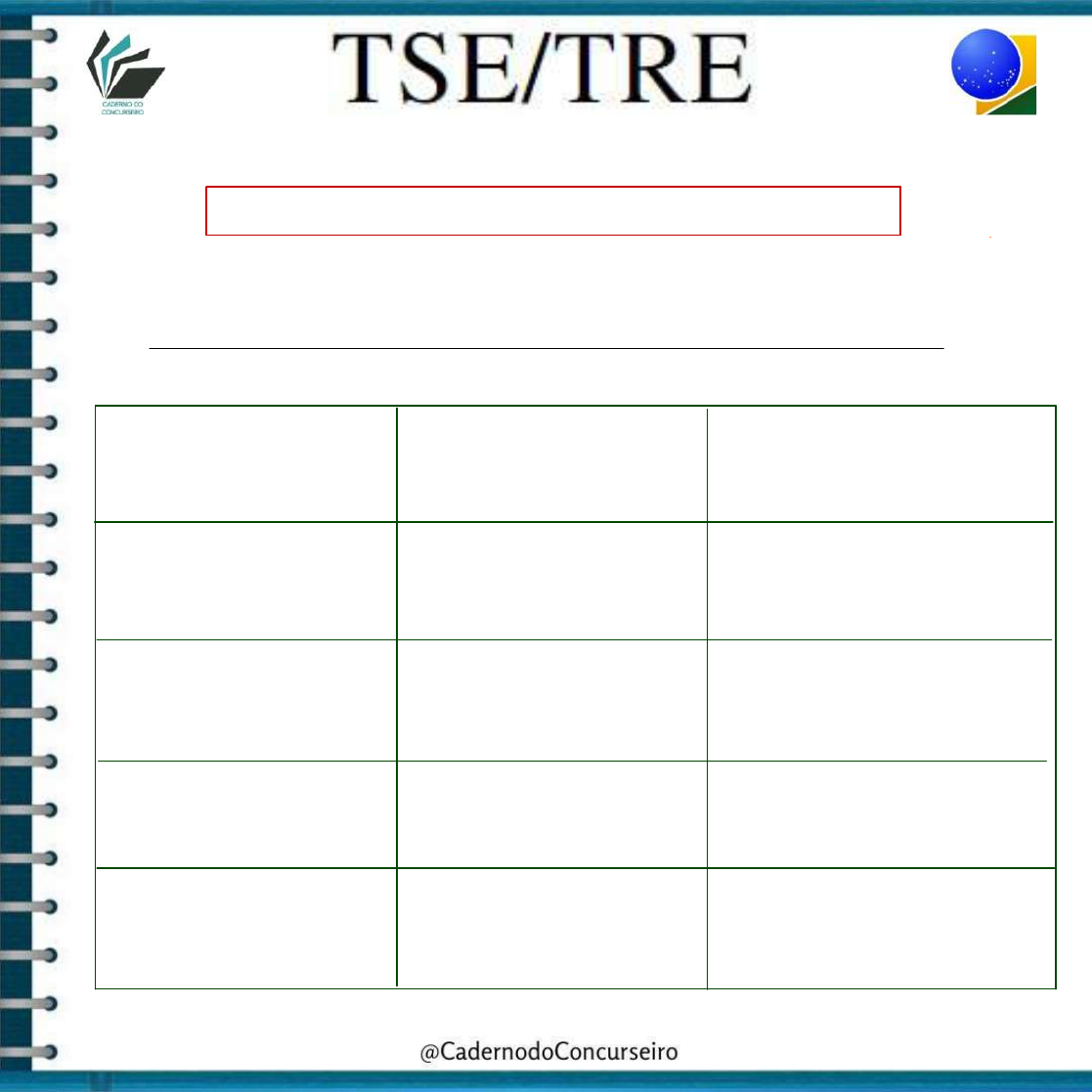 PLANEJAMENTO ESTRATÉGICO X TÁTICO X OPERACIONAL ESTRATÉGICO LONGO PRAZO TODA A ORGANIZAÇÃO RISCO ALTO DIRETORES TÁTICO MÉDIO PRAZO DEPARTAMENTO RISCO MÉDIO GERENTES OPERACIONAL CURTO PRAZO UNIDADE (DENTRO DE UM DEPARTAMENTO) RISCO BAIXO SUPERVISORES ADMINISTRAÇÃO PÚBLICA FUNÇÕES ADMINISTRATIVAS: PLANEJAMENTO VISÃO ADMINISTRAÇÃO PÚBLICA PLANEJAMENTO MISSÃO X VISÃO X VALORES X NEGÓCIO MISSÃO !É O MOTIVO PELO QUAL A ORGANIZAÇÃO FOI CRIADA. !REPRESENTA A IDENTIDADE DA ORGANIZAÇÃO. !É ATEMPORAL (PERMANENTE). !INDICA QUAIS BENEFÍCIOS A ORGANIZAÇÃO TRARÁ PARA A SOCIEDADE ASSIM COMO O PAPEL DA ORGANIZAÇÃO NA SOCIEDADE E COMO A ORGANIZAÇÃO PRETENDE ATUAR EM SEU DIA A DIA. !É A “VISÃO DE FUTURO” DA ORGANIZAÇÃO !DEVE TRADUZIR O CONSENSO DOS MEMBROS DA ORGANIZAÇÃO SOBRE O FUTURO QUE SE DESEJA, SENDO BASTANTE CLARA E COERENTE COM A MISSÃO DA ORGANIZAÇÃO. VALORES !CONJUNTO DOS PRINCÍPIOS BÁSICOS E DAS CRENÇAS QUE NORTEIAM O COMPORTAMENTO DA ORGANIZAÇÃO. !CONSTITUEM A BASE PARA A TOMADA DE DECISÃO. !INDICA COMO OS MEMBROS DEVEM SE COMPORTAR NEGÓCIO !REPRESENTA O “RAMO DE ATIVIDADES” NO QUAL A EMPRESA ATUA. !ESTÁ RELACIONADO ÀS ATIVIDADES PRINCIPAIS DA ORGANIZAÇÃO EM UM MOMENTO ESPECÍFICO. !PORTER DEFENDE QUE É IMPORTANTE QUE A ESTRATÉGIA ORGANIZACIONAL LEVE EM CONSIDERAÇÃO E ENTENDA A ESTRUTURA DO MERCADO NA QUAL A ORGANIZAÇÃO ESTÁ INSERIDA, BEM COMO AS INTERAÇÕES DO AMBIENTE; !O AUTOR IDENTIFICOU 05 FORÇAS COMPETITIVAS: AMEAÇA DE NOVOS ENTRANTES, AMEAÇA DE PRODUTOS SUBSTITUTOS, PODER DE BARGANHA DOS FORNECEDORES, PODER DE BARGANHA DOS CLIENTES E RIVALIDADE ENTRE CONCORRENTES (CONCORRÊNCIA NO SETOR). ADMINISTRAÇÃO PÚBLICA PRINCIPAIS FERRAMENTAS ESTRATÉGICAS 5 FORÇAS DE PORTER RIVALIDADE ENTRE CONCORRENTES PODER DE BARGANHA DOS CLIENTES PODER DE BARGANHA DOS FORNECEDORES AMEAÇA DE PRODUTOS SUBSTITUTOS AMEAÇA DE NOVOS ENTRANTES . ADMINISTRAÇÃO PÚBLICA ESCRITA COMPORTAMENTO ORGANIZACIONAL: COMUNICAÇÃO CANAIS DE COMUNICAÇÃO !UM GESTOR PRECISAR COMPREENDER QUAIS SÃO AS VANTAGENS/ DESVANTAGENS DE CADA CANAL ANTES DE ESCOLHER O MAIS ADEQUADO; VANTAGENS DO CANAL POBRE PESSOAL; CANAL DE MÃO-DUPLA (RESPOSTA MAIS RÁPIDA DO RECEPTOR); FEEDBACK INSTANTÂNEO. ATINGE UM GRANDE NÚMERO DE PESSOAS; COMUNICAÇÃO RESTRITA E PODE SER REENVIADA DA MESMA FORMA; PLANEJAMENTO ANTECIPADO E EM DETALHES; FÁCIL REPLICAÇÃO E DISTRIBUIÇÃO; VANTAGENS DO CANAL RICO COMUNICAÇÃO INTERNA X EXTERNA INTERNA VISA ALCANÇAR OS MEMBROS DA ORGANIZAÇÃO; EXTERNO PÚBLICO-ALVO SÃO OS DIVERSOS PÚBLICOS EXTERNOS COMUNICAÇÃO ORAL (OU VERBAL) E ESCRITA ENVOLVE AÇÕES E CONDUTAS AO INVÉS DE PALAVRAS. ENVOLVE FALA/ORATÓRIA. IMPORTANTE PARA INFLUENCIAR OS DEMAIS, CONVENCER OS CLIENTES, COMUNICAR O QUE DESEJAM, ETC. MUITO UTILIZADA PARA A CONFECÇÃO DE DOCUMENTOS, MANUAIS, TEXTOS TÉCNICOS, ETC. DEVE SER CLARA E UTILIZAR LINGUAGEM ADEQUADA PARA QUE SEJA EFICAZ NÃO-VERBAL VERBAL OU ORAL DIREITO ELEITORAL INTRODUÇÃO AO DIREITO ELEITORAL ! FONTES PRIMÁRIAS: AS FONTES PRIMÁRIAS SÃO AQUELAS ORIUNDAS DO PODER CONSTITUINTE OU DO EXERCÍCIO DO PODER LEGISLATIVO DE SUA FUNÇÃO TÍPICA (LEGISLAR). TEM FUNDAMENTO NA CONSTITUIÇÃO FEDERAL, LOGO PODEM SOFRER CONTROLE DE CONSTITUCIONALIDADE. EXEMPLO: A CF/88 É UMA FONTE PRIMÁRIA DO DIREITO ELEITORAL, FRUTO DO PODER CONSTITUINTE ORIGINÁRIO. FONTES DO DIREITO ELEITORAL FONTES FORMAIS FONTES MATERIAIS ! SÃO AS NORMAS JURÍDICAS. ELAS SÃO VINCULANTES E, CASO VIOLADAS, ENSEJAM REPERCUSSÕES JURÍDICAS. EXEMPLOS: CONSTITUIÇÃO FEDERAL, CÓDIGO ELEITORAL (LEI 4.767/65), LEI DAS ELEIÇÕES (LEI 9.504/97) ! SÃO OS FATORES SOCIAIS, POLÍTICOS OU ECONÔMICOS QUE LEVAM À FORMULAÇÃO DE NORMAS JURÍDICAS. NÃO SÃO VINCULANTES, POSSUINDO APENAS UM TEOR INTERPRETATIVO. EXEMPLOS: MOVIMENTOS POLÍTICOS QUE ENSEJAM A CRIAÇÃO DA LEI; DOUTRINA JURÍDICA QUE INSPIRA O LEGISLADOR. FONTES DIRETAS FONTES INDIRETAS ! AS FONTES DIRETAS SÃO AQUELAS QUE REGULAM MATÉRIA DIRETAMENTE RELACIONADA AO DIREITO ELEITORAL. EXEMPLOS: CÓDIGO ELEITORAL (LEI 4.767/65), LEI DAS ELEIÇÕES (LEI 9.504/97) ! AS FONTES INDIRETAS SÃO AQUELAS QUE NÃO ABORDAM DIRETAMENTE SOBRE DIREITO ELEITORAL, MAS SE APLICAM DE FORMA SUBSIDIÁRIA AO DIREITO ELEITORAL. EXEMPLOS: CÓDIGO CIVIL E CÓDIGO DE PROCESSO CIVIL. FONTES PRIMÁRIAS FONTES SECUNDÁRIAS ! FONTES SECUNDÁRIAS: AS FONTES SECUNDÁRIAS REGULAM NORMAS INFRACONSTITUCIONAIS. TEM FUNDAMENTO NAS LEIS, LOGO SOFREM SOMENTE CONTROLE DE LEGALIDADE – NÃO CABENDO CONTROLE DE CONSTITUCIONALIDADE. NÃO PODEM INOVAR A ORDEM JURÍDICA. EXEMPLO: RESOLUÇÕES EDITADAS PELO TRIBUNAL SUPERIOR ELEITORAL (REGRA) DIREITO ELEITORAL ORGANIZAÇÃO E FUNCIONAMENTO DA JUSTIÇA ELEITORAL DIREITO ELEITORAL ORGANIZAÇÃO E FUNCIONAMENTO DA JUSTIÇA ELEITORAL DIREITO ELEITORAL ORGANIZAÇÃO E FUNCIONAMENTO DA JUSTIÇA ELEITORAL DIREITO ELEITORAL ORGANIZAÇÃO E FUNCIONAMENTO DA JUSTIÇA ELEITORAL DIREITO ELEITORAL DIREITO ELEITORAL DIREITO ELEITORAL LÍNGUA PORTUGUESA DICA - REESCRITA DE FRASES EXPRESSÕES PROBLEMÁTICAS NA MEDIDA EM QUE À MEDIDA QUE X PODE TAMBÉM SER USADA COMO CONDIÇÃO OU PROPORÇÃO EXPRESSA IDEIA DE PROPORÇÃO PODE SUBSTITUIR POR “À PROPORÇÃO QUE” EX: À MEDIDA QUE O TEMPO PASSA, ELE FICA MAIS FORTE EXPRESSA IDEIA DE CAUSA OBS: AS BANCAS,EM GERAL, COBRAM MAIS A EXPRESSÃO COM IDEIA DE CAUSA PODE SER SUBSTITUÍDA POR: “UMA VEZ QUE” “VISTO QUE”,”JÁ QUE”,DENTRE OUTROS EX: NA MEDIDA EM QUE VOCÊ ESTUDOU, PASSOU NO CONCURSO LÍNGUA PORTUGUESA ACENTUAÇÃO USO DOS PORQUÊS POR QUE !EQUIVALE A “POR QUAL RAZÃO”, “POR QUAL MOTIVO”, “PELA QUAL”,”PELOS QUAIS” EX - POR QUE VOCÊ QUER SER APROVADO NO CONCURSO DA PF? EX - ESTAS SÃO AS RAZÕES POR QUE ESTUDO BASTANTE POR QUÊ !É UTILIZADO NO FINAIS DE FRASES, ANTES DE PONTO FINAL,DE INTERROGAÇÃO, DE EXCLAMAÇÃO OU DE RETICÊNCIAS EX - ESTUDO BASTANTE PARA SER APROVADO. SABE POR QUÊ? EX - O CONTRATO NÃO